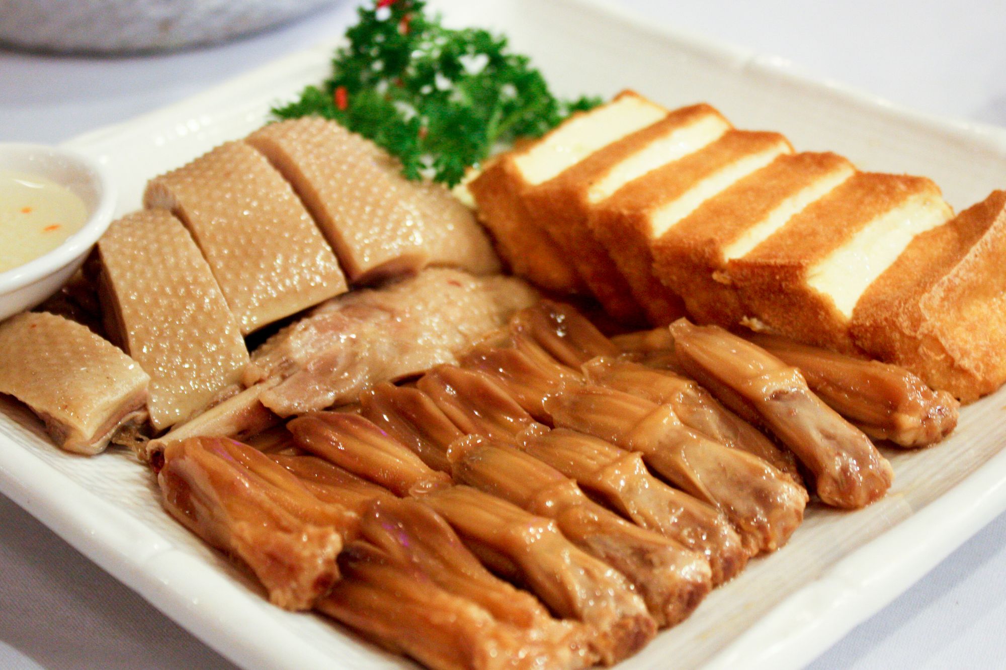 Cuisine - Cantonese Jade Cathay, San Jose, California Jade Cathay, San Jose, California (Dec 2011) 1339 N First St, San Jose, CA 95112Dec 2011A La Carte Dinner MenuStir-fried Pea Shoots with Garlic, House Special Spiced Soy Sauce CombinationRoasted Squab, Preserved Meat and Frog with Thai Basil Sauce in Clay Pot, Red Date and Goji Jello Cake Share