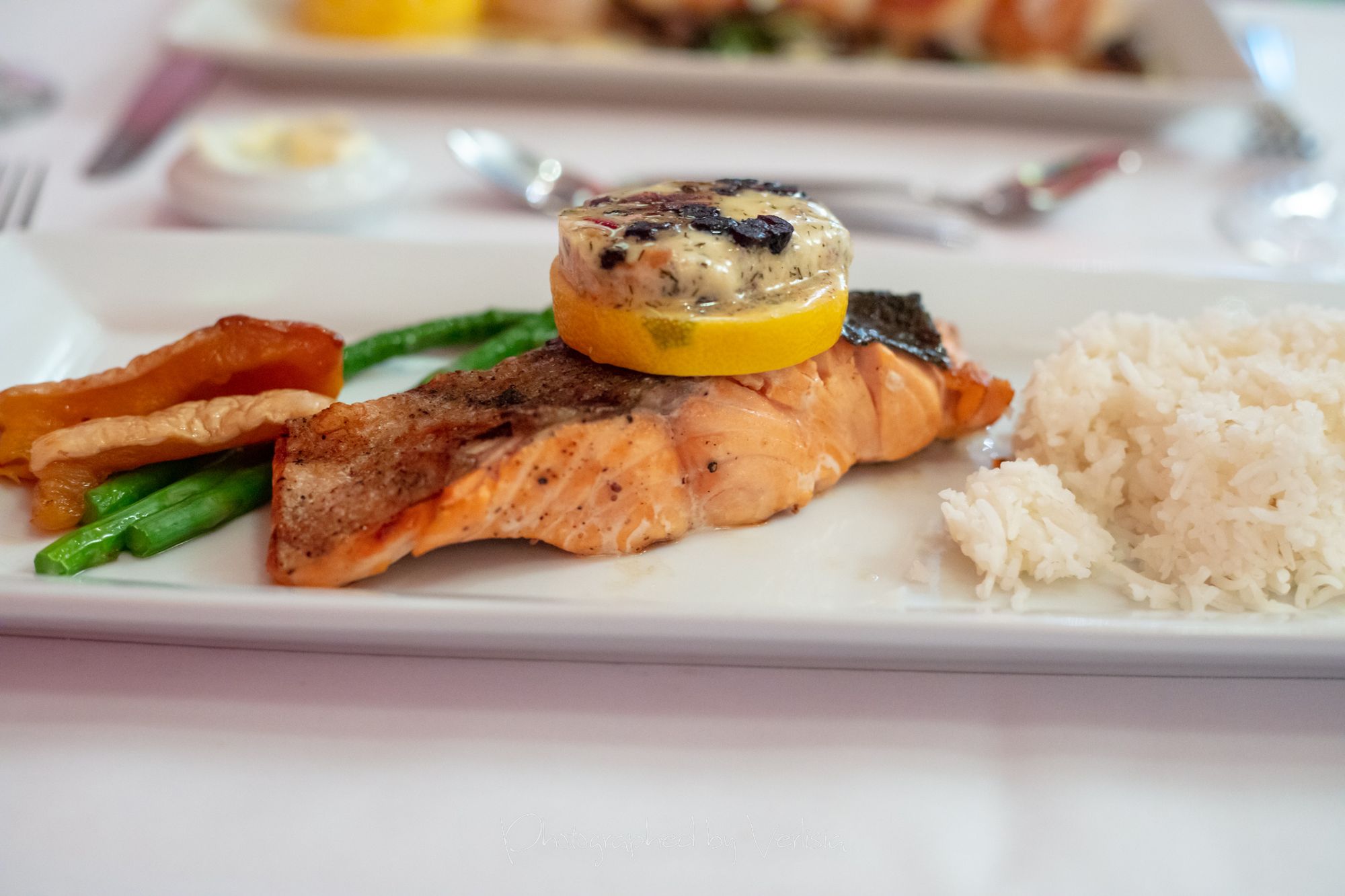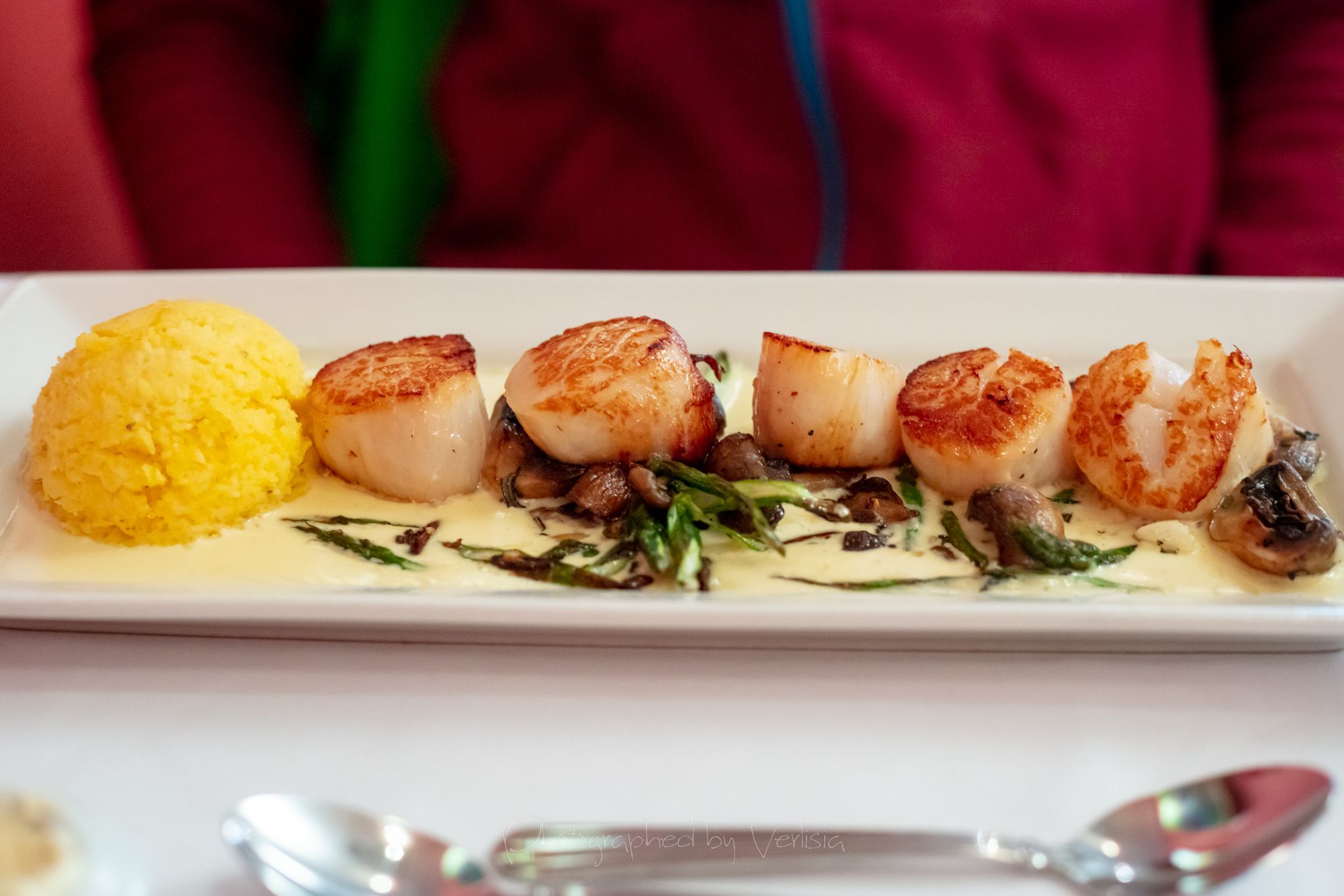 South East Alaskan King Salmon (Simply grilled and served with cold spiced berry butter), Pan Seared Kodiak Scallops (Chevre and black pepper mousse, pickled cherries, and Alaskan purple potatoes)Danish Red Berry Pudding