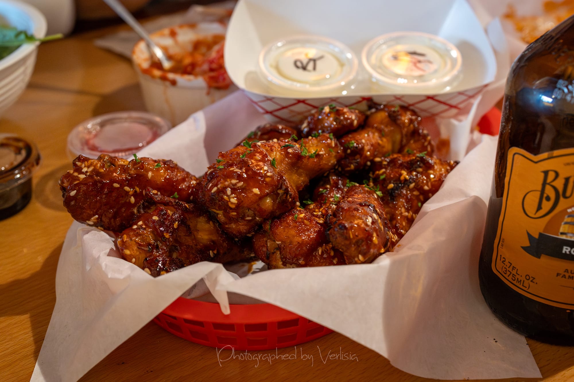 Buffalo Chicken Pizza (Slice), Wings (Ginger BBQ)