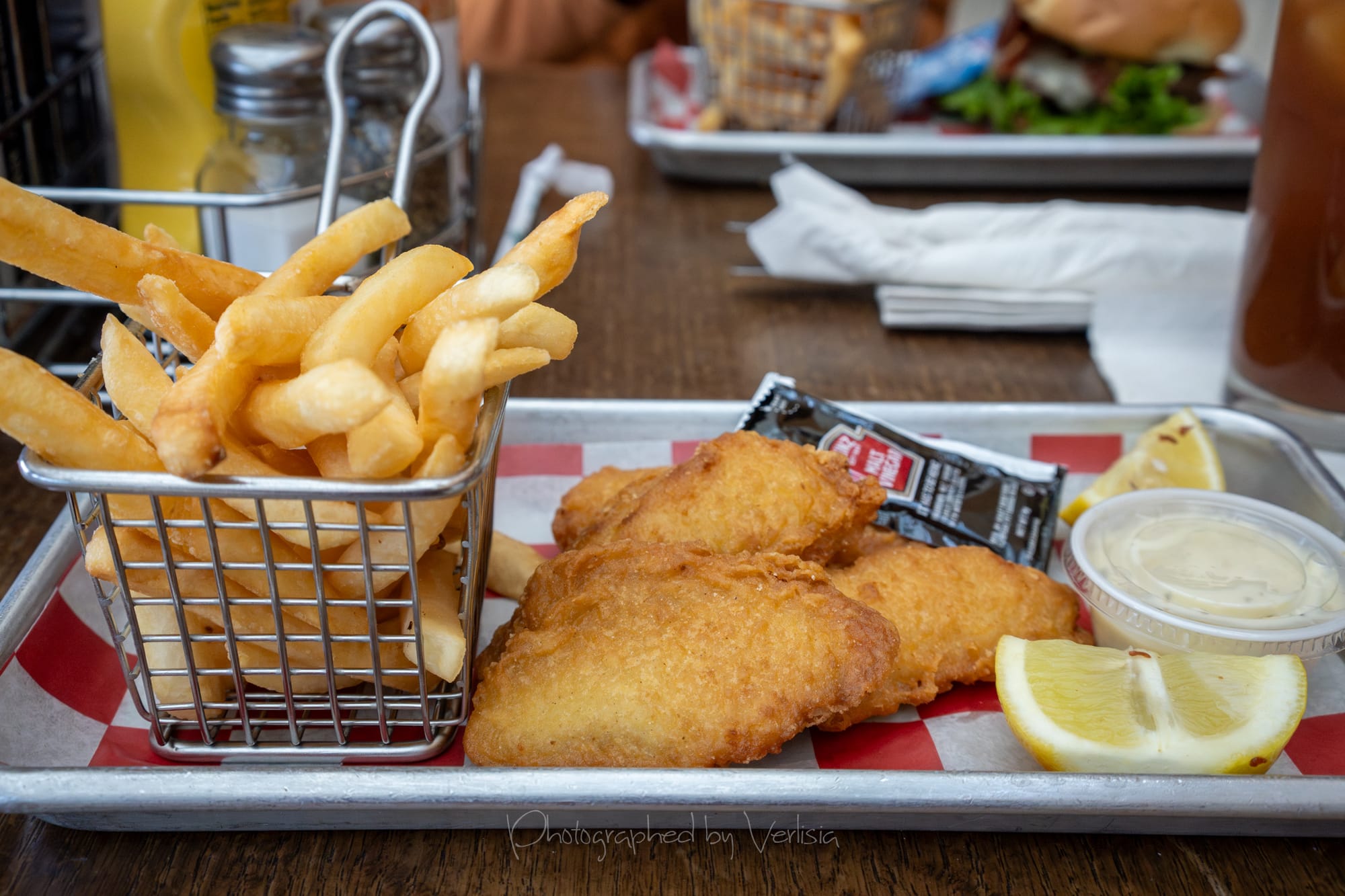 Bloody Mary, Fish and Chips - beer-battered cod served with fries and tarter sauce