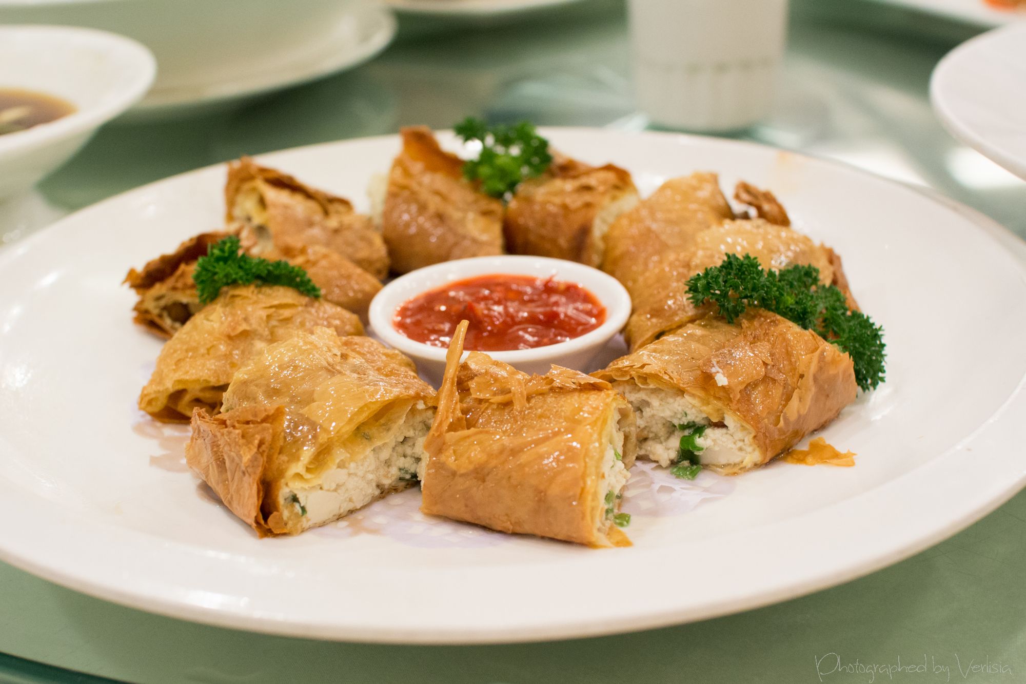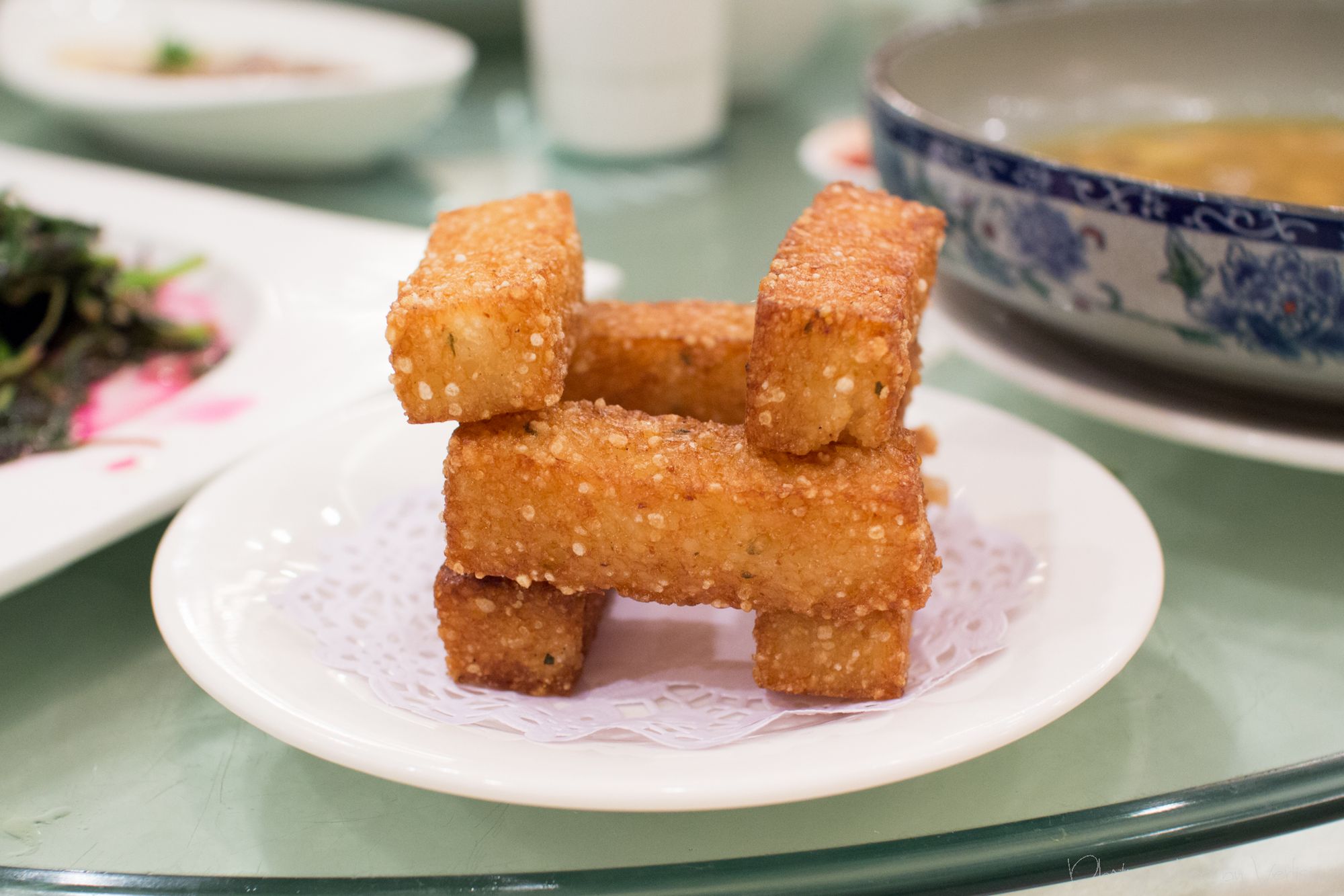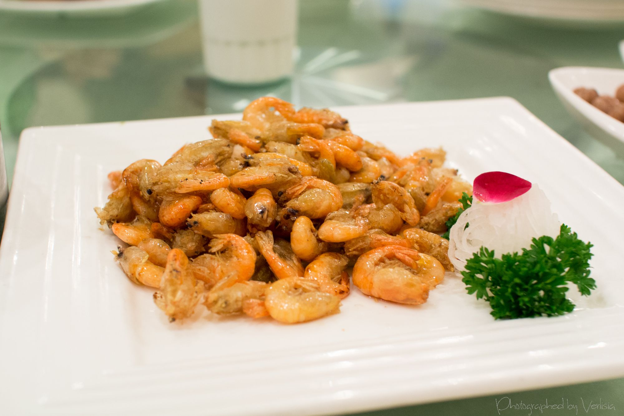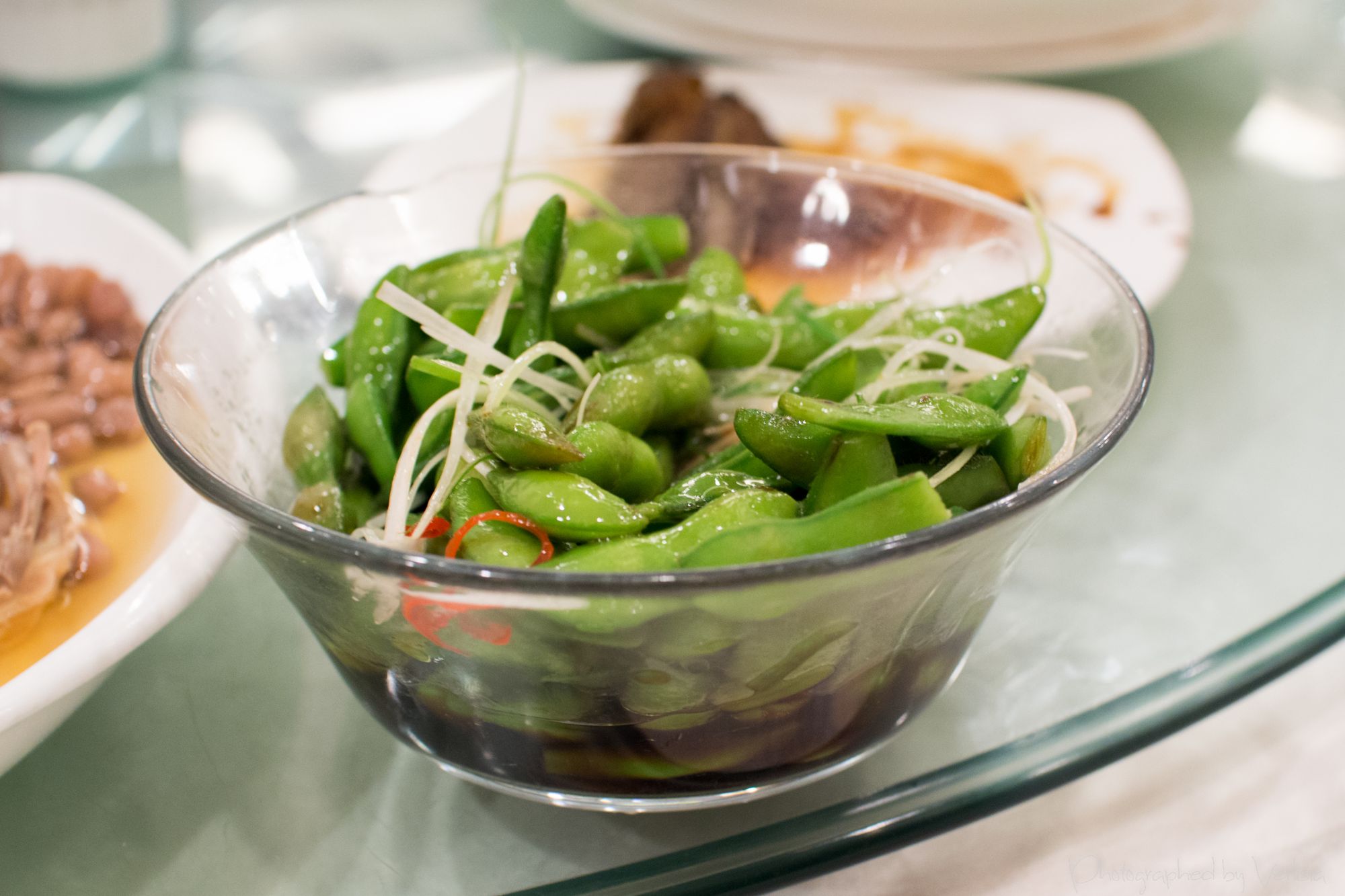 Deep Fried Shrimps 油爆虾, Honeyed Lotus Root Stuffed With Sticky Rice 桂花莲藕, Mao Dou (edamame)