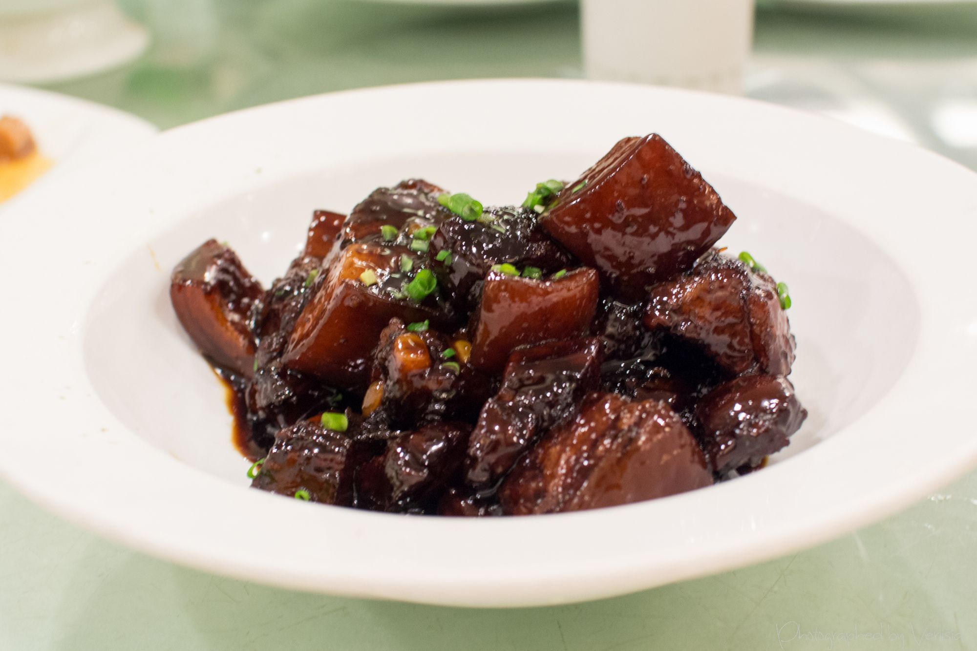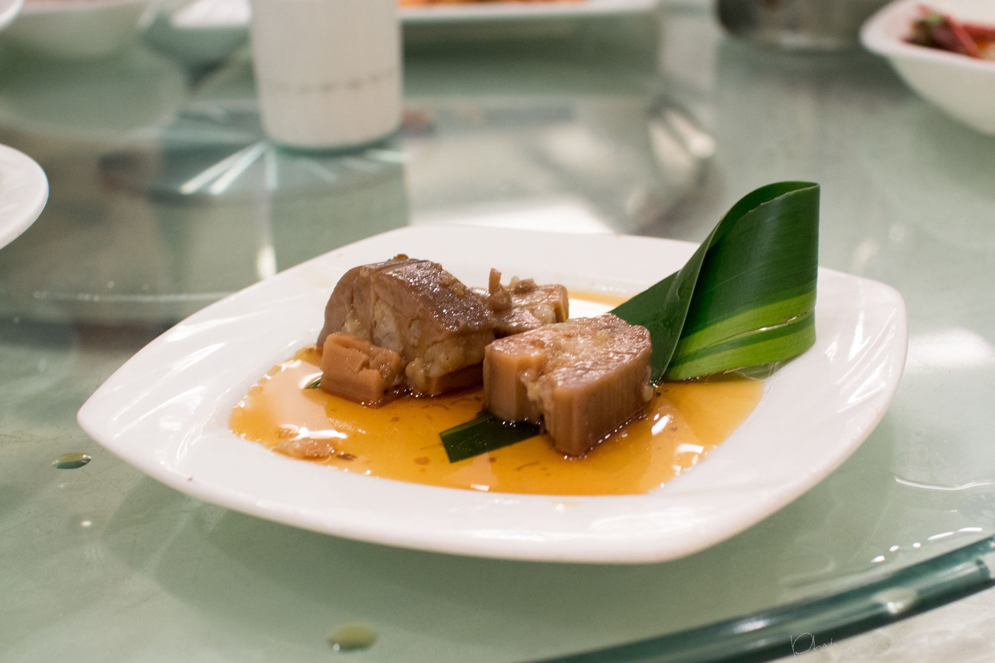 Braised pork in brown sauce 红烧肉, Deep fried stinky tofu wrapped in tofu skin 虎皮臭豆腐, Slow Cooked Pork Knuckle in Wine Sauce 花雕炖猪蹄