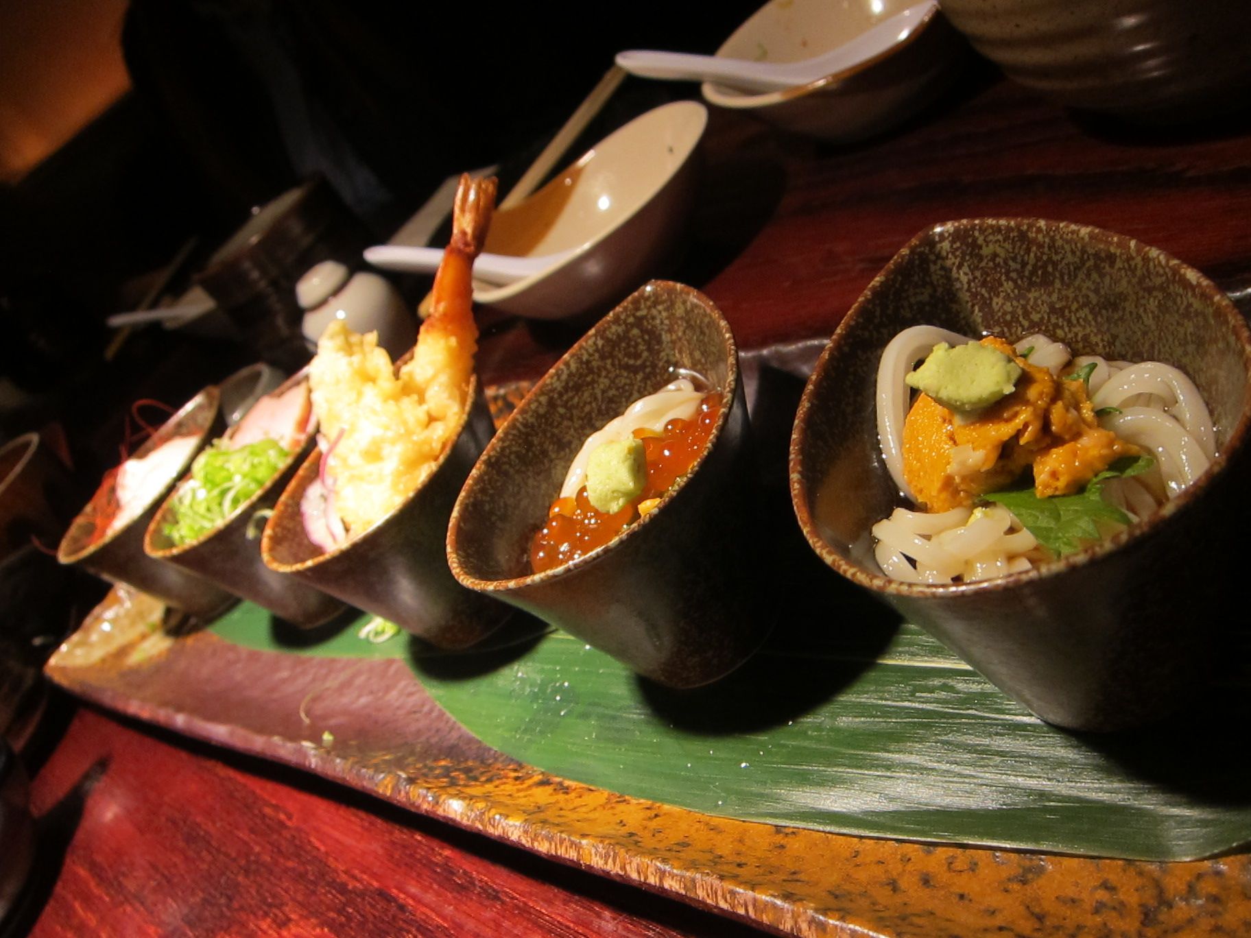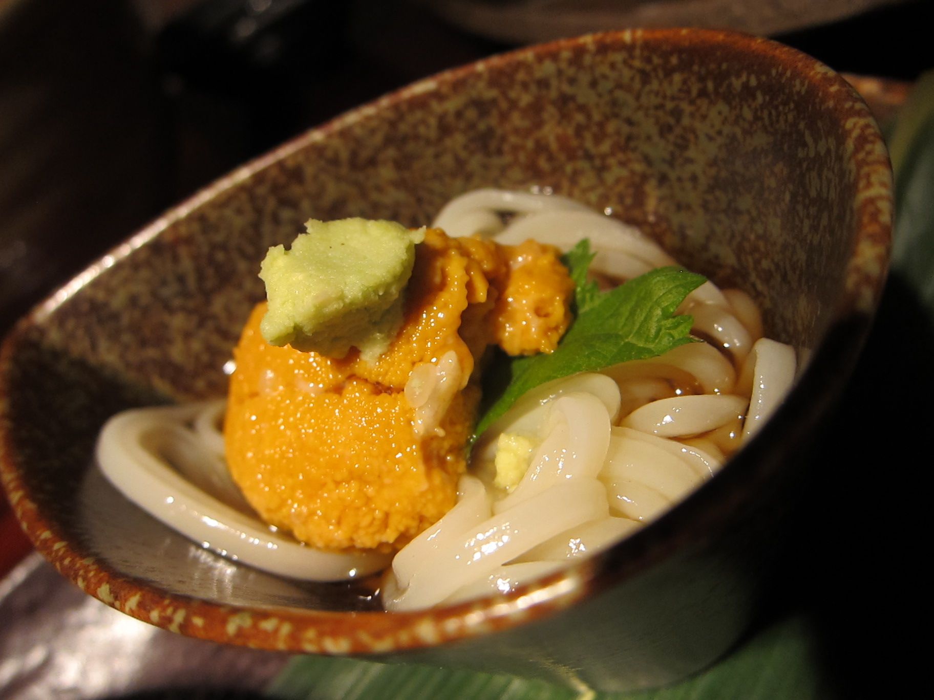 Inaniwa Udon, KakuniLive Soft Shell Crab Cutlet, Snow Crab Fresh Spring RollKaisen Chijimi, Salmon Ikura DonPork Belly Hot PotNabeyaki UdonStewed Ground Chicken and Egg over Rice, Inaniwa UdonInaniwa Udon - Mountain Yam Topping, Pork Topping, Tempura Topping, Ikura Topping, Uni Sashimi Topping