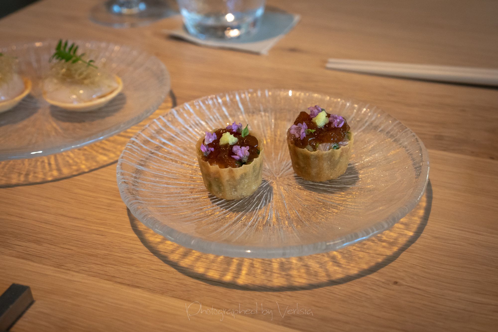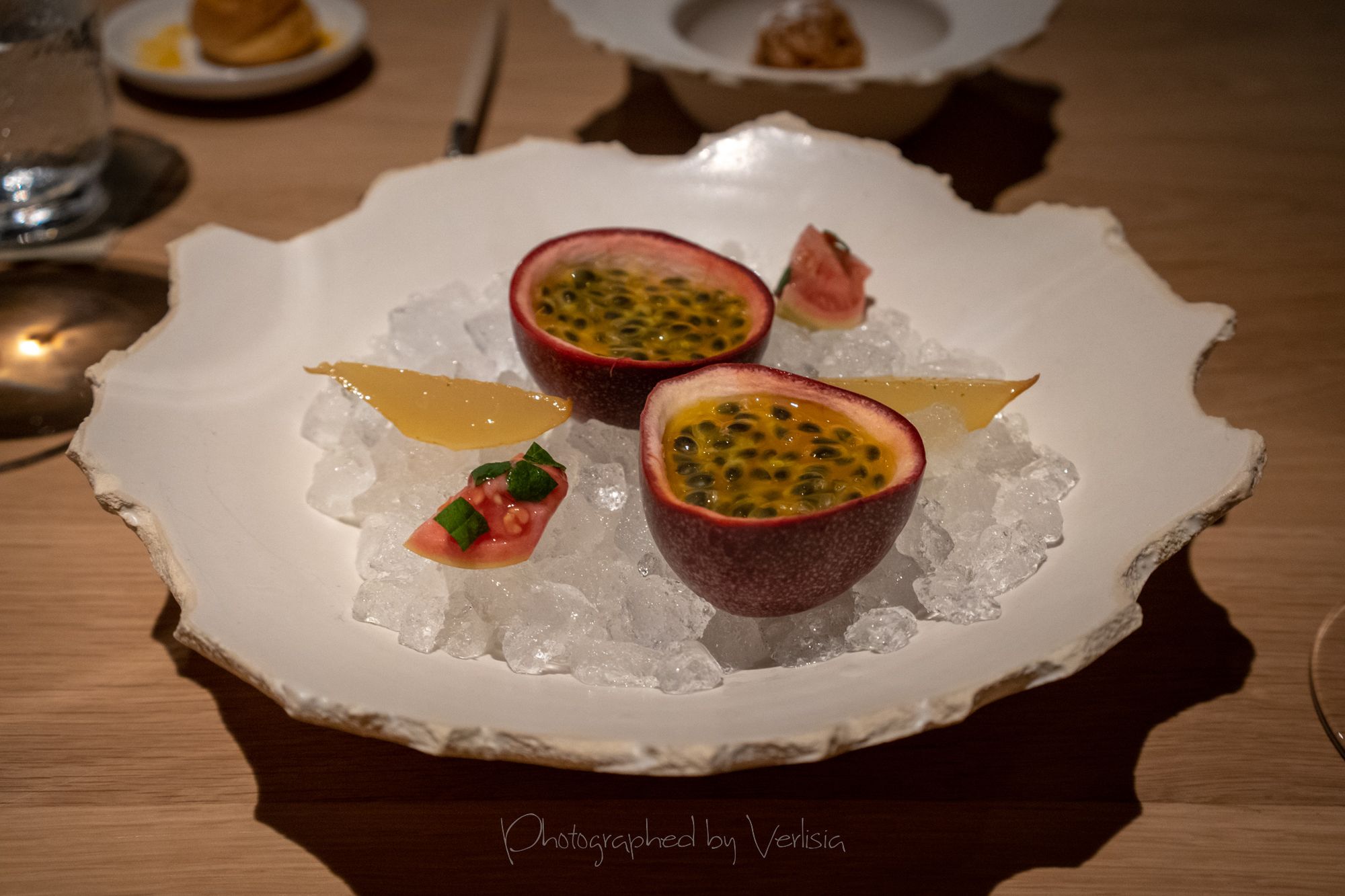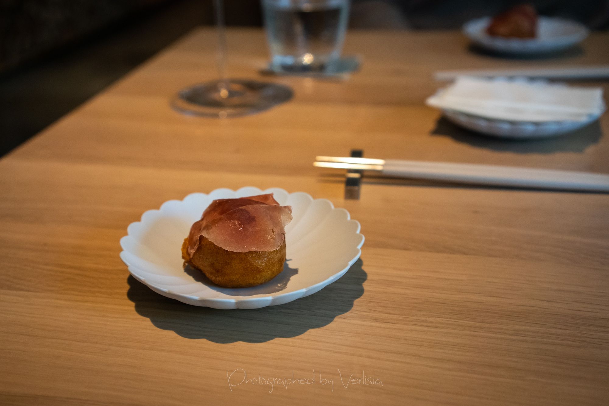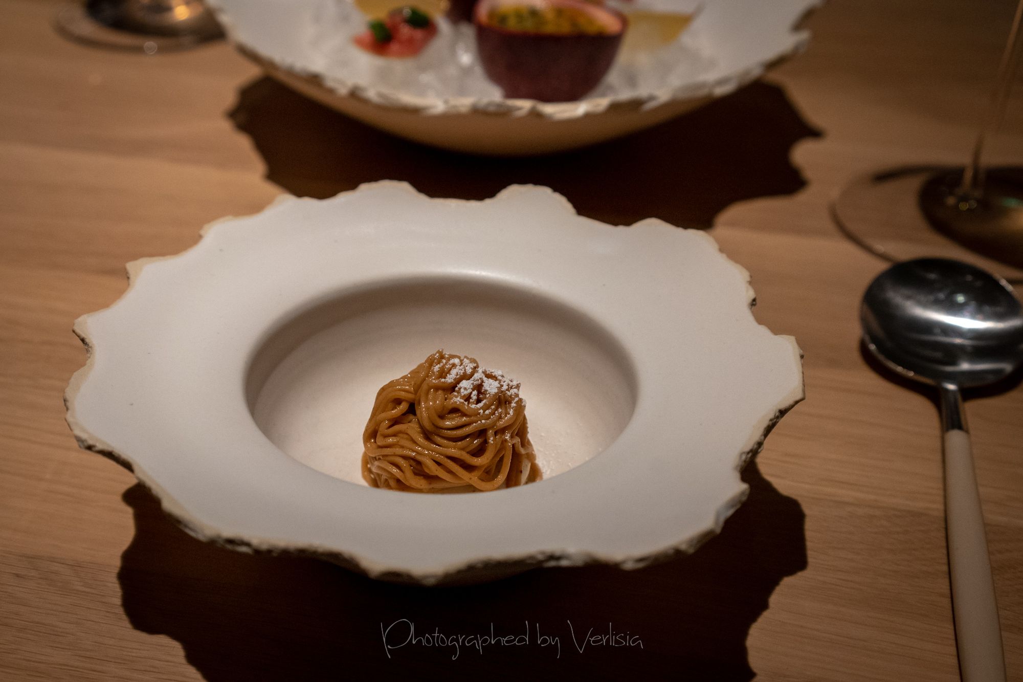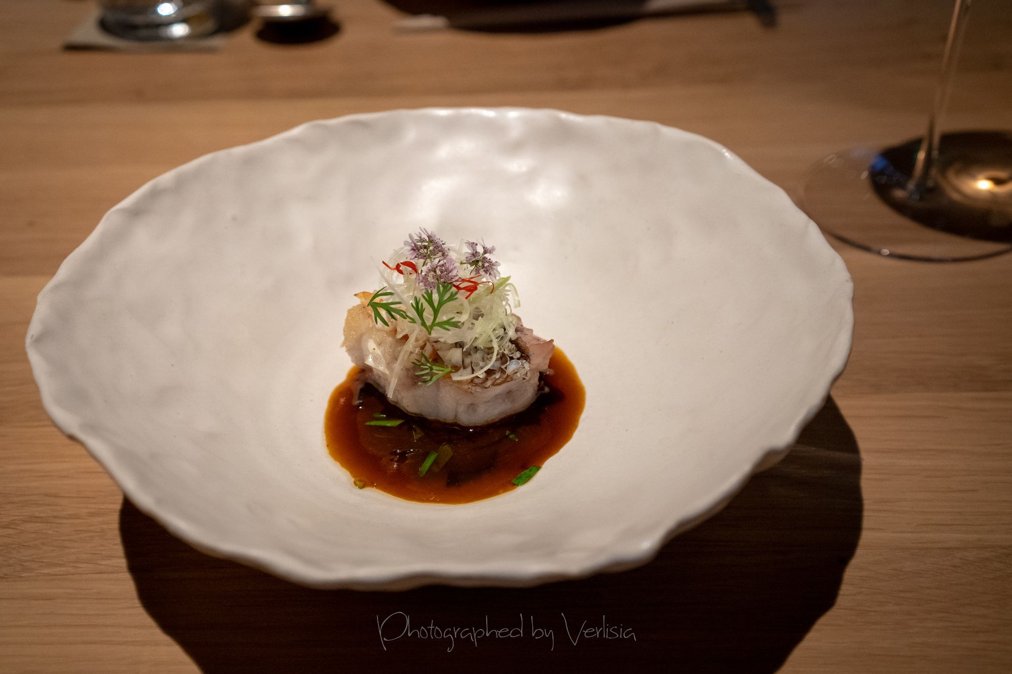 Scallop with Soy Preserves and Doubanjiang, Yellowtail with Cilantro and Black Vinegar, Abalone with Seaweed and ShaoxingSea Urchin with Iberico Ham and Brown Butter, Milk Bread, Caviar with Dungeness Crab, Spiny Lobster with Orangem and SudachiTilefish with Fish Fragrant Sauce and Szechuan Peppercorn, Duck with Menegi and Duck Sausage, Freshwater Eel with Rice, Cucumber with Sesame SaucePassionfruit with Buttermilk and Guava, Hazelnut with Caramelized White Chocolate, Slatee Egg Creme Puff