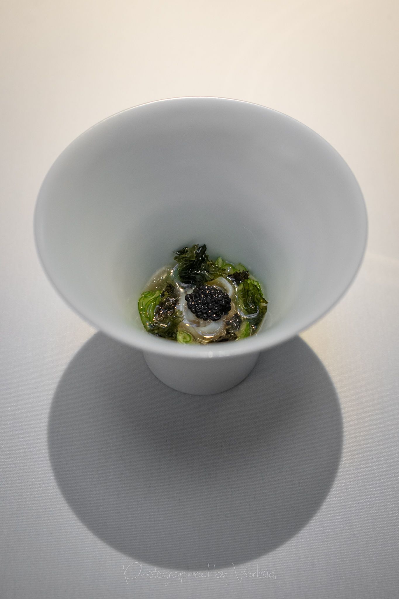 Geoduck Clam (Cucumber, Oscetra Caviar, Monterey Seaweed), Blue Lobster (Tomato Miso, Roasted Yeast, Pilsner)