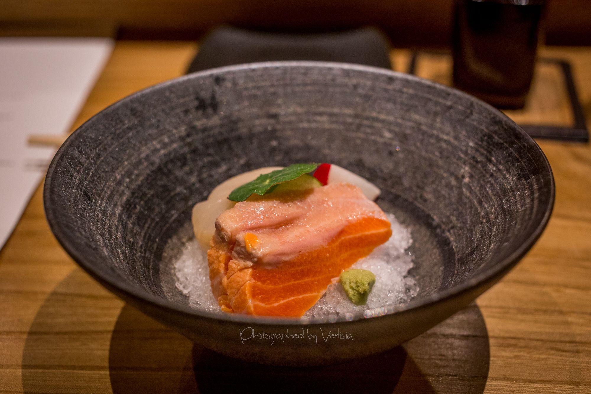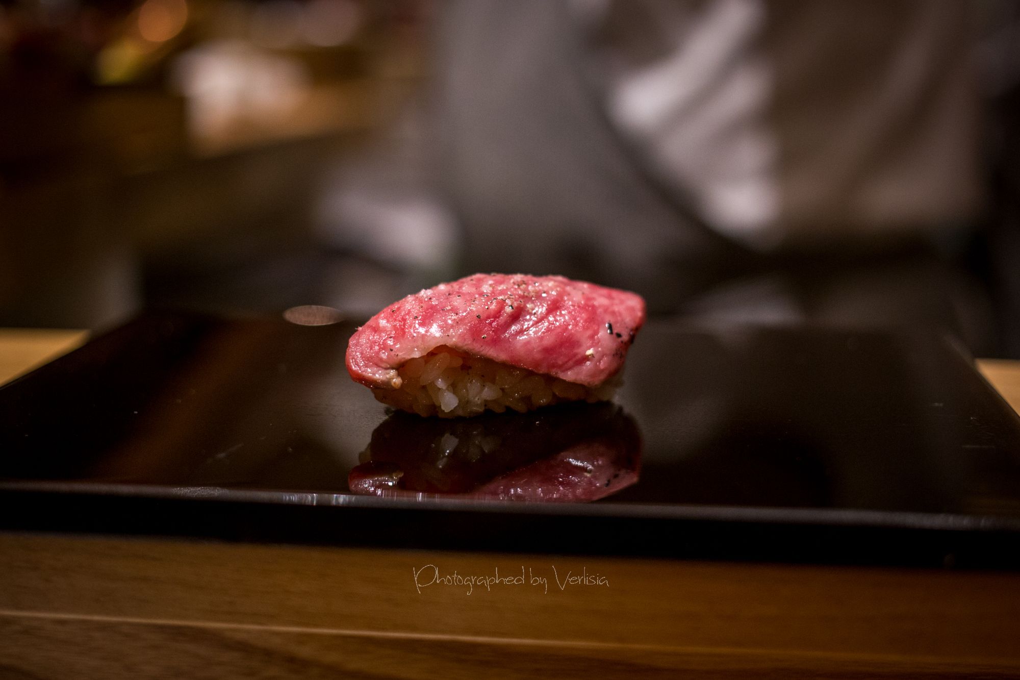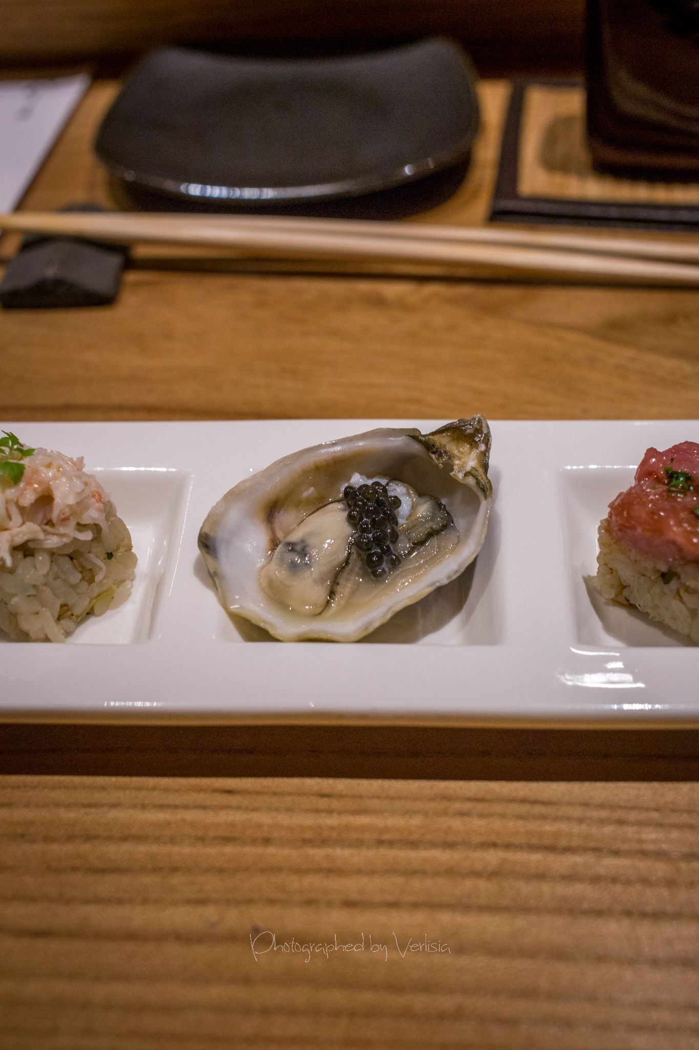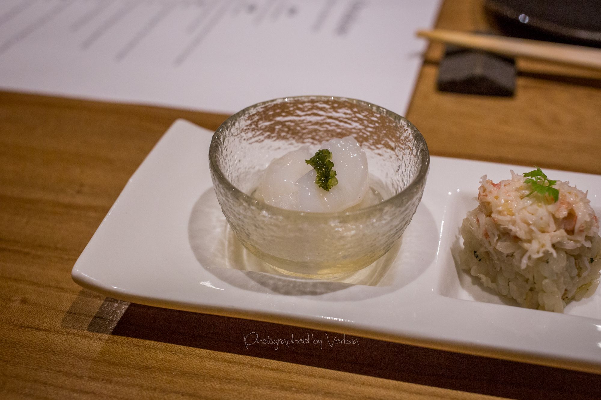 Welcoming Tea Konbu Cha (Kelp Tea), Dewazakura Dewasansan "Green Ridge" Junmai Ginjo, Sushi Predule - Zuke Chutoto, Sushi Predule - Engawa, Sushi Predule - BonitoSashimi - Ocean Trout and Hotate, Italian black truffle miso soup with Eringi and Shimeji mushrooms, Kamo-Dango (duck miso soup with Mitsuba leaf)Hassun - Shigoku oyster with French Daurenki Caviar and four kinds of Le petite platesWarm Dish ("Kinki" big hand snapper, "Mizoreni" with Matsutake mushroom), Sushi Chic - Kan Buri (Wild winter yellowtail), Kamasu - Japanese BarracudaKing Salmon - Copper river king salmon, Sushi Finale - Grade A5 Miyazaki Wagyu beefSushi Finale - Toro, Kaisui Uni - Deep ocean packed Hokkaido sea urchinYuzu and shiso-leaf sorbet, "KURI" chestnut creme-brulee, "Maccha" green tea affogato with vanilla ice cream
