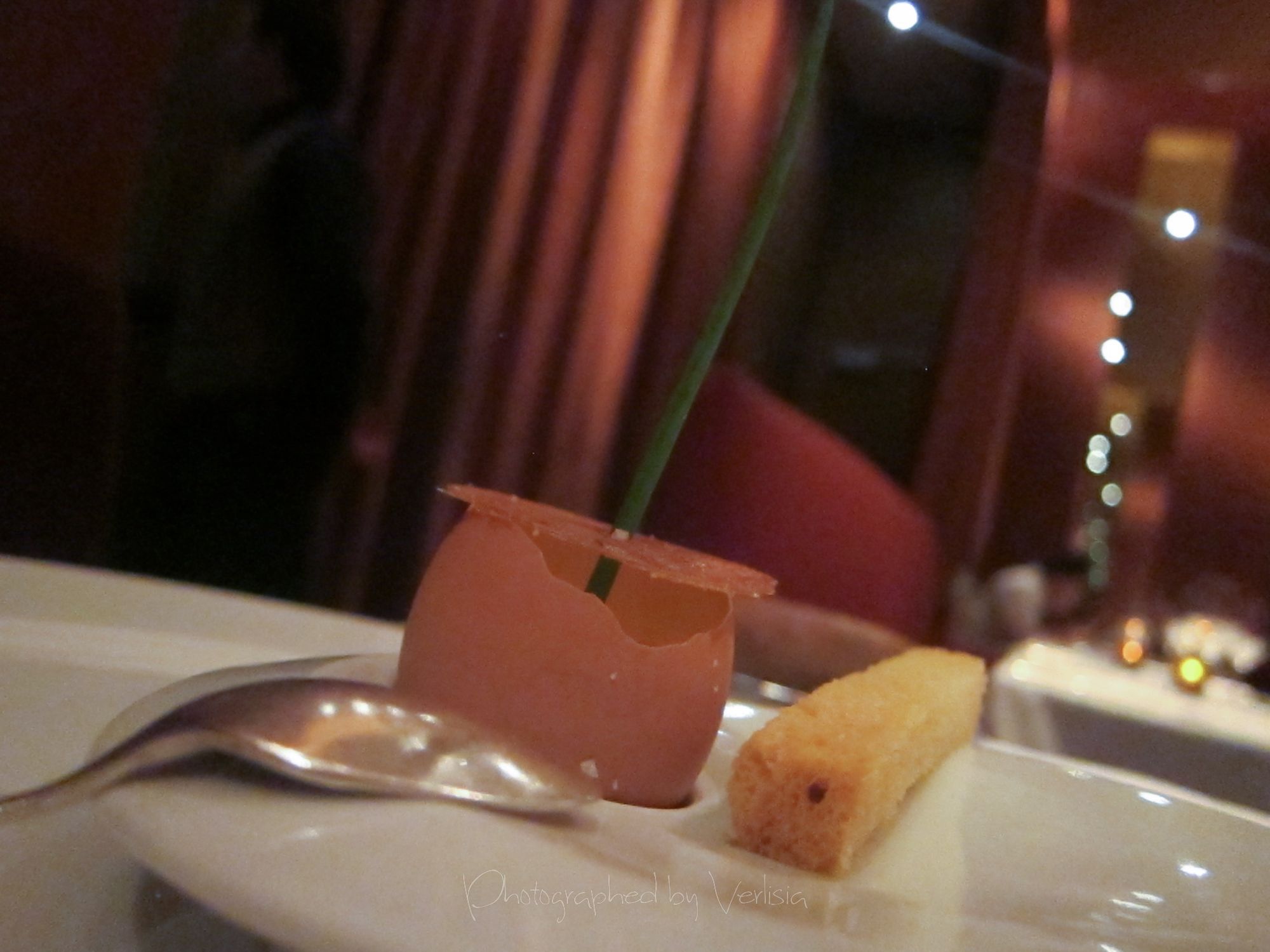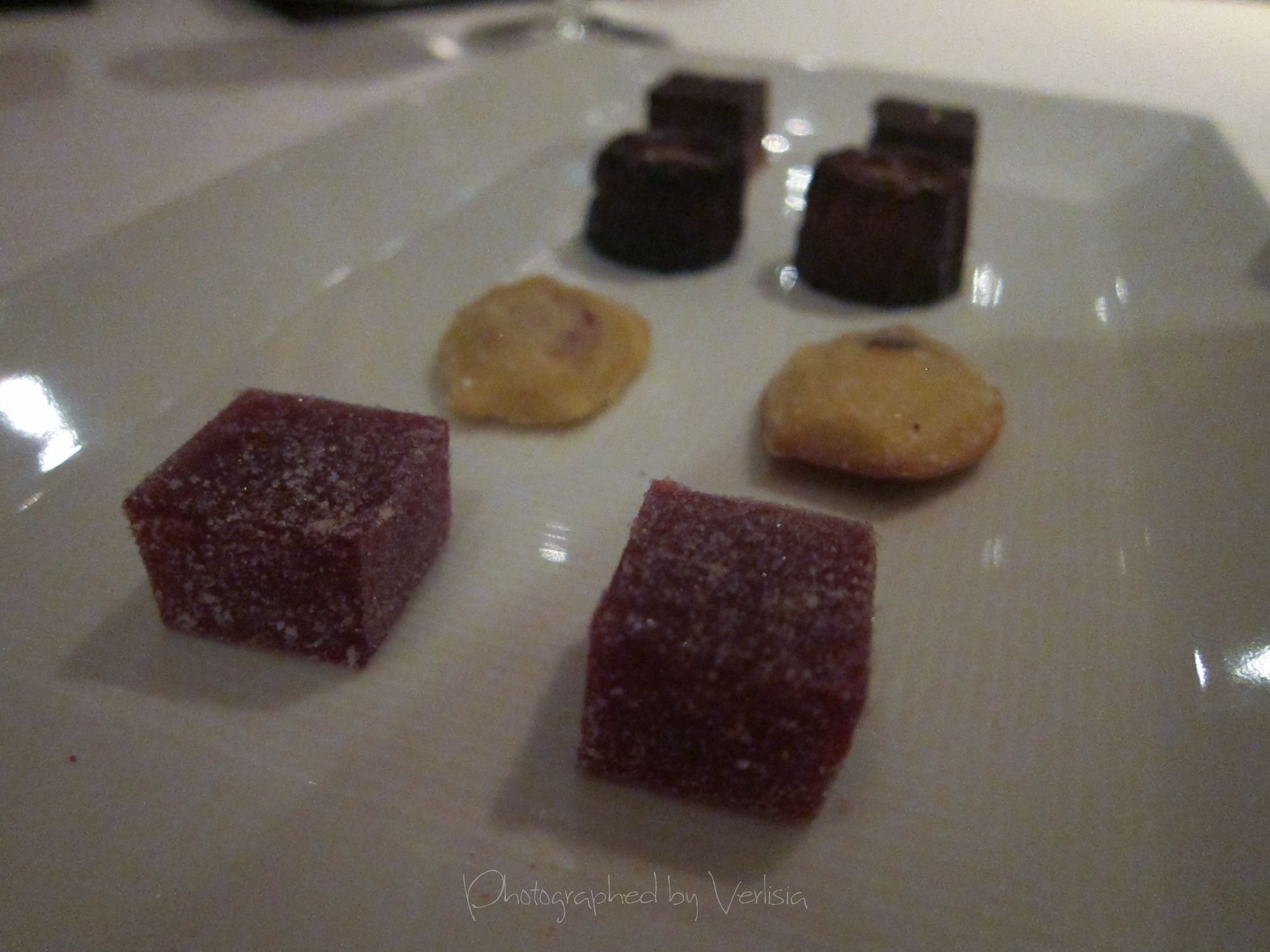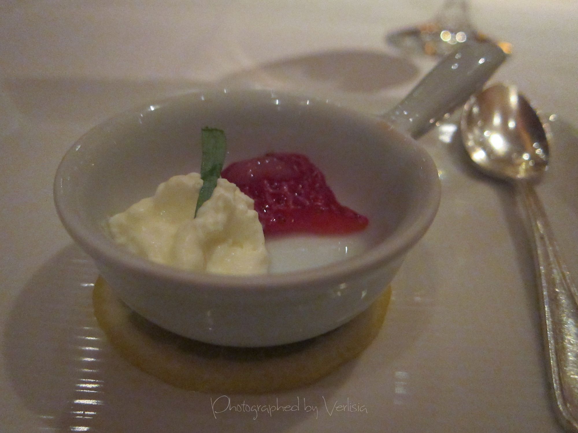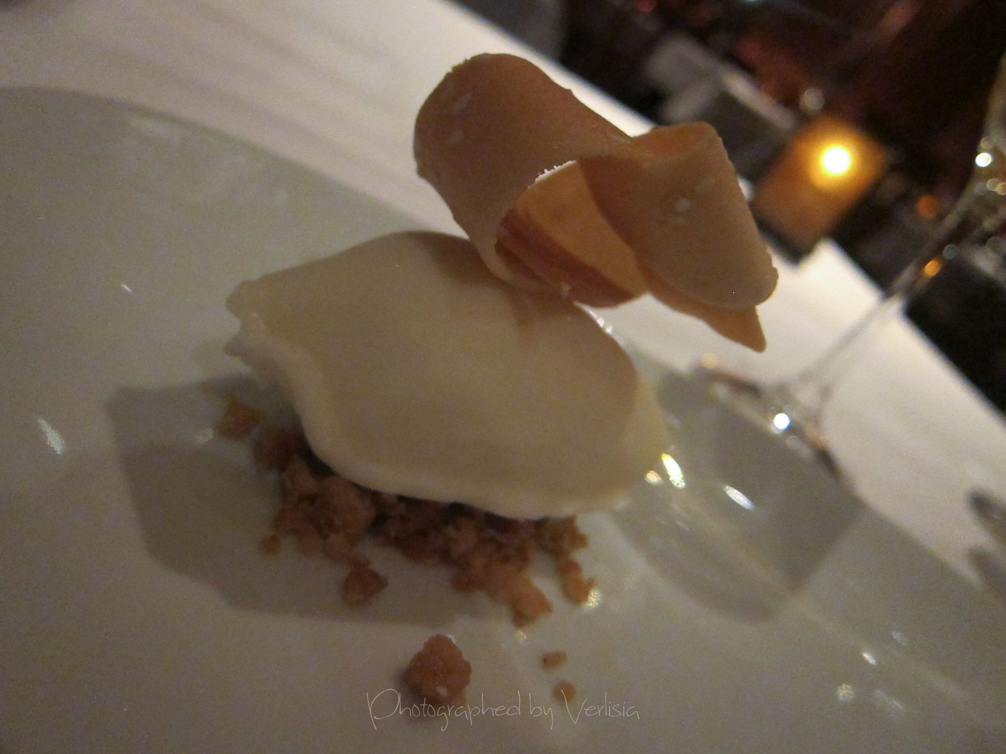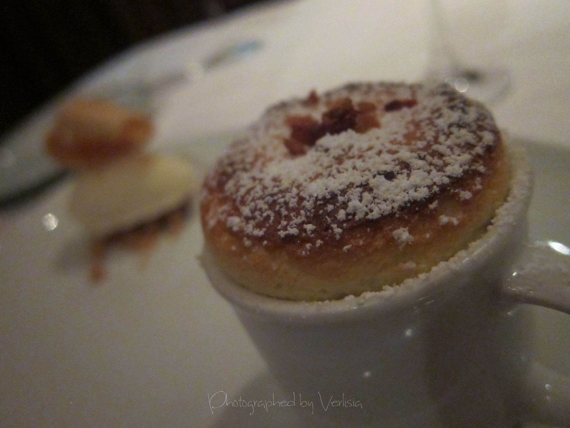 Warm Edam Cheese Souffle (Fromage Blanc Sorbet, Crispy Bacon, White Seasame Tuile), Petite Fours