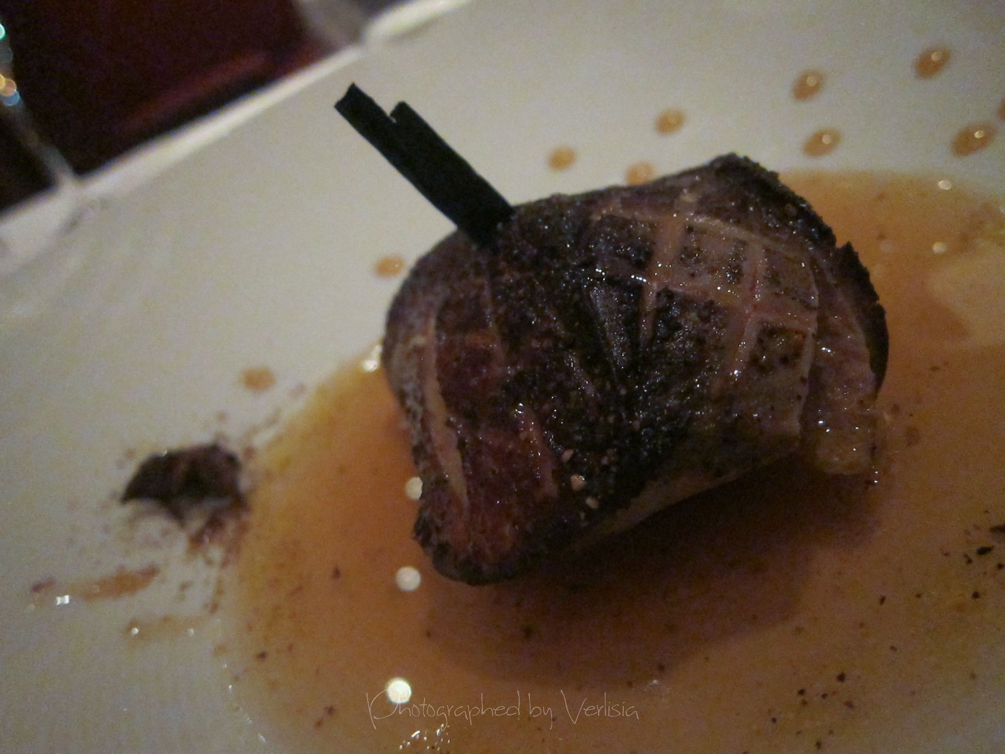 Roti of Quail and Squab, stuffed with Mushrooms, Wrapped in Crispy Potato Strings, Truffled Jus