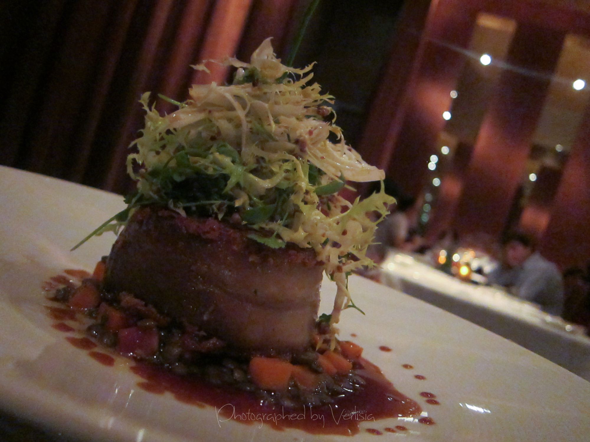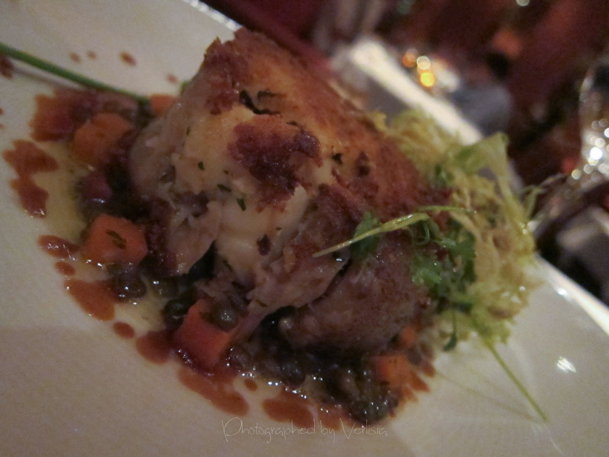 Warm Pig Feet, Sweetbread and Lobster Terrine on Lentil Salad with Bacon & Hazelnut Vinaigrette