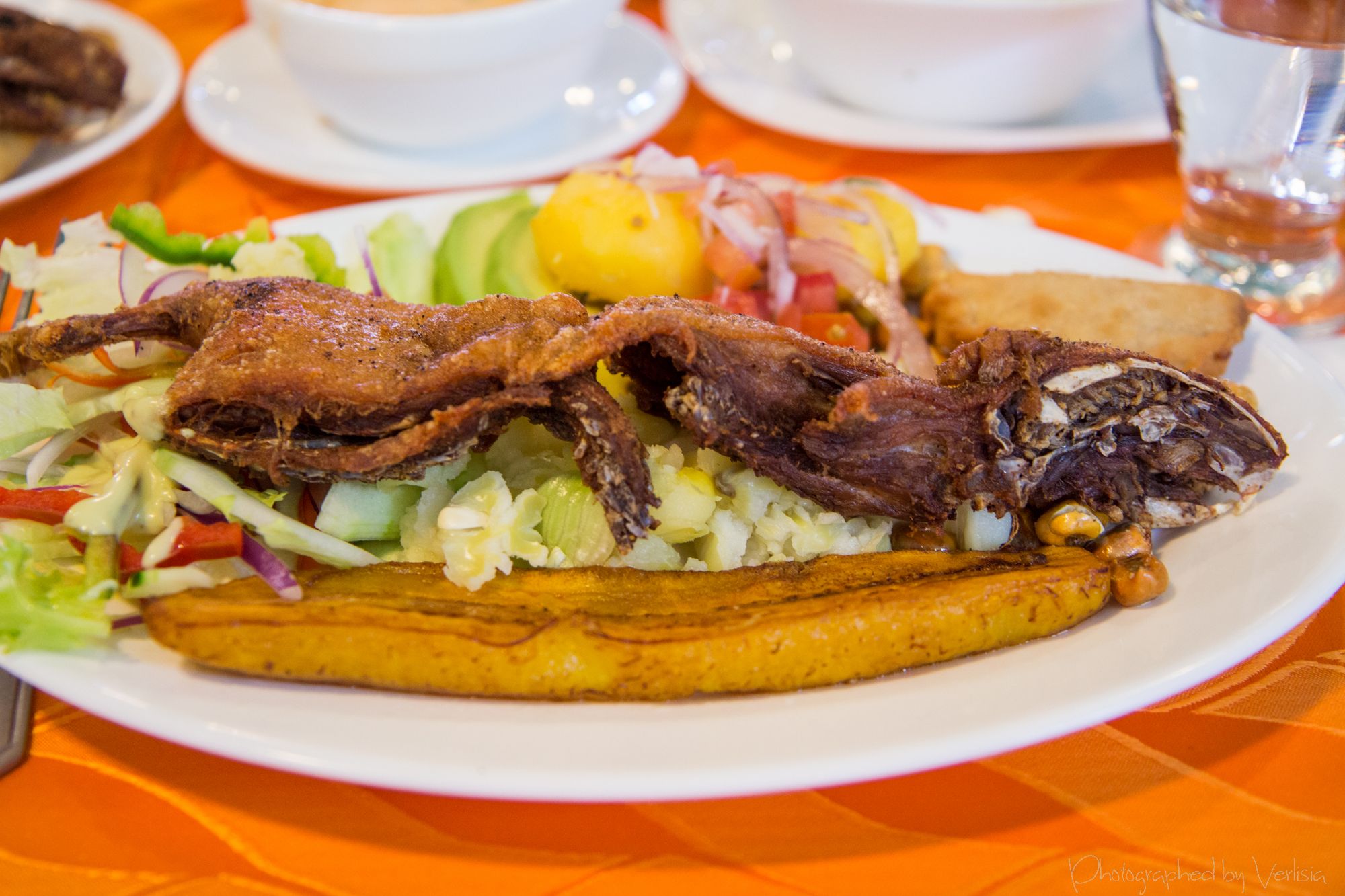 Cuisine - Ecuadorian La Marquesa, Cotacachi, Ecuador La Marquesa, Cotacachi, Ecuador (Dec 2013) Calle 10 de Agosto, Cotacachi 100350 EcuadorDec 2013A La Carte Lunch MenuPopcorn and banana chips, SoupBread, Yogurt DrinkCuy (Guinea Pig)