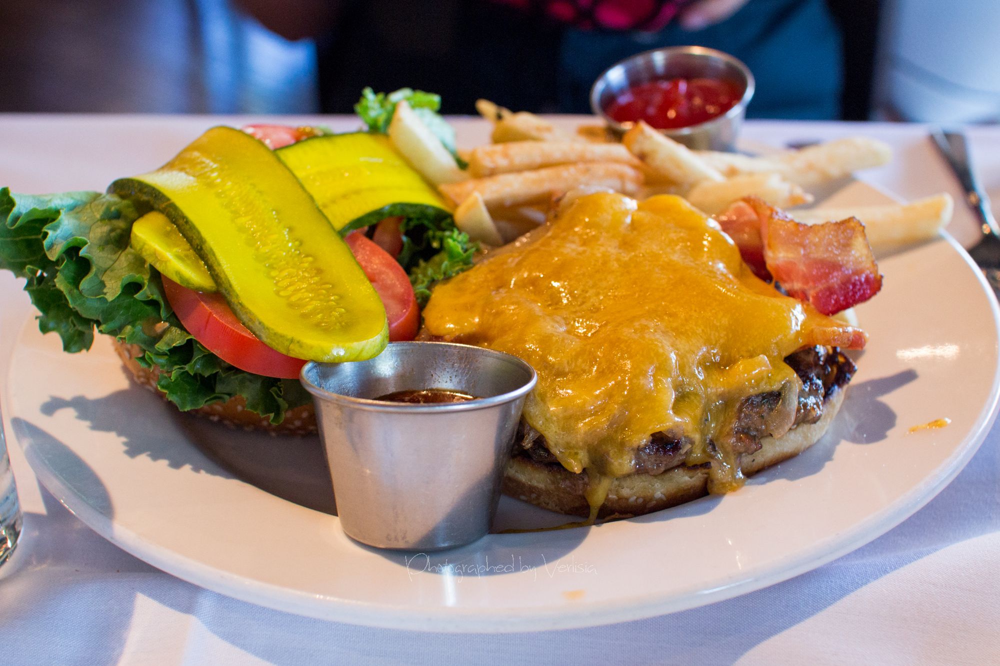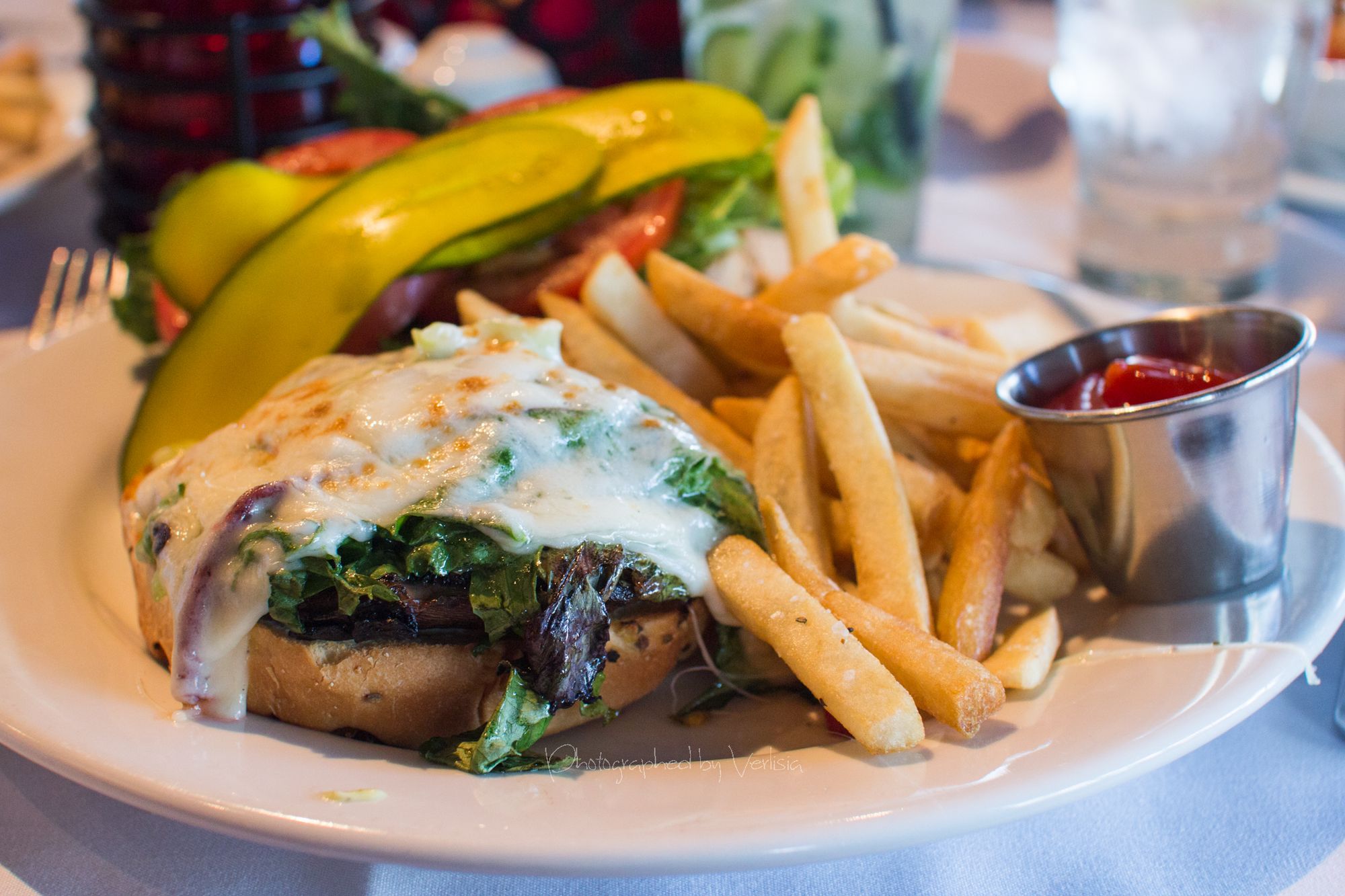 Ladera Fire Burger (Black Angus Ground Short Rib, Topped with Pickled Jalapenos, Sharp Cheddar Cheese and Crisp Bacon on a Sesame Seed Bun with French Fries)Grilled Portabello Burger (Grilled Fresh Portabello, Pesto Mayonnaise, Spring Lettuce Mix, Fire Roasted Red Pepper, Fontina Cheese, Onion Bun, French Fries)