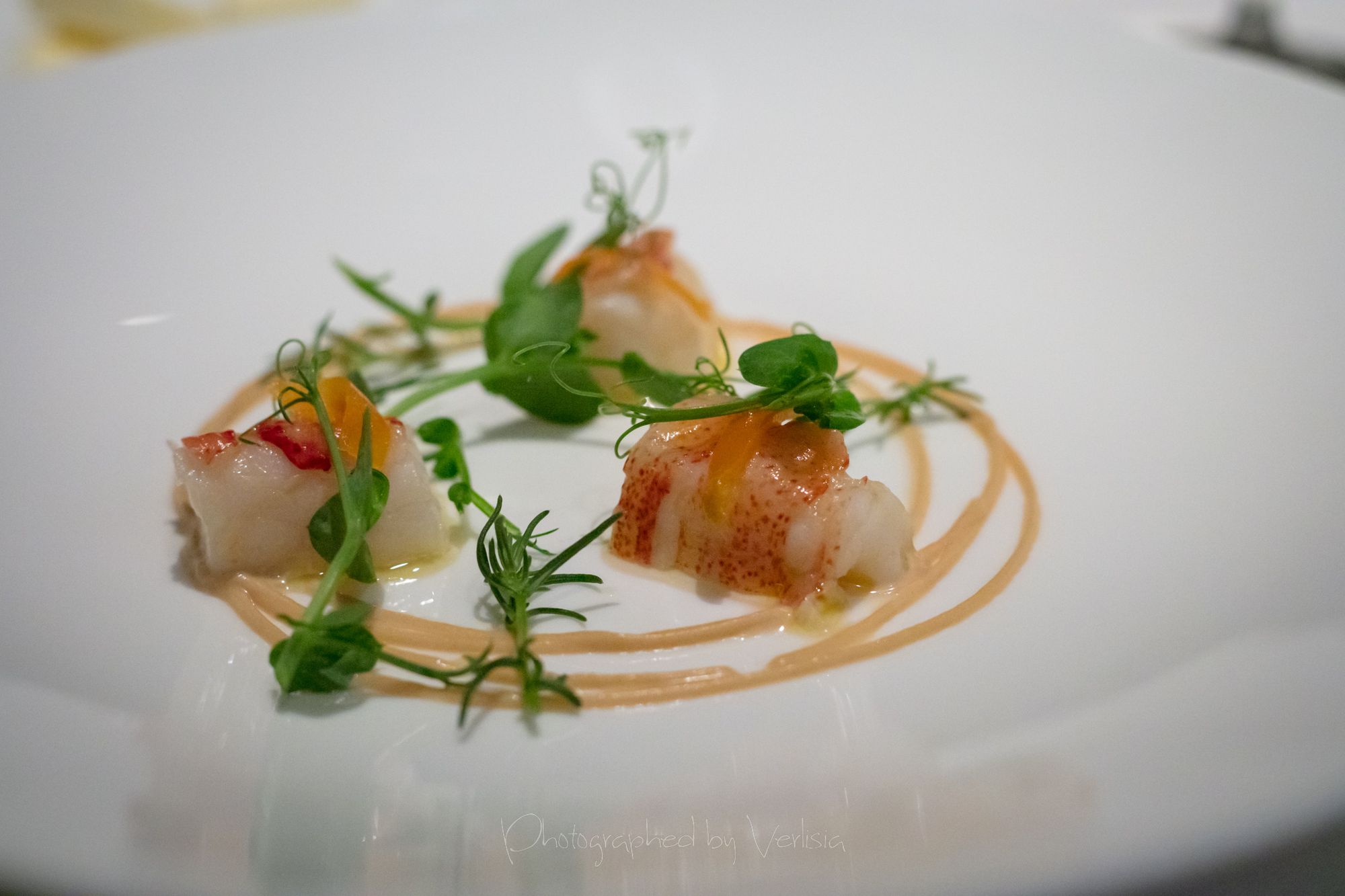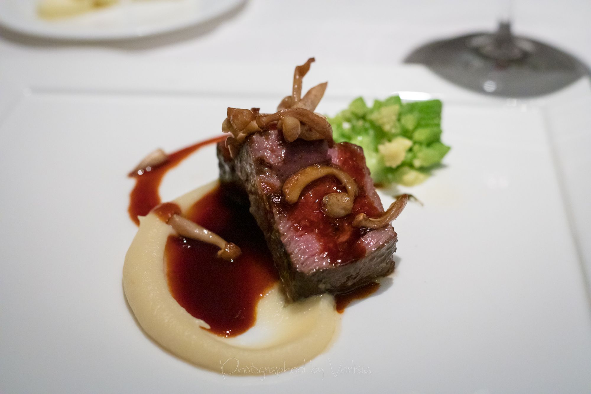 amuse boucheFoie Gras, Chilled Lobster with Miso Butterscotch and Preserved MandarinquatLocal Abalone with Caramelized Avocado and Sauce Meuniere, Pan Roasted Sea Bream with Fennel and Black Lime Potato with Cheese topped with Black Truffles, Breast of Squab, Iowa Wagyu Culotte Steak with Porcini MushroomsZamorano with Olive Oil Financier, Green Walnut and Manuka Honey, Soufflé Grand Marnier with Fresh BerriesStrawberry Vacherin with Mascarpone, Marzipan and Lemon Balm, Sweets