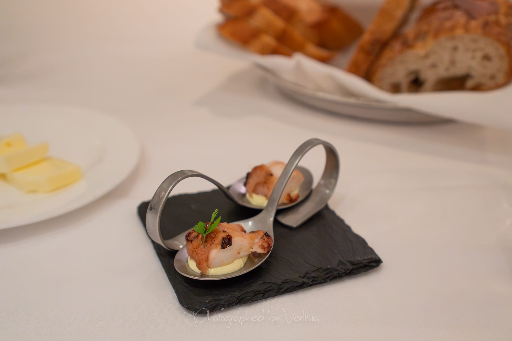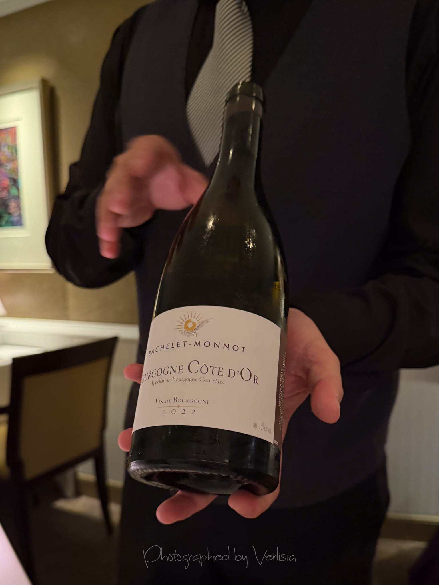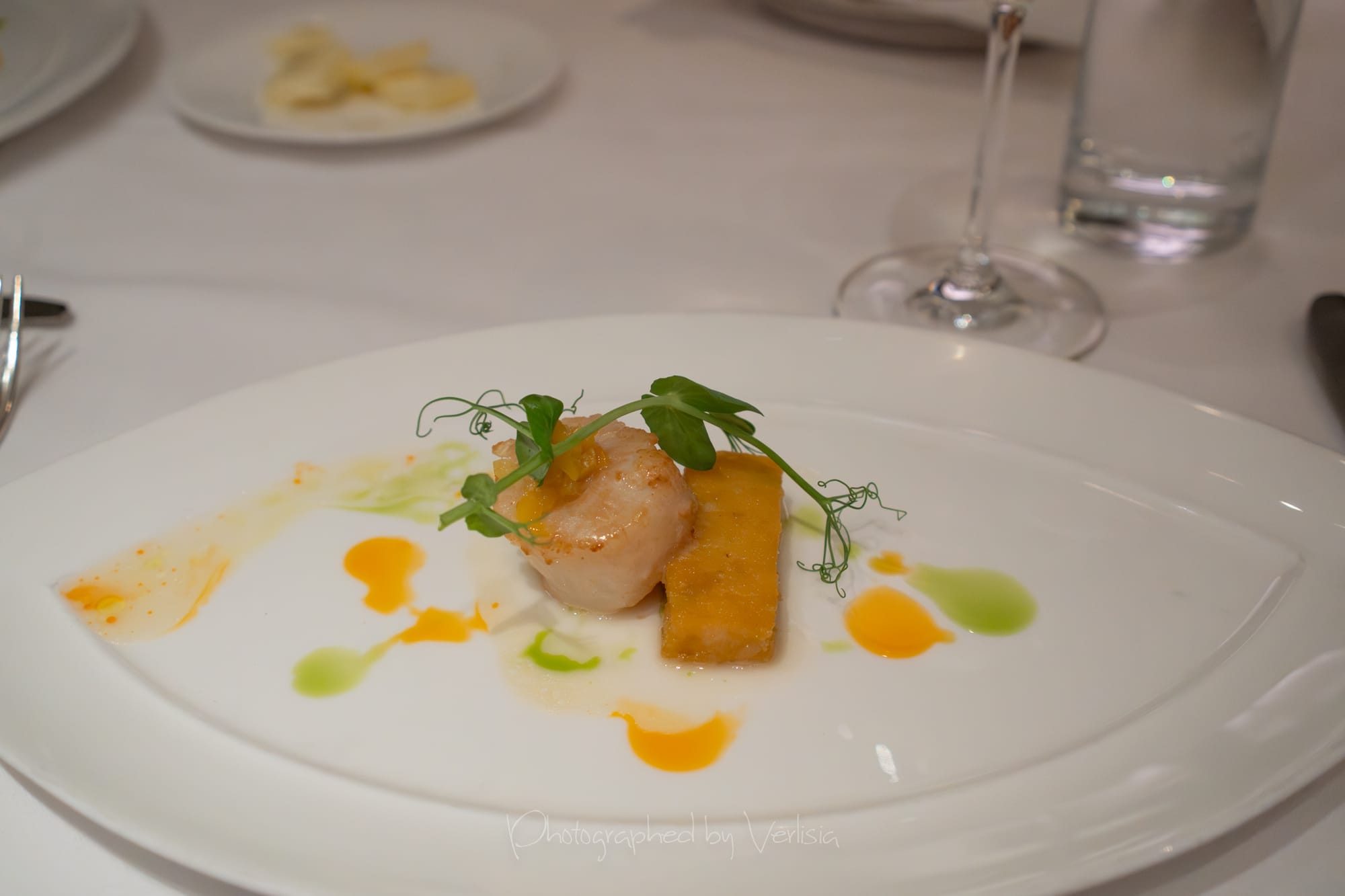 Scallop (pan seared, hazelnut polenta, meyer lemon); Wine Pairing - Bachelet-Monnot, Bourgogne Cote d'Or 2022, Burgundy, France