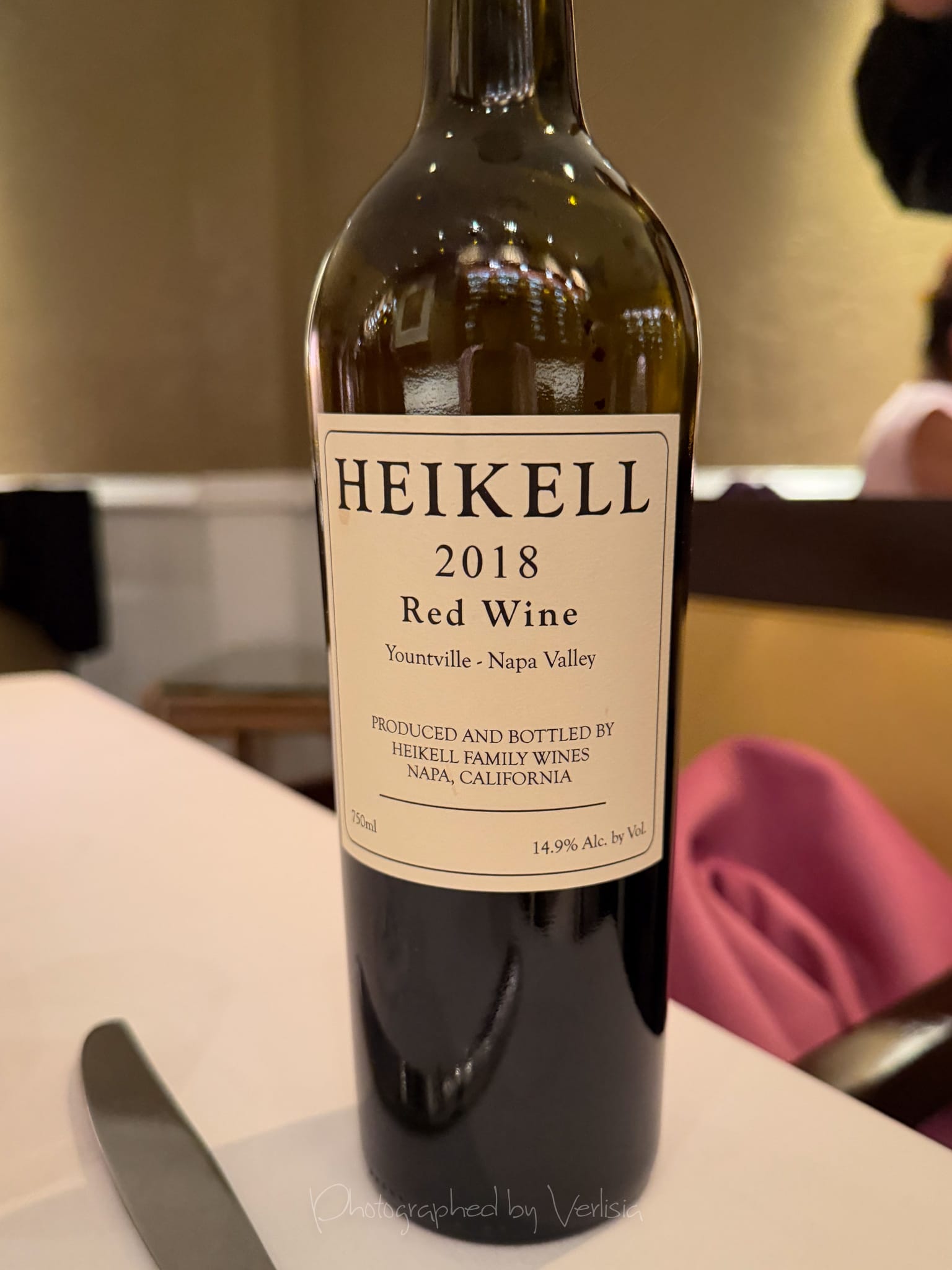 Wine Pairing - Heikell Family 2018, Red Wine, Yountville - Napa Valley; Bison Tenderloin (green peppercorns, tempura enoki mushroom)
