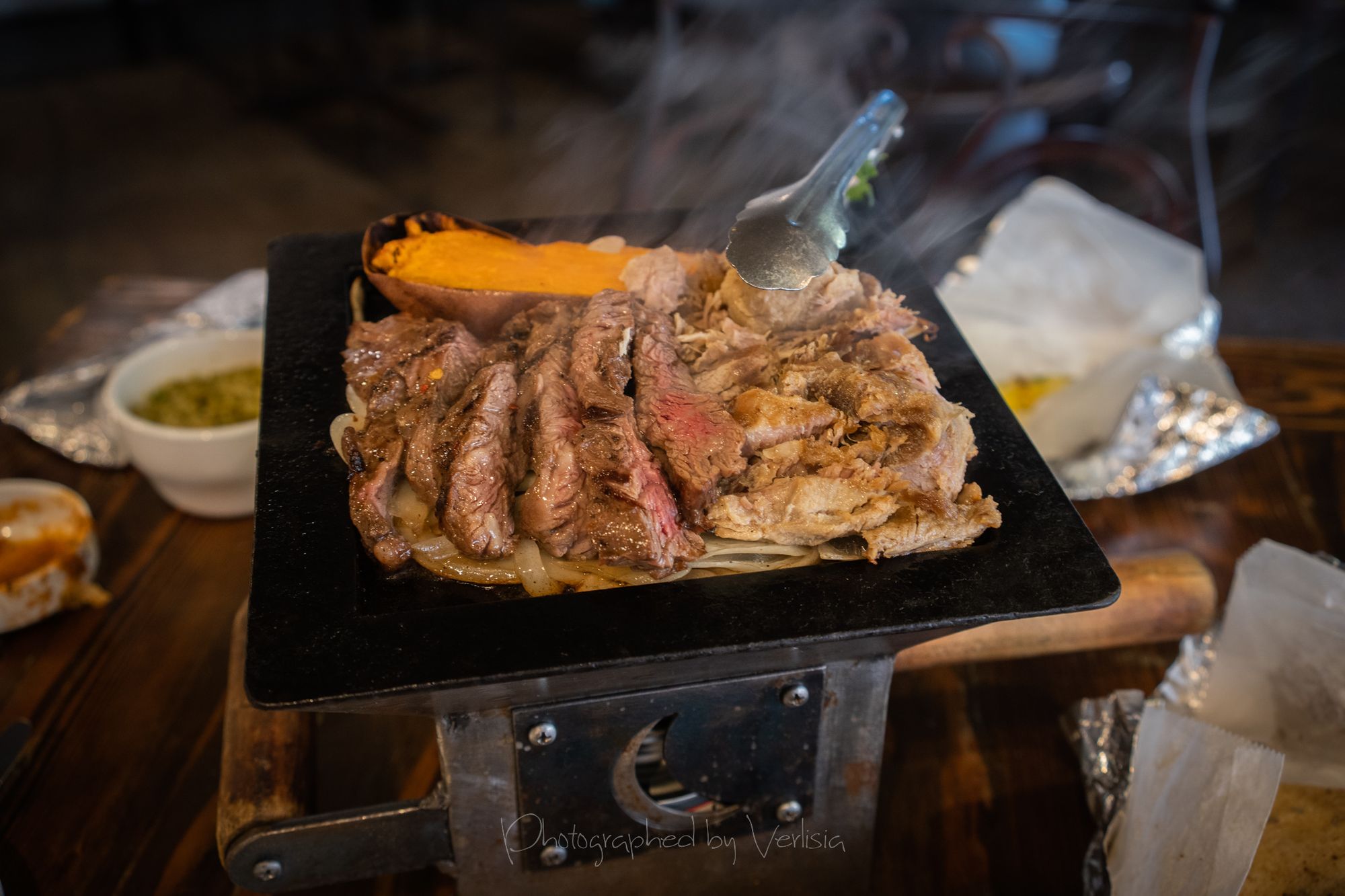Chips & Salsa, Watermelon Margarita (fresh lime juice, agave, Pueblo Viejo blanco tequila, fresh watermelon juice, and Tajin rim) Spicy Pina (Seedlip Grove, fresh lime juice, organic agave nectar, fresh pineapple juice), Ceviche (sustainable wild fish, fresh lime juice, avocado, cucumber, habanero, cilantro, heirloom tomato, radish, with crisp tostada) Queso Flameado with House-made Chorizo (flamed jack cheese, fire-roasted poblano pepper, with handmade corn tortillas) 1/2 Pound Parrilladas with Steak Fajita and Carnitas Handmade Tortilla, Sarroz Verde, Charro Beans, Guacamole, Sour Cream, Salsa Fresca