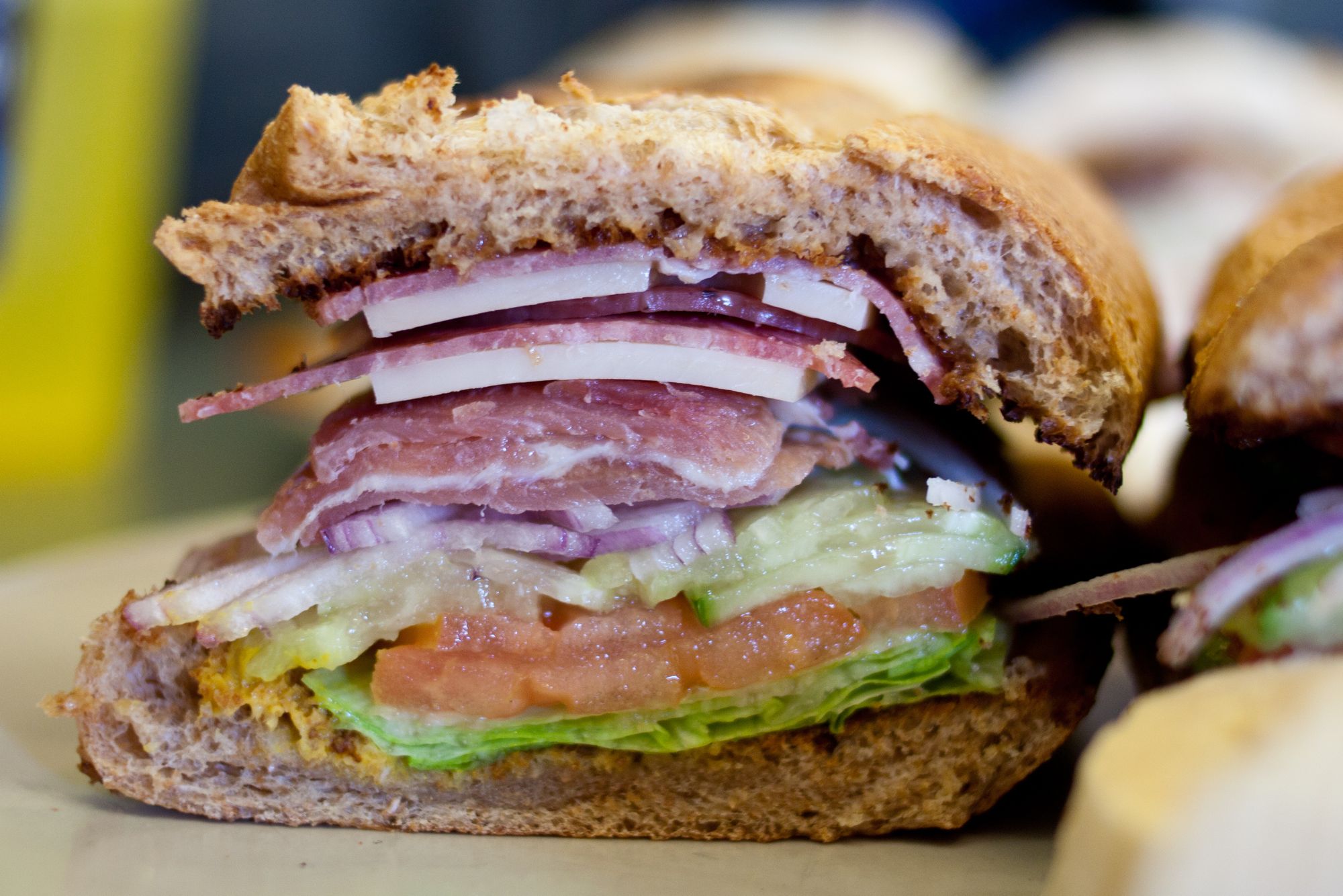 Sandwich Mama Mia Cafe, San Mateo, California [Closed] Mama Mia Cafe, San Mateo, California (Jan 2012) 19 W 25th Ave, San Mateo, CA 94403Jan 2012[Closed]A La Carte MenuNapoleon Sandwich (Prosciutto, salami, Swiss, lettuce, tomato, vinaigrette on dutch-crunch), Lamb Sandwich (Lamb curry, red onion, cucumber, lettuce, tomato on baguette) Share