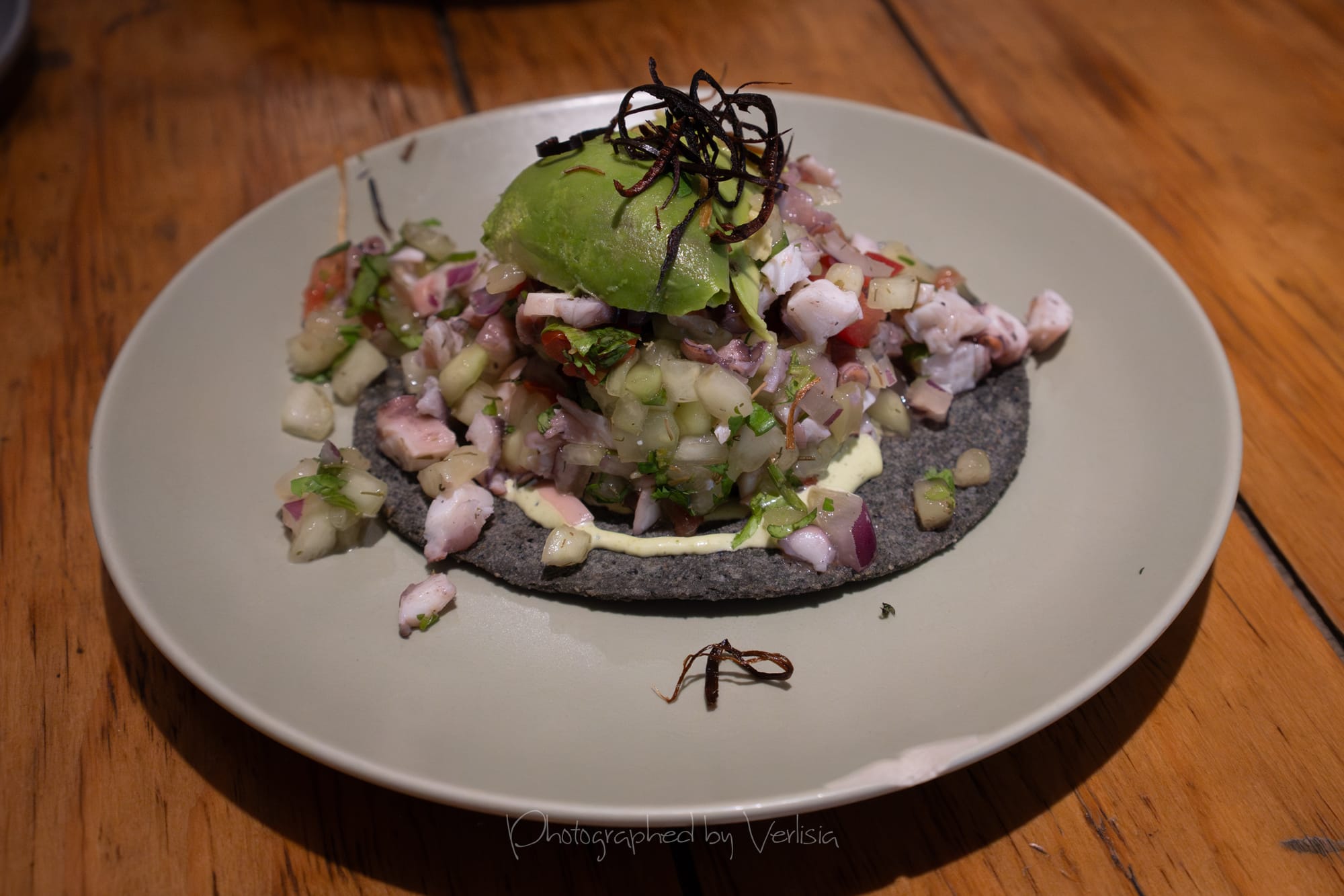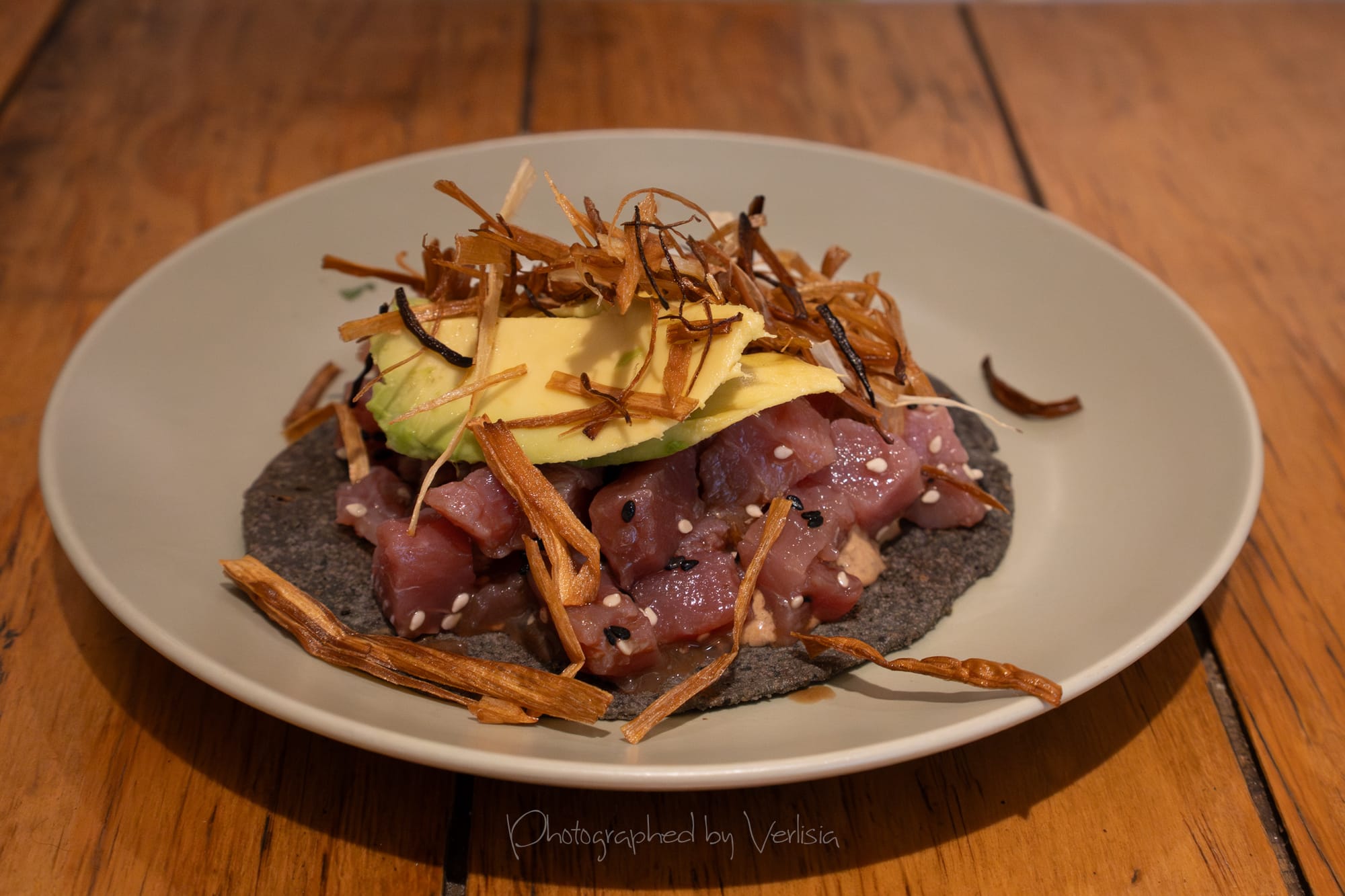 Atún (Soya, Mayonesa Chipotle y Aguacate) Tostadas; Pulpo (Pico de Gallo) Tostadas