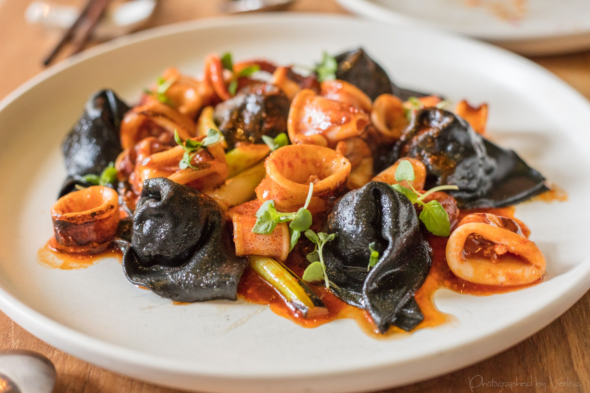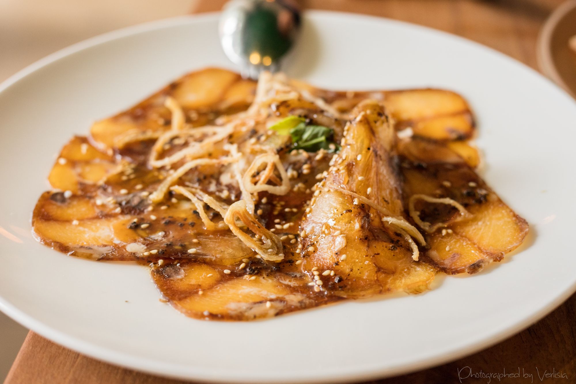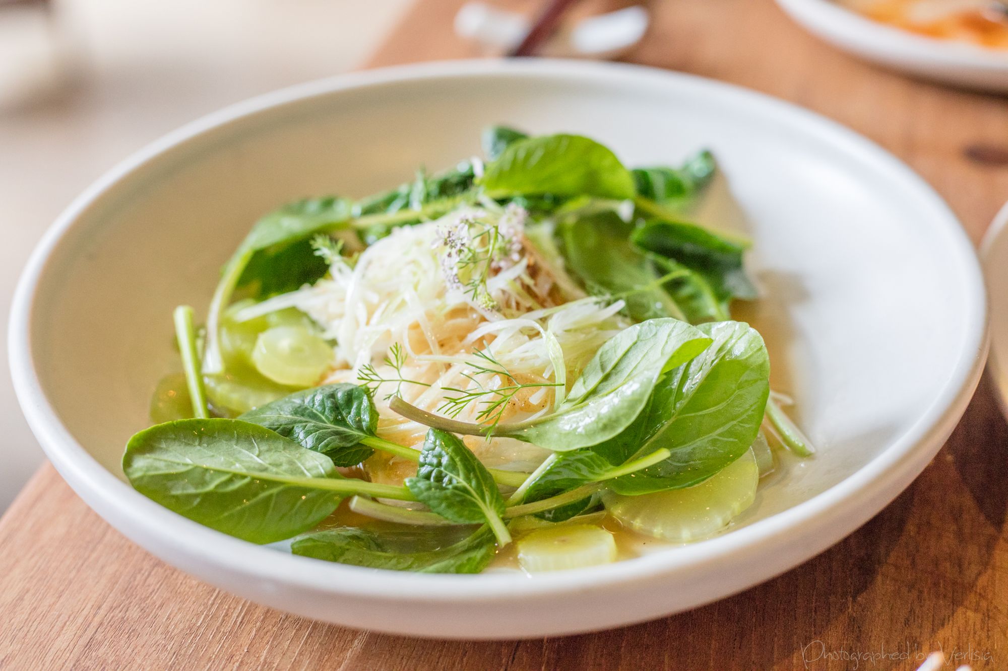 Charcuterie (Devil's Gulch Pig Headkolhrabi, tea egg, amaranth), Charcuterie (Gilled Beef Tendoncelery leaf, bell pepper)Wontons (pork, sichuan peppercorn, Monterey squid), Ribeye Cap Mapo Tofu, Sizzled Alaskan Halibut (oyster broth, bok choy, young ginger, celtuce), Liver MooseLiberty Farm Roasted DuckChocolate (beeswax sabayon, milk chocolate ginger, pollen)