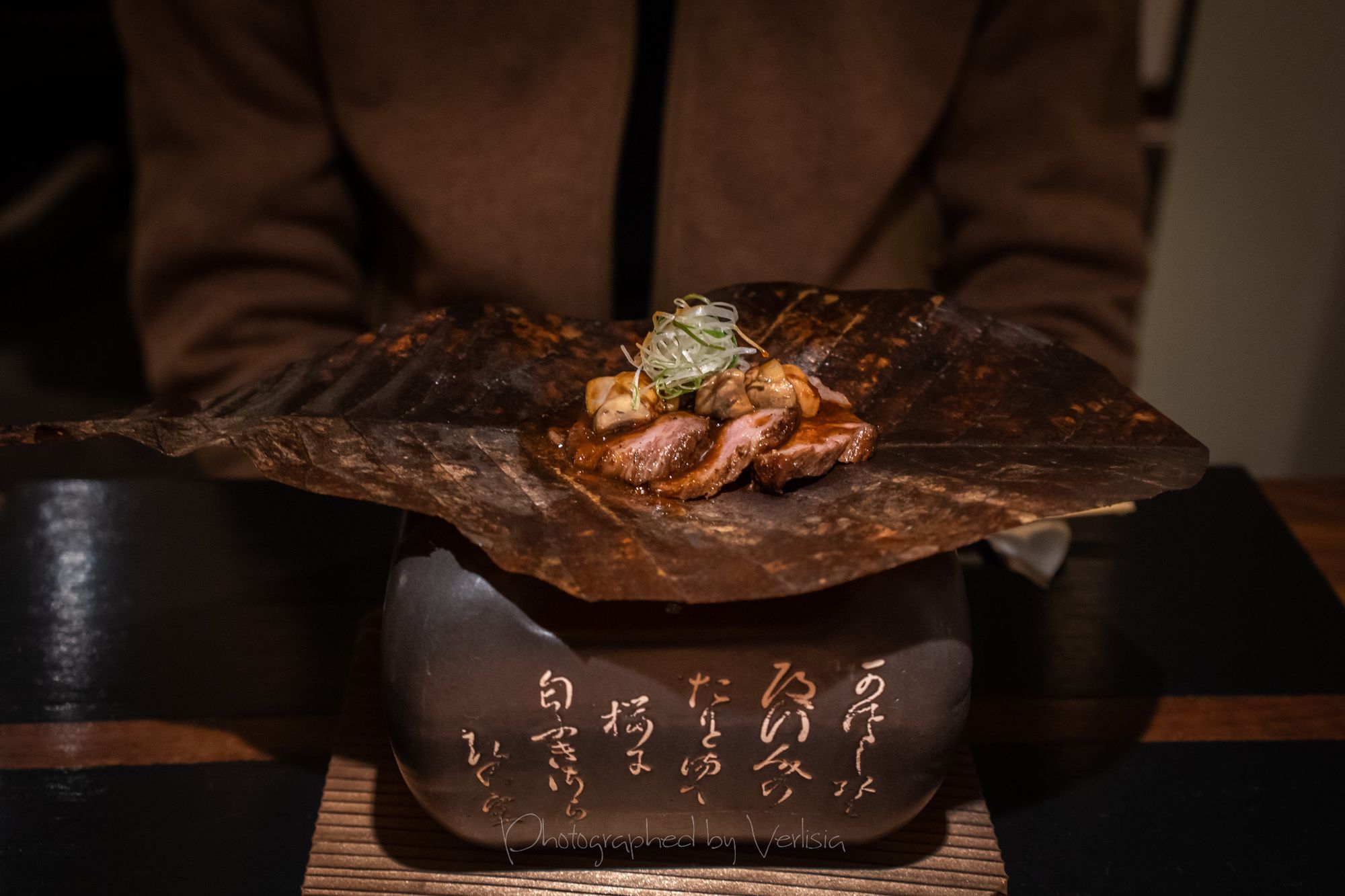 Niku (A5 Miyazaki Wagyu Beef Houba), Sunomono (Asian Pear, Korean Melon, Pickled White Cloud Mushroom, Pear Jelly, Red Shiso Amazu), Miso Soup