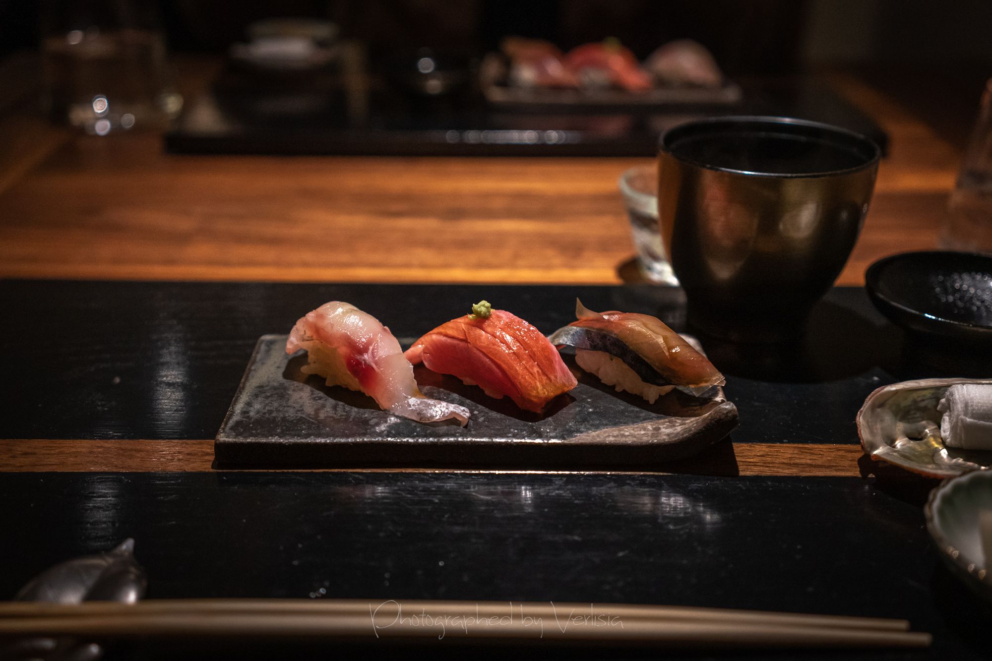 Modern Zukuri (Aji, Lime, Eggplant, Fig Oil, Bell Pepper Ponzu, Myoga, Brunt Onion "Dust"), Owan (Lobster, Matsutake, Mitsuba, Sudachi), Traditional Zukuri