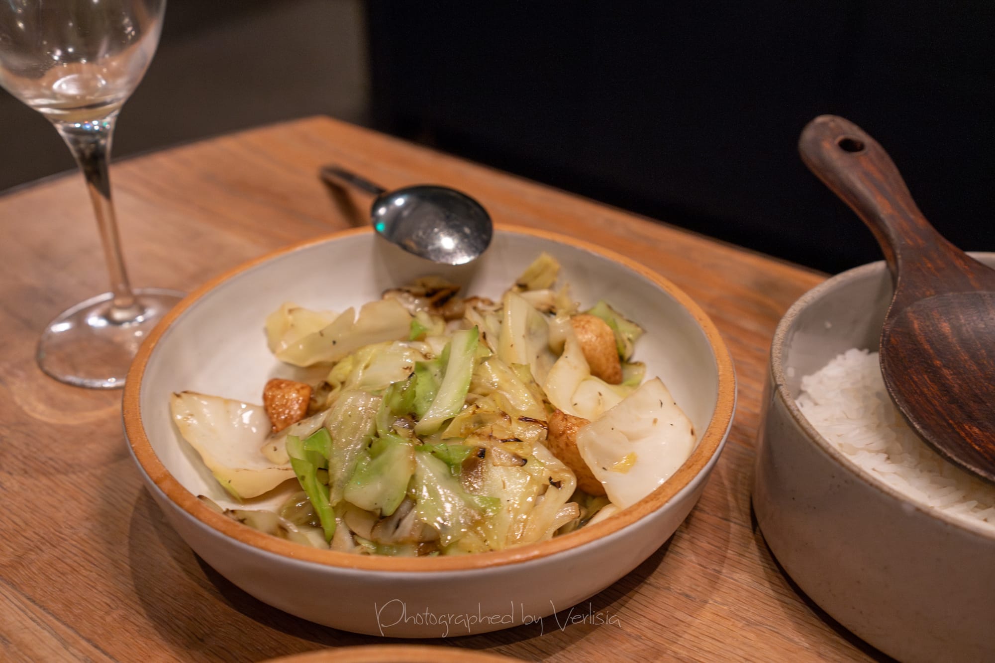 Caramelized Fish Sauce Cabbage (wok-tossed cabbage in fish sauce & garlic), Jasmine Rice