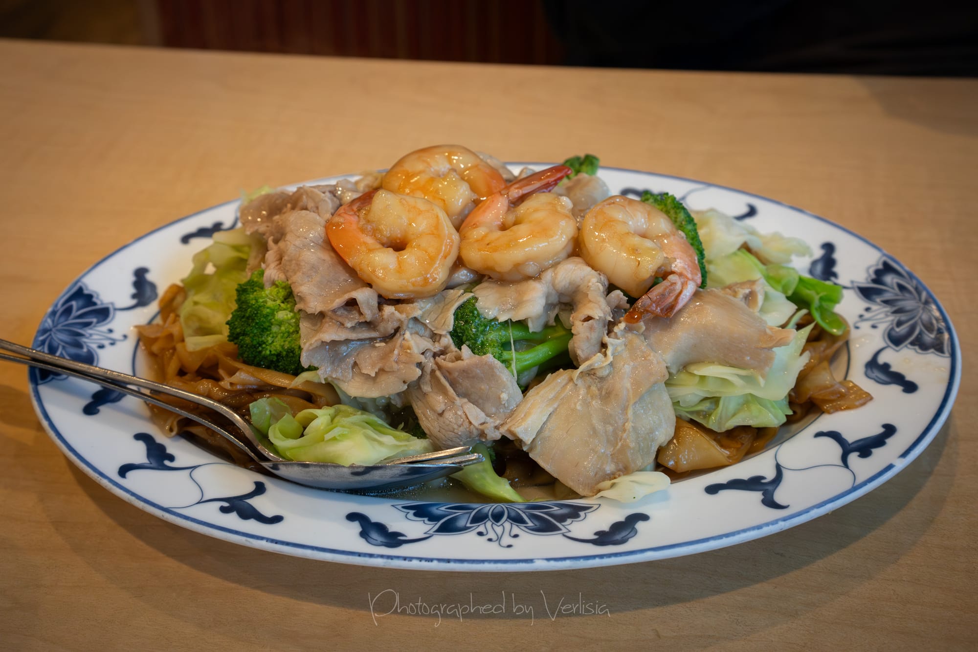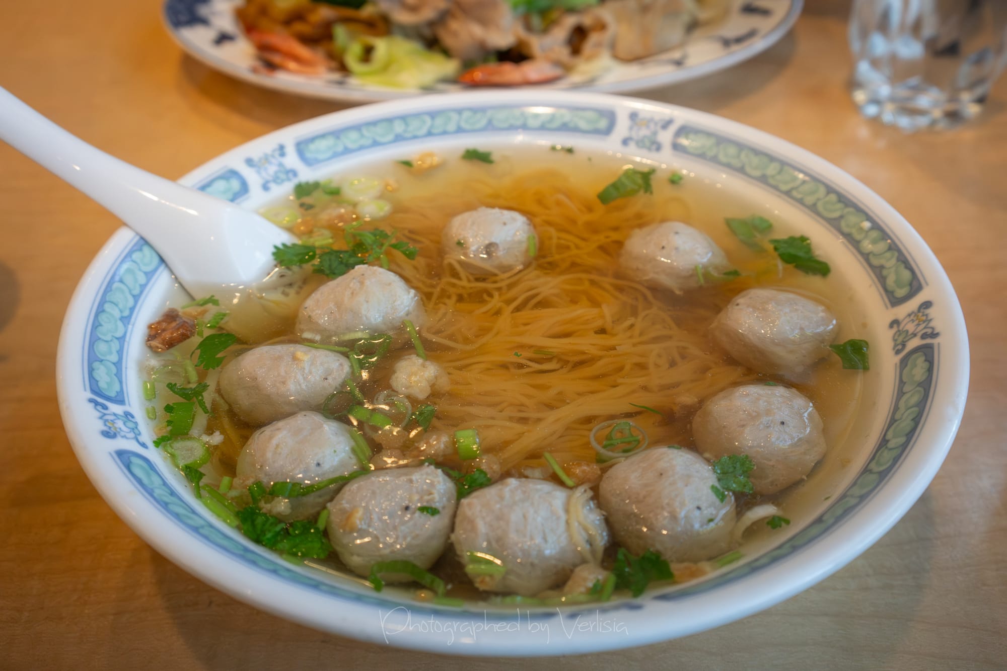 Fresh Young Coconut Drink; Combination Chow Fun (Stir Fried Rice Stick Noodles with Chicken, Pork, Prawns, and Vegetables); Beef Ball Noodle Soup (Egg Noodles with Beef Balls)