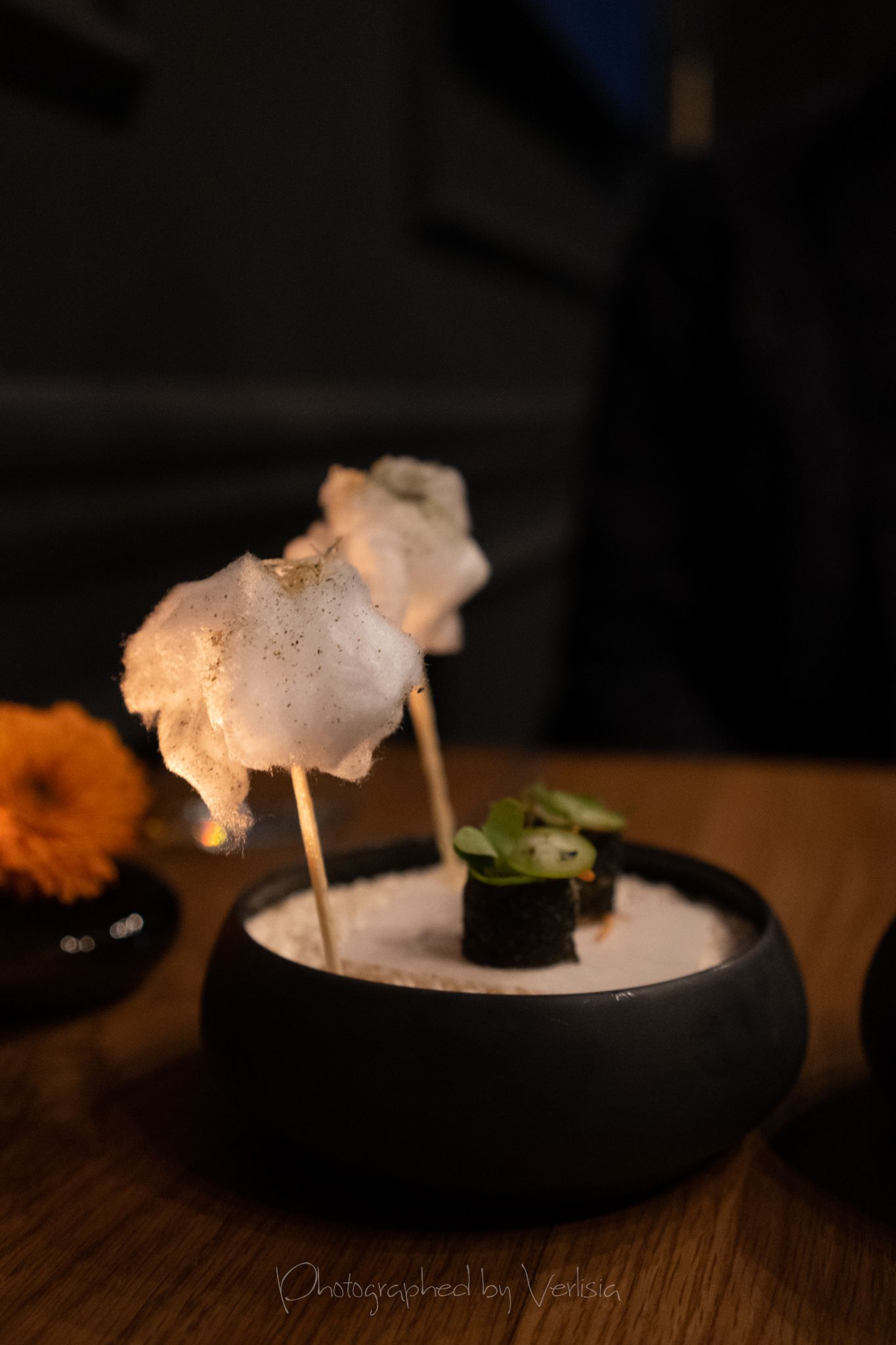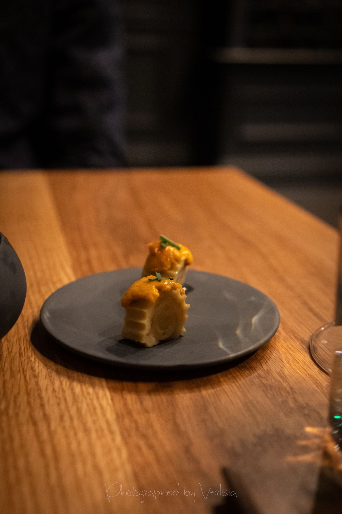 Nori | Shirasu | Sansho, San Francisco anchovy | Carrot | Uni | Nori, Maine Scallop four ways | Yuzu gel | fennel, Datemaki | Scallop | UniSuppon | Negi | Mochi, Ankimo pate | Milk Bread | ScanberryKiing trumpet mushrooms | Dungeness crab | winter melon, Black cod | satsuma imo | seaweed | caviar sauceBeef Cheef | tataki gobo | kinpira | local greens, Unagi | furikake rice | tsukemono | daikon
