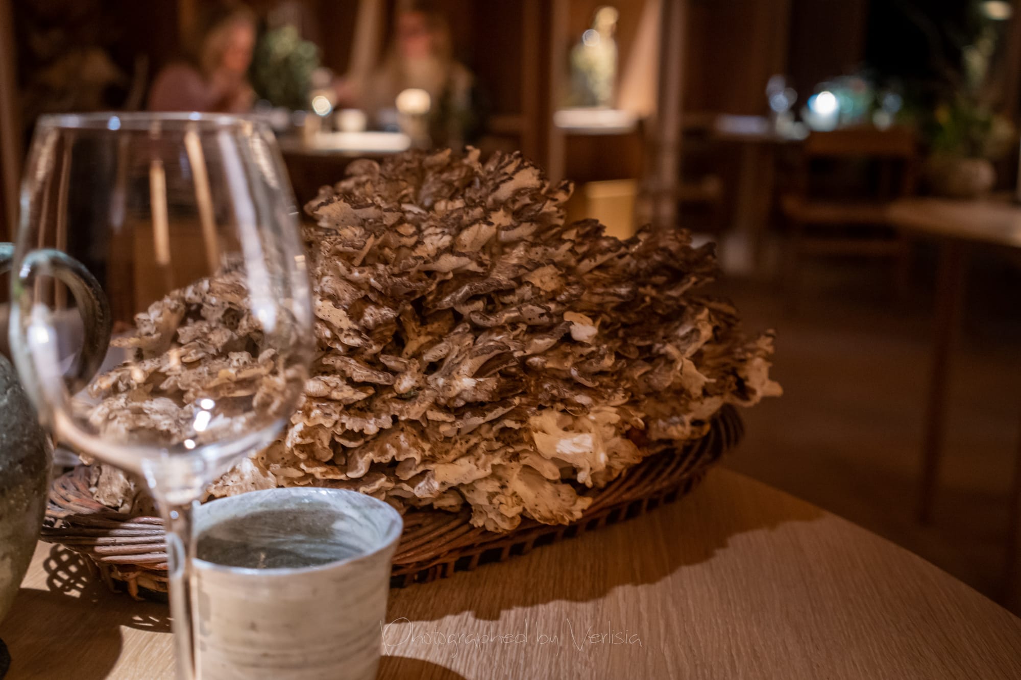 Tree sap tart. Fresh hazelnuts and chanterelles