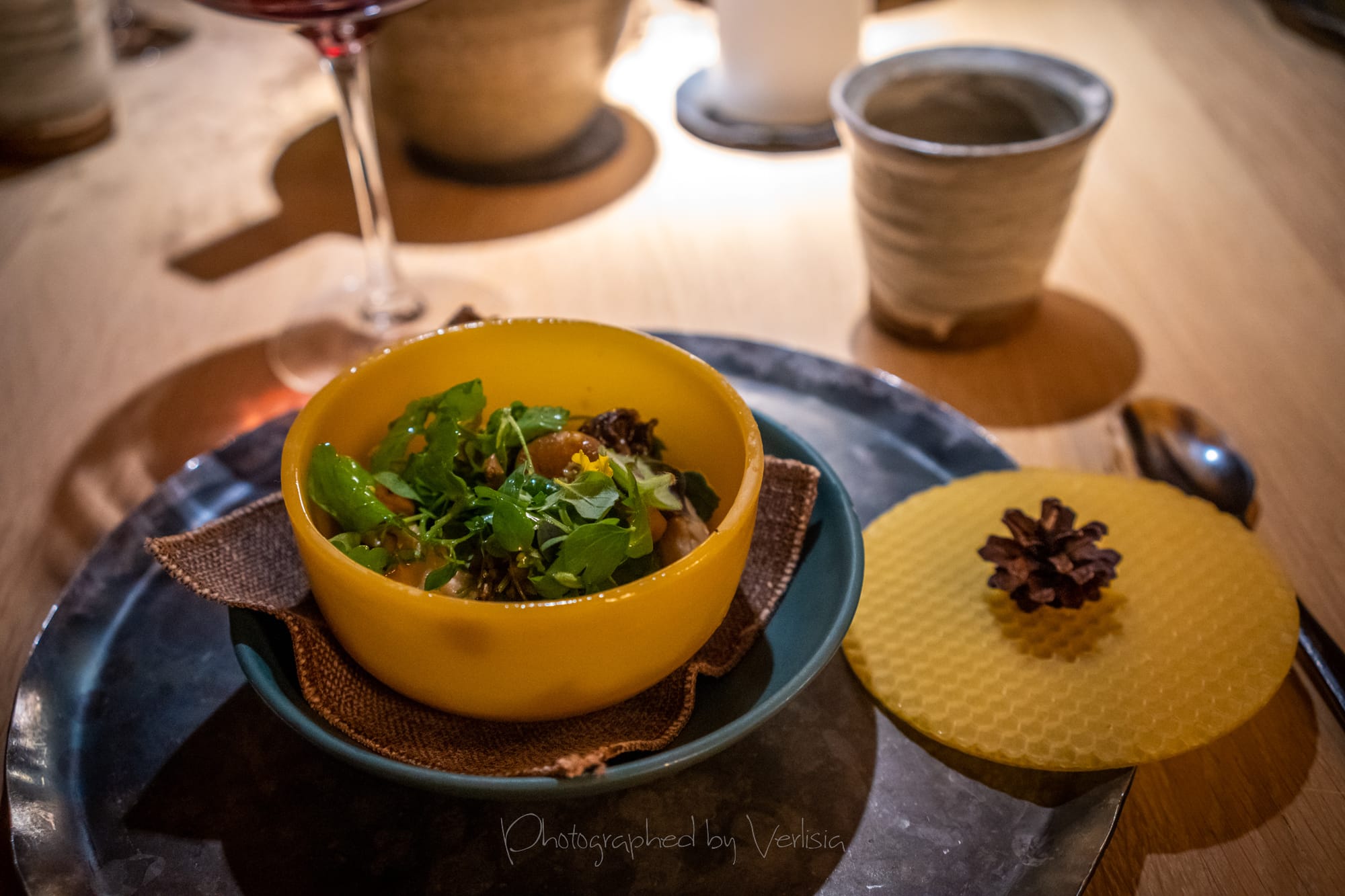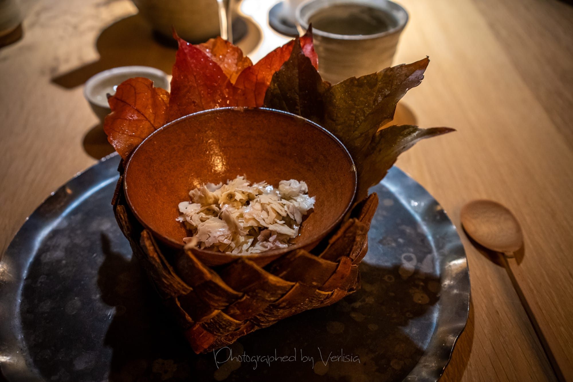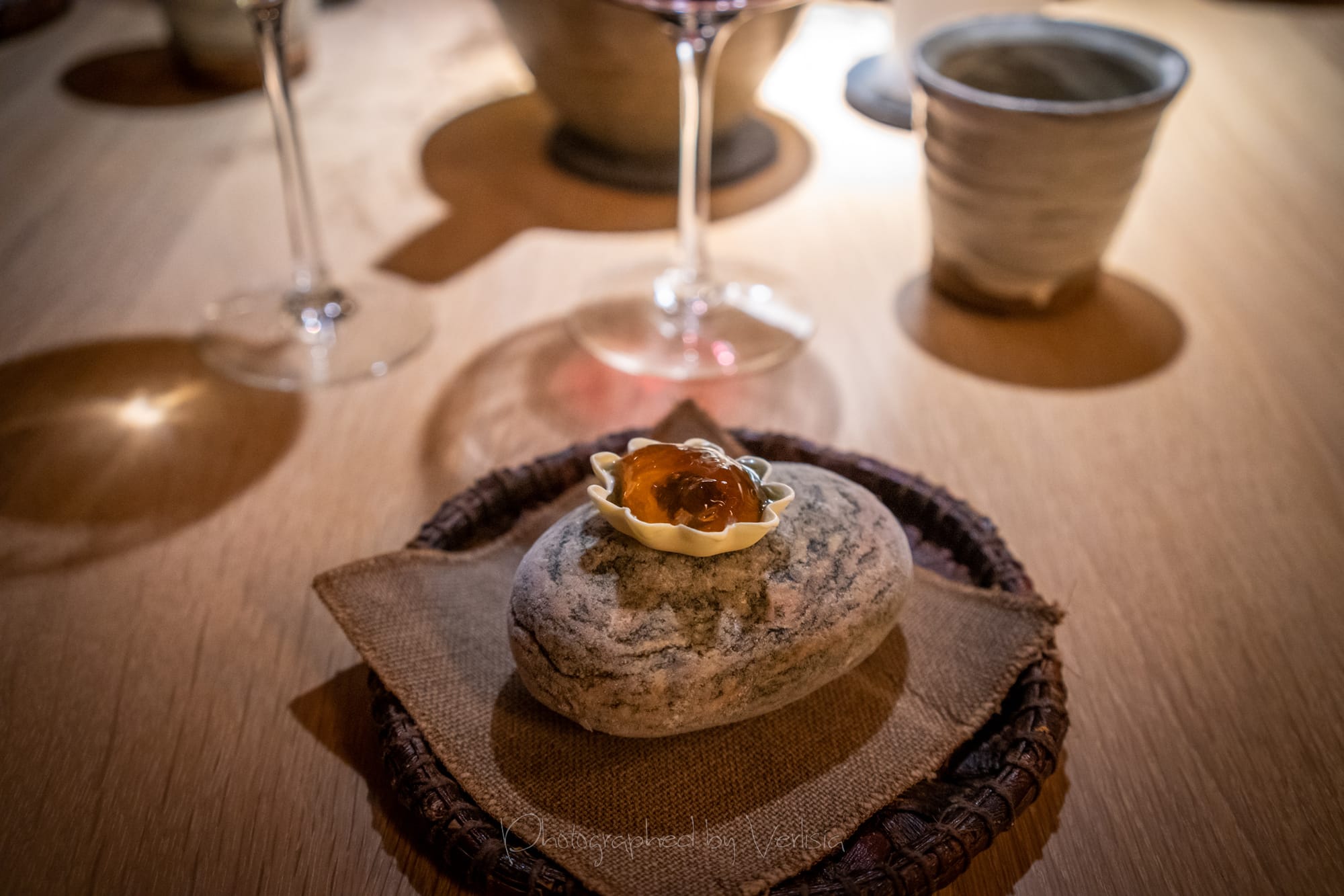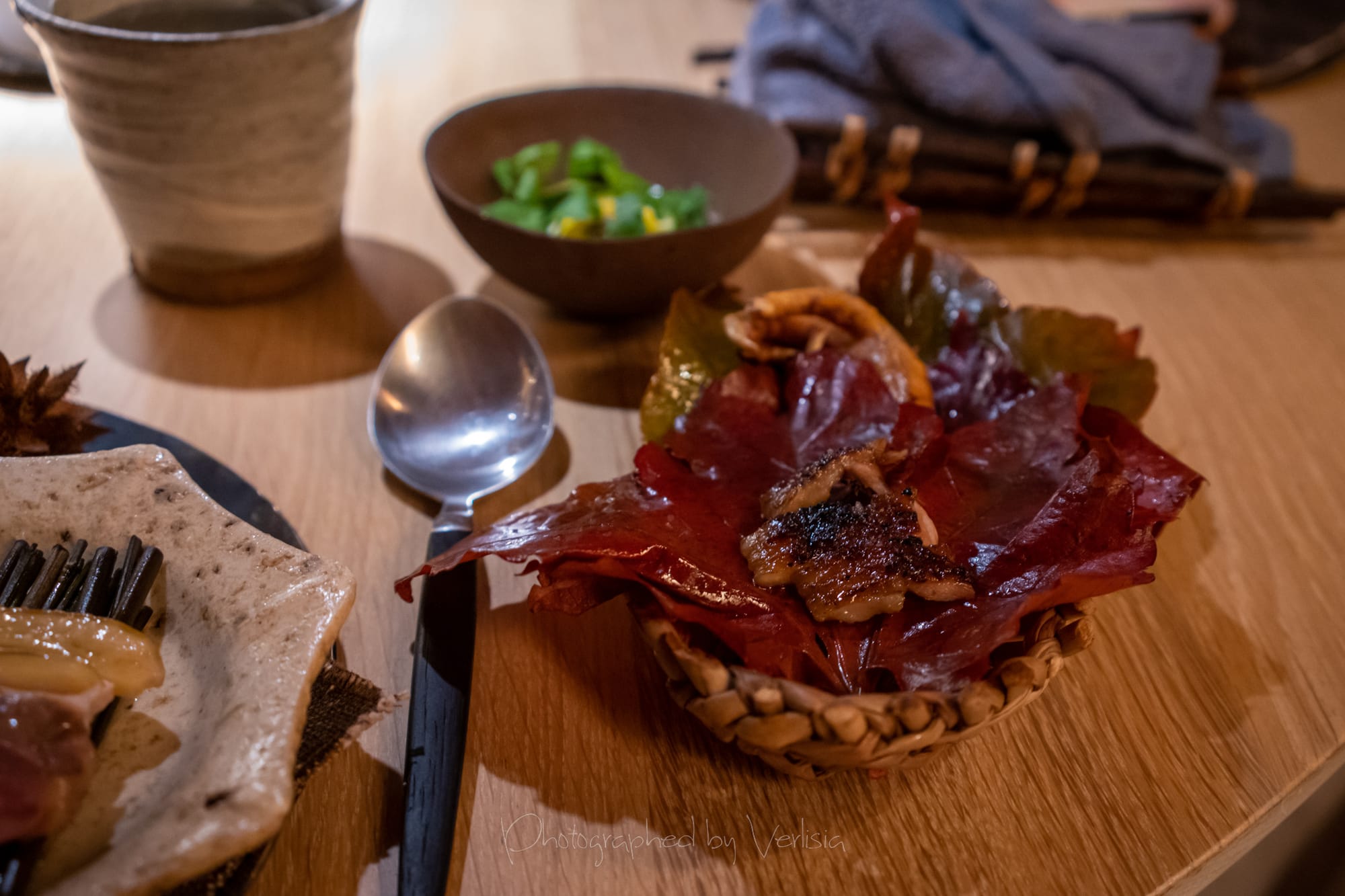 Wine Pairing - 2022 Niida Shizenshu Junmai Ginjo - Yasuhiko Niida, Koriyama, Fukushima, Japan (served warm). Juice Pairing - Tea stem & fig leaf