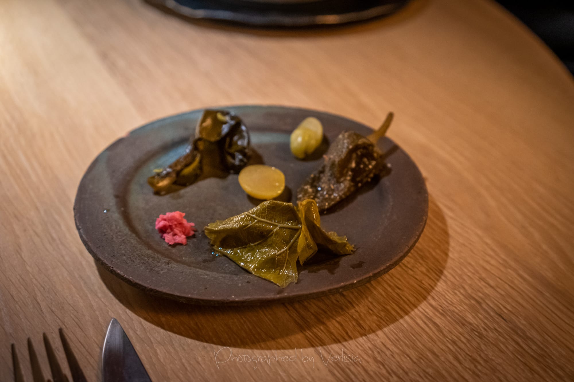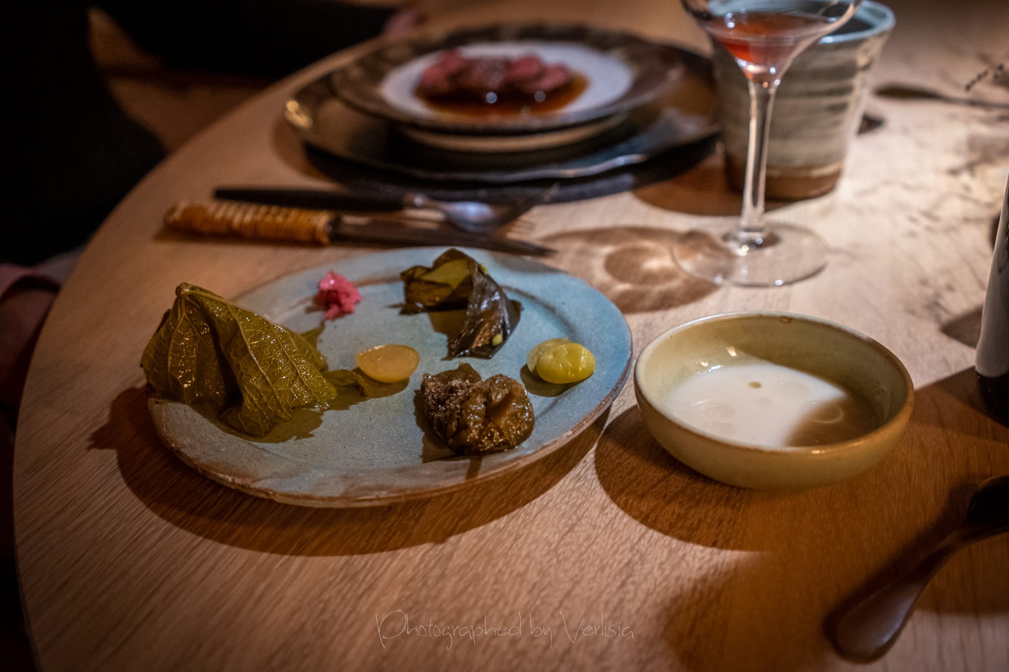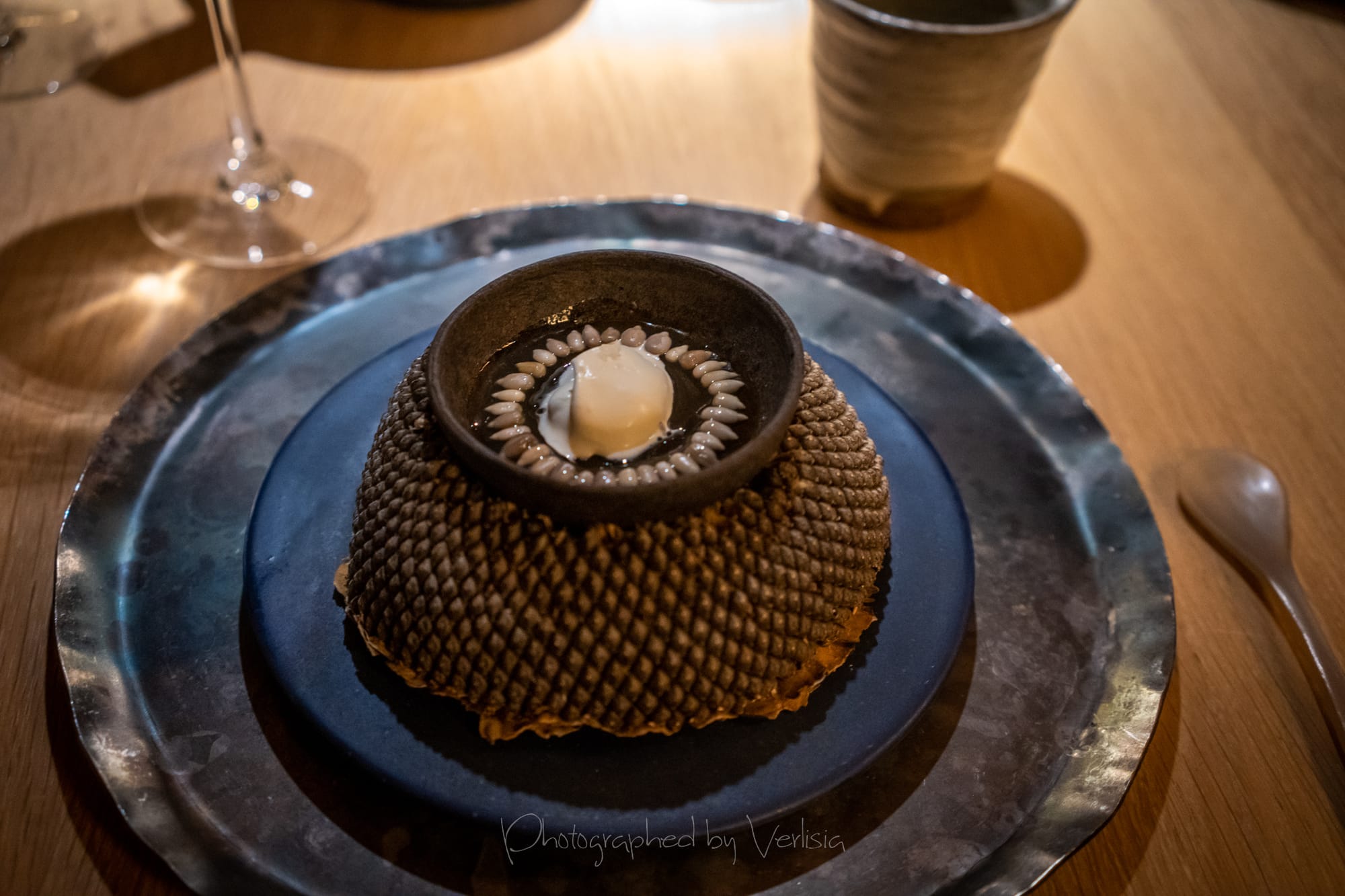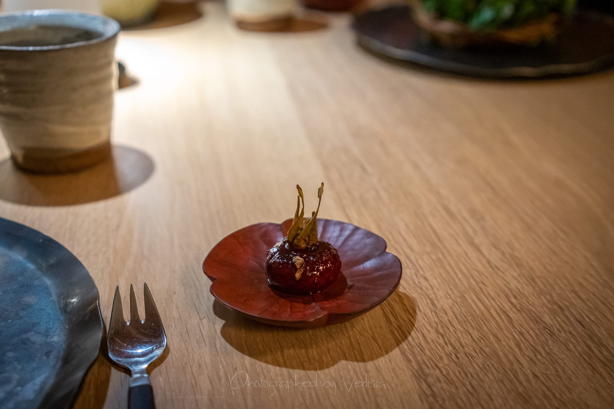 Wine Pairing - 2022 Niida Shizenshu Junmai Ginjo - Yasuhiko Niida, Koriyama, Fukushima, Japan (served warm). Juice Pairing - Tea stem & fig leaf