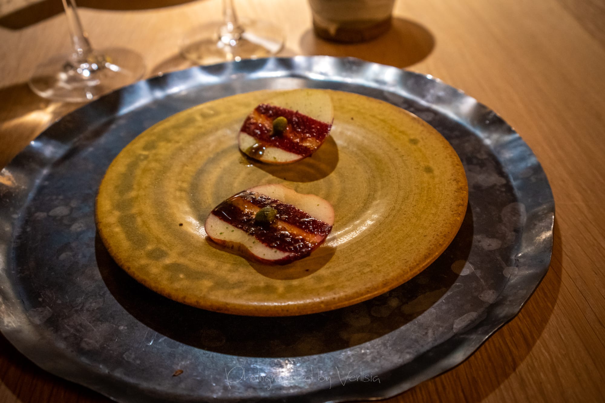 Wine Pairing - Indigene - Benedicte & Stephane Tissot, Montigny-les-Arsures, Jura, France. Juice Pairing - Pear & Juniper