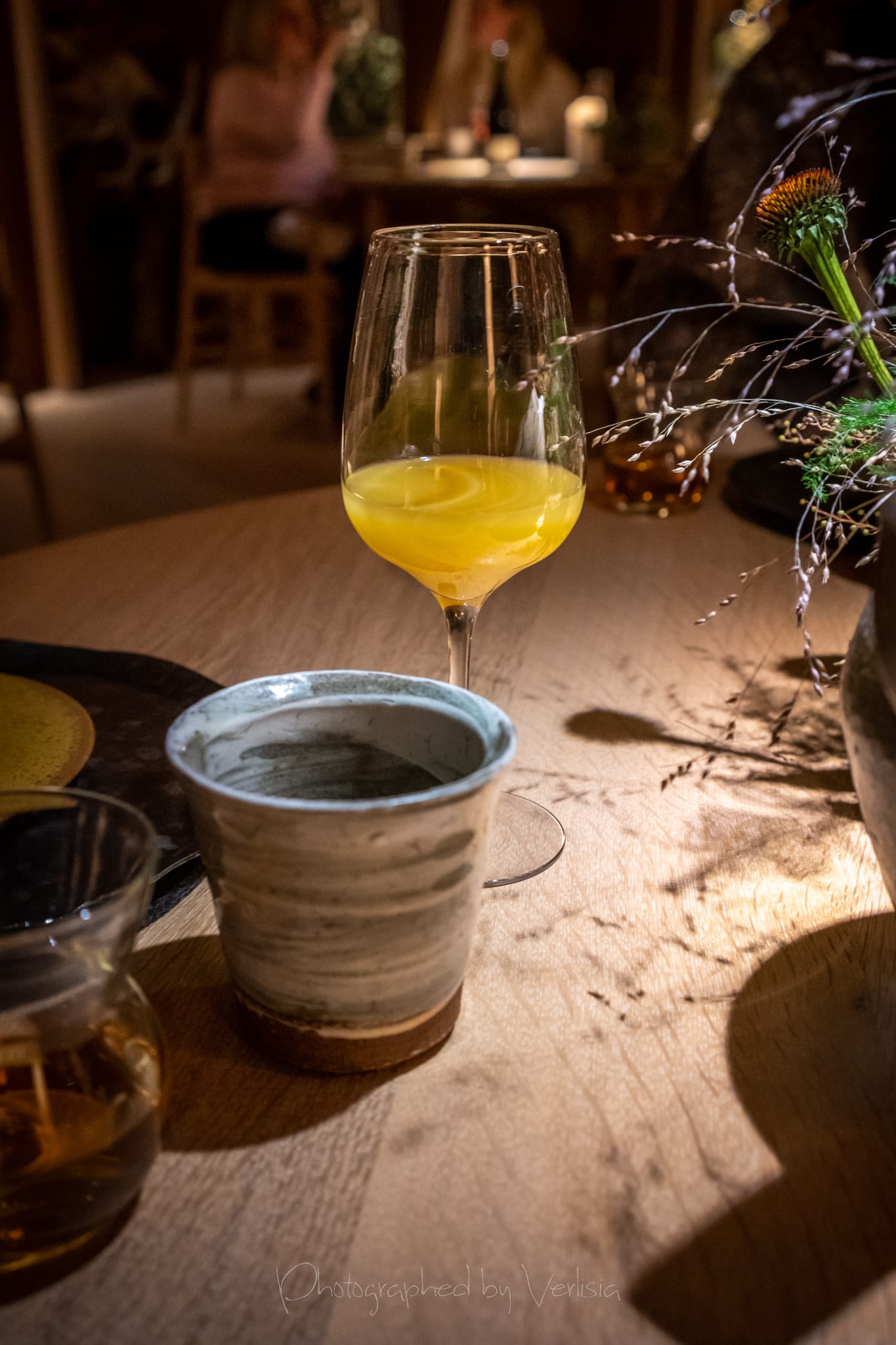 Wine Pairing - 2020 Le Rayon Blanc - Tomas Puechavy, Nazelles-Negron, Loire, France. Juice Pairing - Quice, koji & saffron