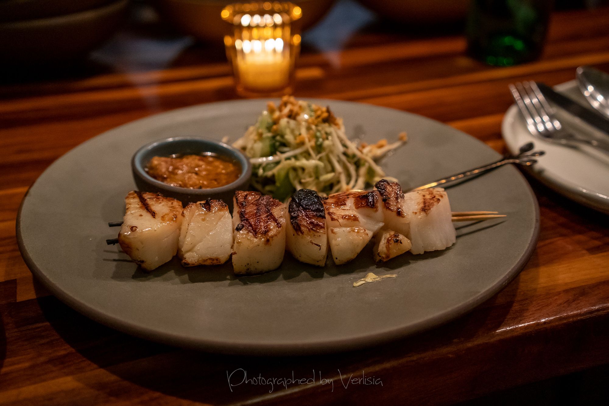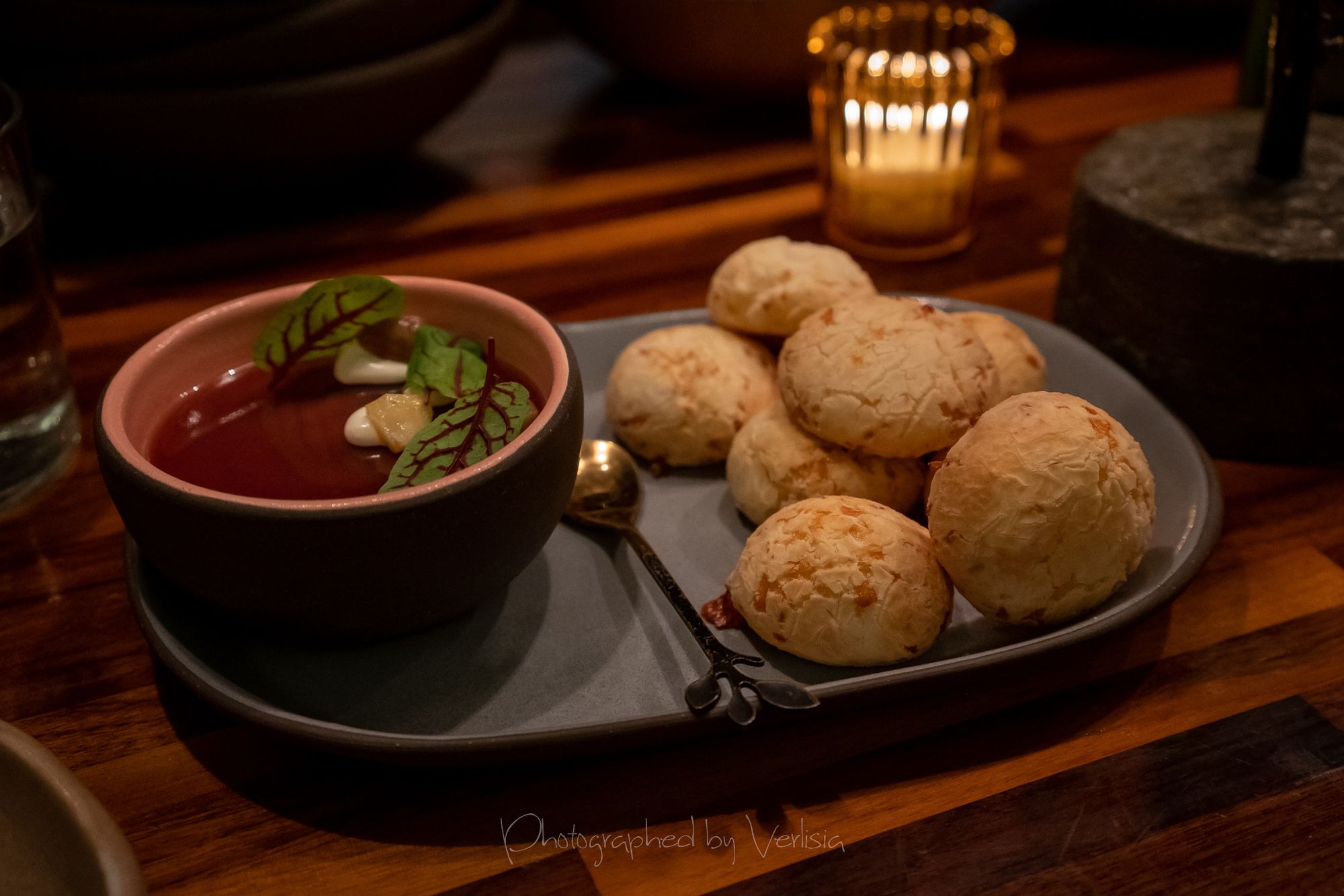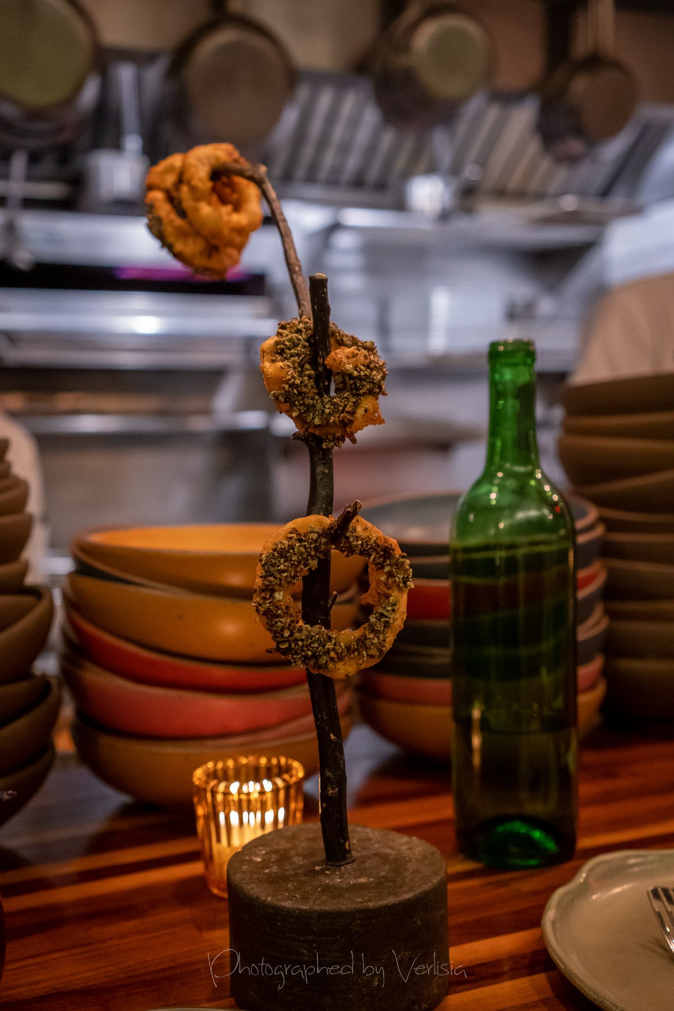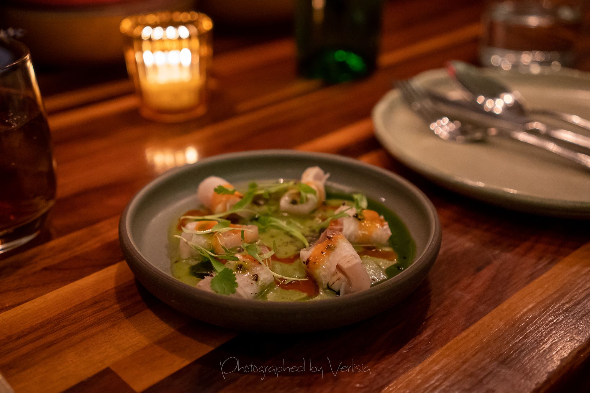 Lavender (Bourbon, Herbes de Provence, PX, Black Walnut Bitters), Mahi-Mahi Crudo (Pickled Jicama, Sorrel, Elderflower Hot Sauce)Beer Battered Delicatta Squash Rings (Green Tomato Ketchup, Fallikake)Mousse Figado de Pato (Guava Membrillo & Pão de Queijo), Beautiful Radicchios (Ajo Blanco Vin, Almonds, Grapes)Roasted Maitake (Chestnut Puree, Cranberry Chimichurri), Scallop Lettuce Wraps (Shrimp Spring Rolls, Shiso, Radish, Pear, Cashew Satay)