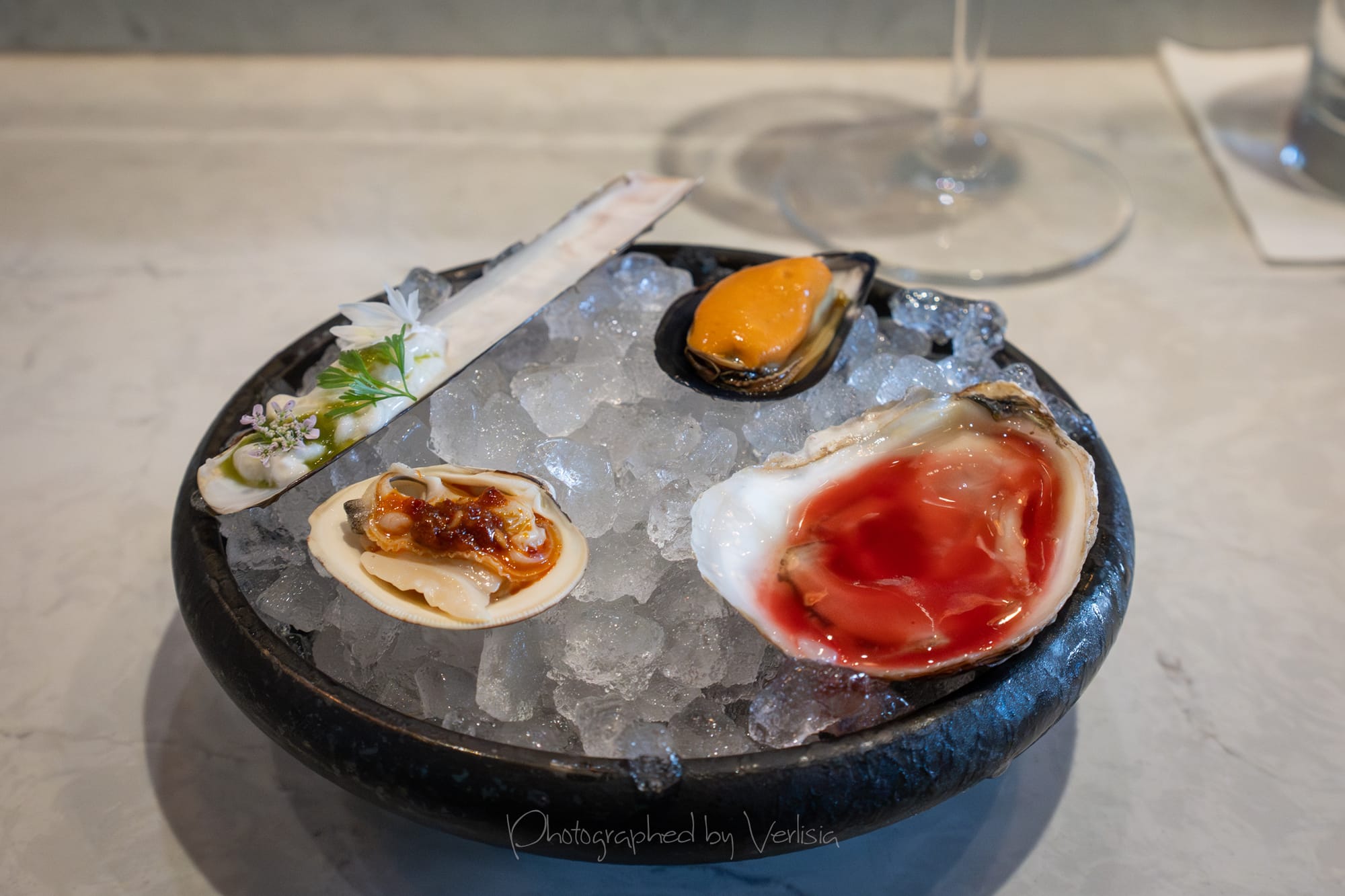 Shells - Razor Clam, PEI Mussel, Beausoleil Oyster, Cherry Clam