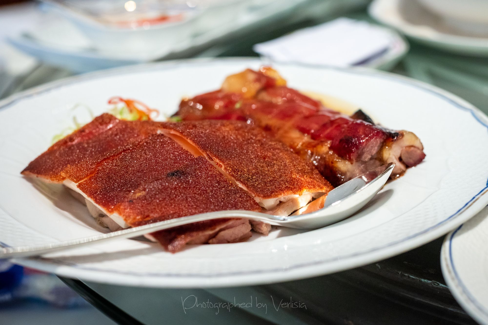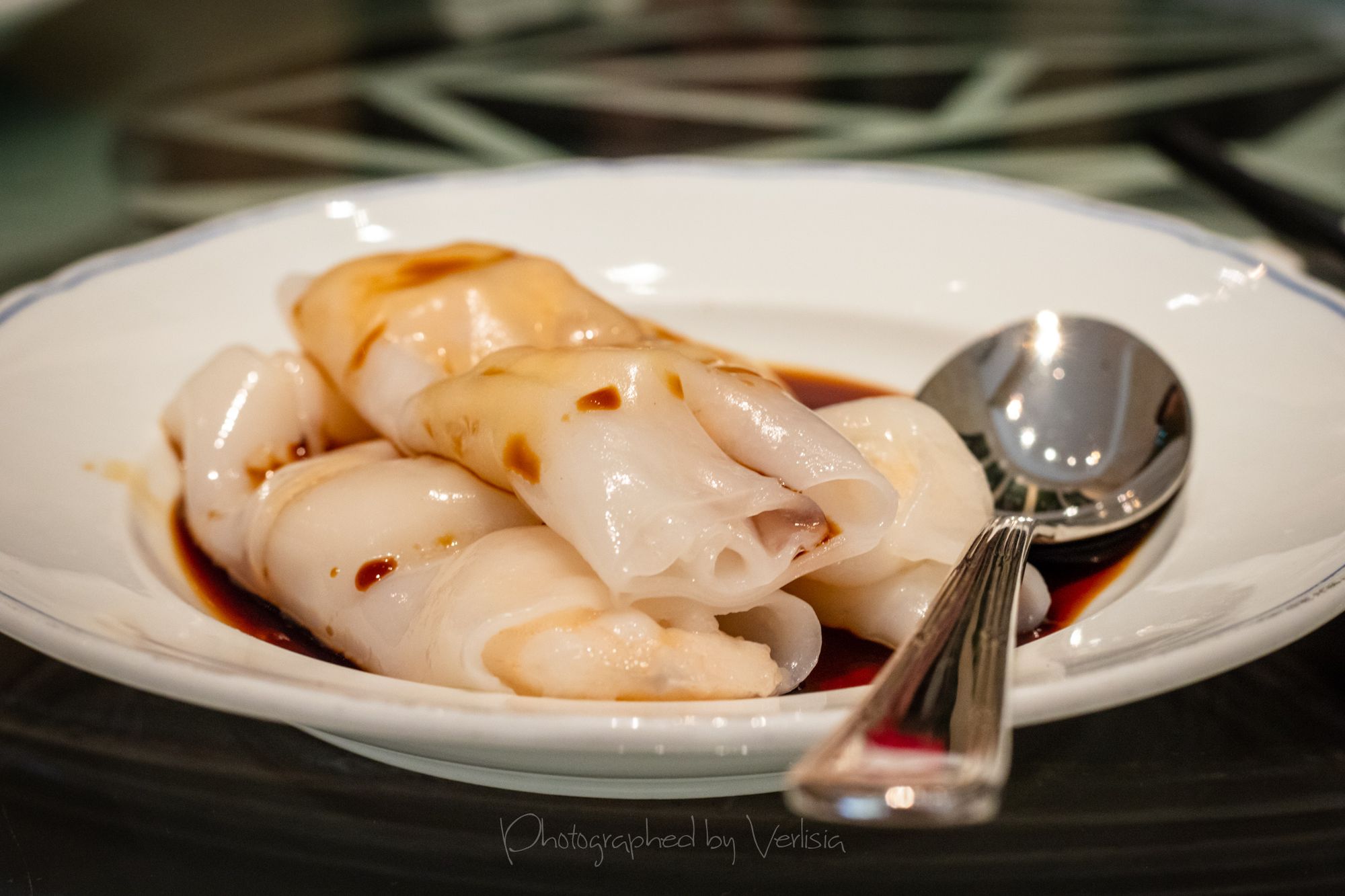 Steamed rice flour rolls with fresh prawns, Crispy Suckling Pig with Honey Barbeque Pork