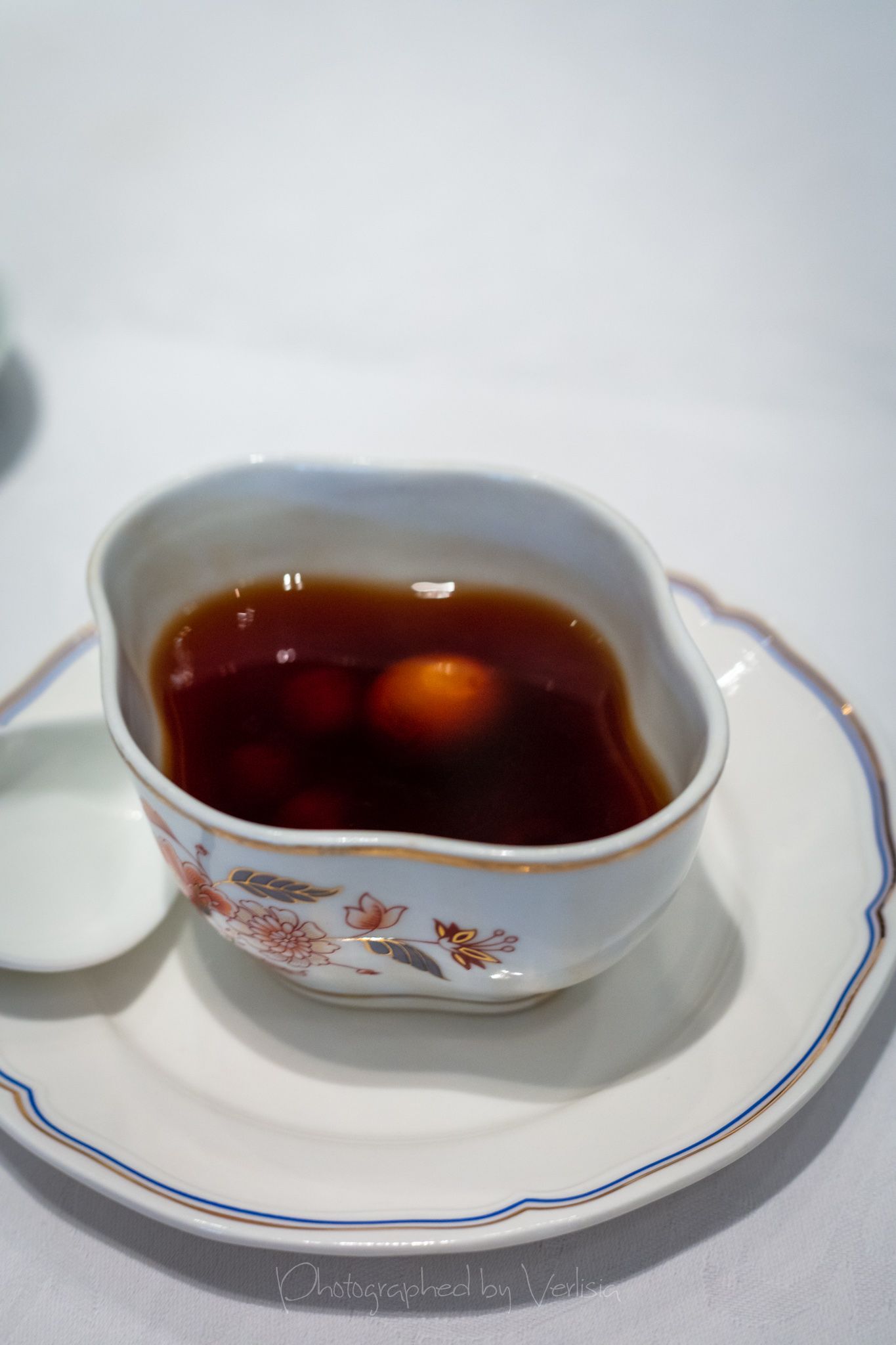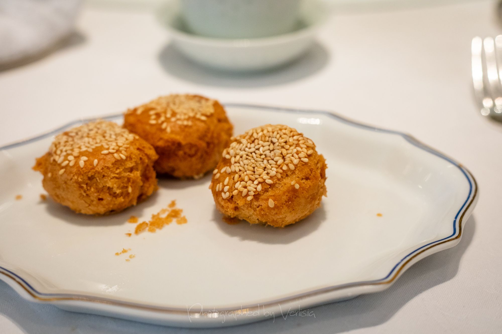 Deep fried fermented beancurd pastries and lotus paste, Sweetened Chinese herb tea with lotus seeds and quail egg, Chilled mango pudding