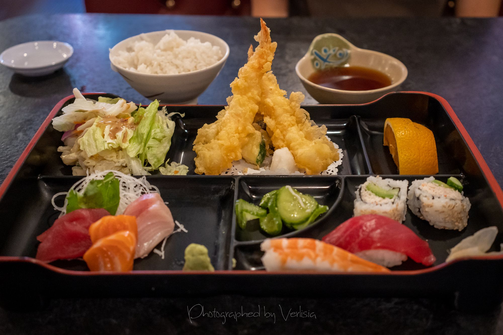 Miso Soup, Oomasa Special Combination (Tempura, Sashimi & Sushi)