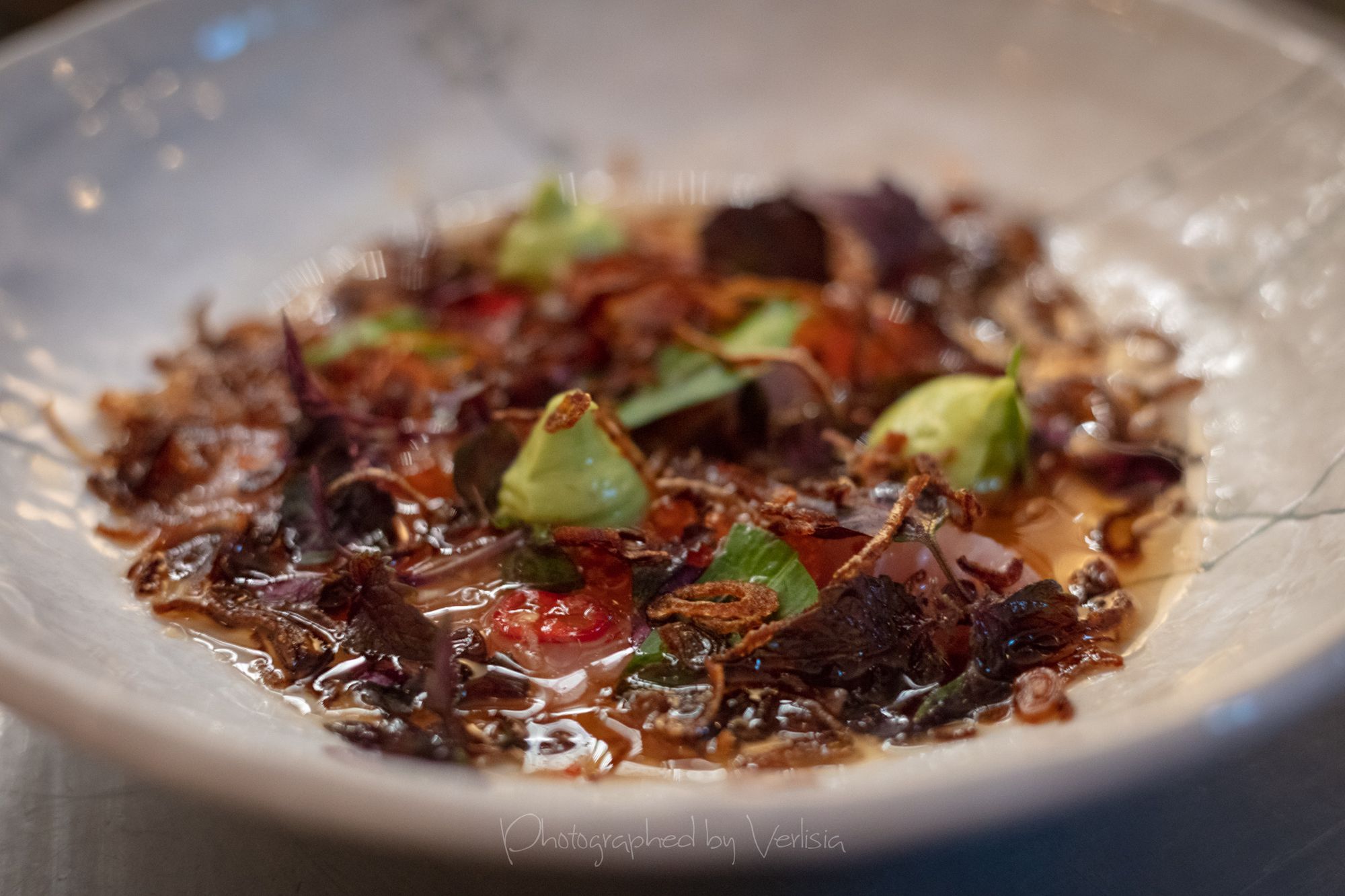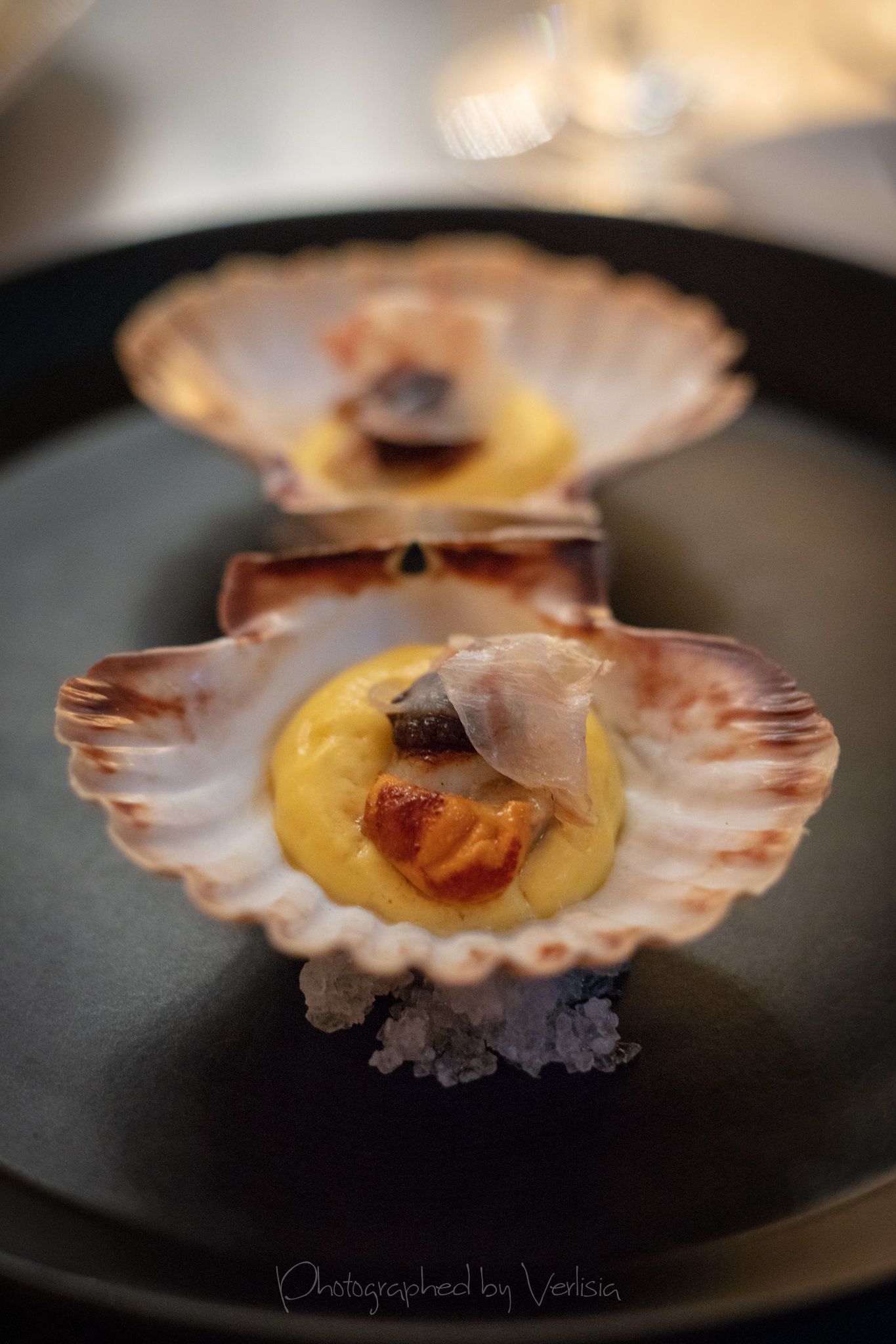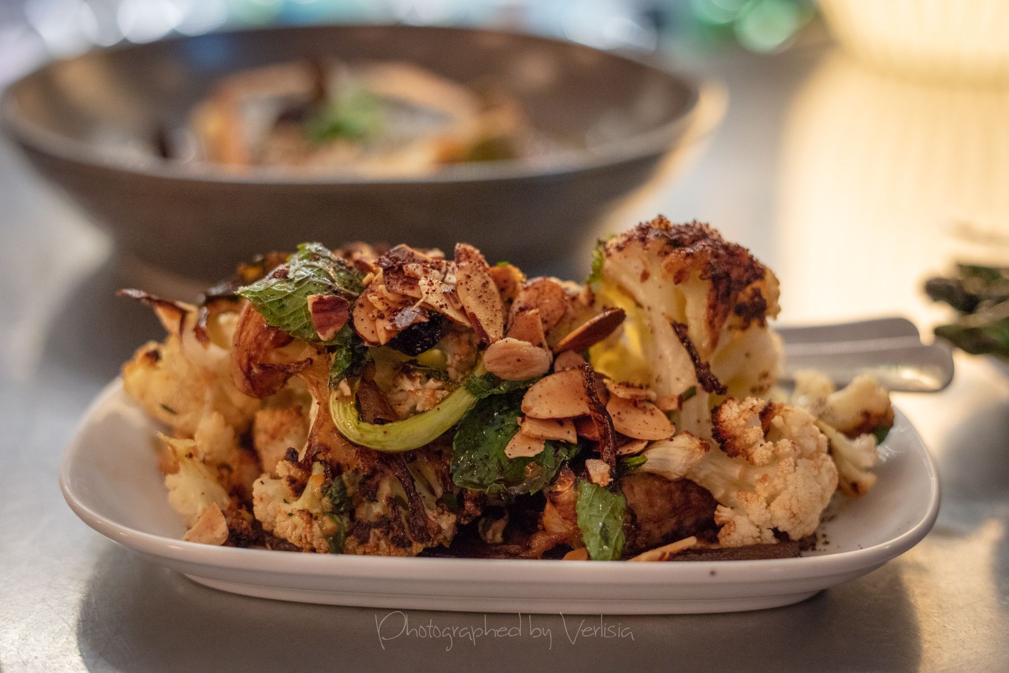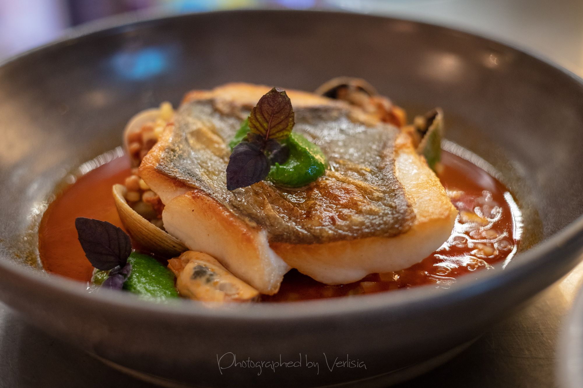 Orange Wine (Pyramid Valley “On Skins” '16 – Marlborough, New Zealand), Bream Bay scallop (yuzu sabayon, chilli jam, guanciale), Te Matuku oystersAlbacore tuna ceviche (avocado, Vietnamese mint, lemongrass, scampi oil), John Dory (fregola, nduja spiced broth, pistou, confit fennel, diamond shell clams, mussels)Pan-roasted asparagus (taramasalata, bread crumb), Roasted cauliflower (date purée, preserved lemon, cacao)