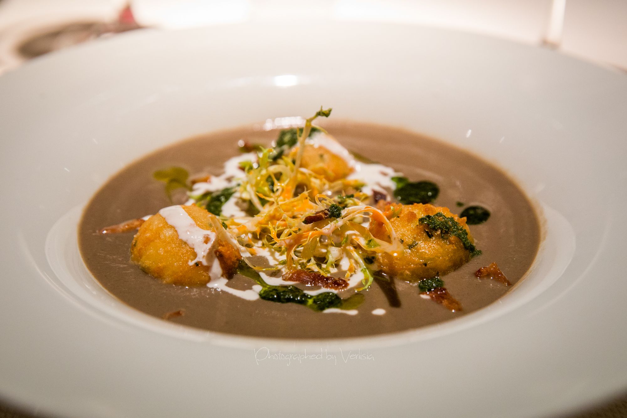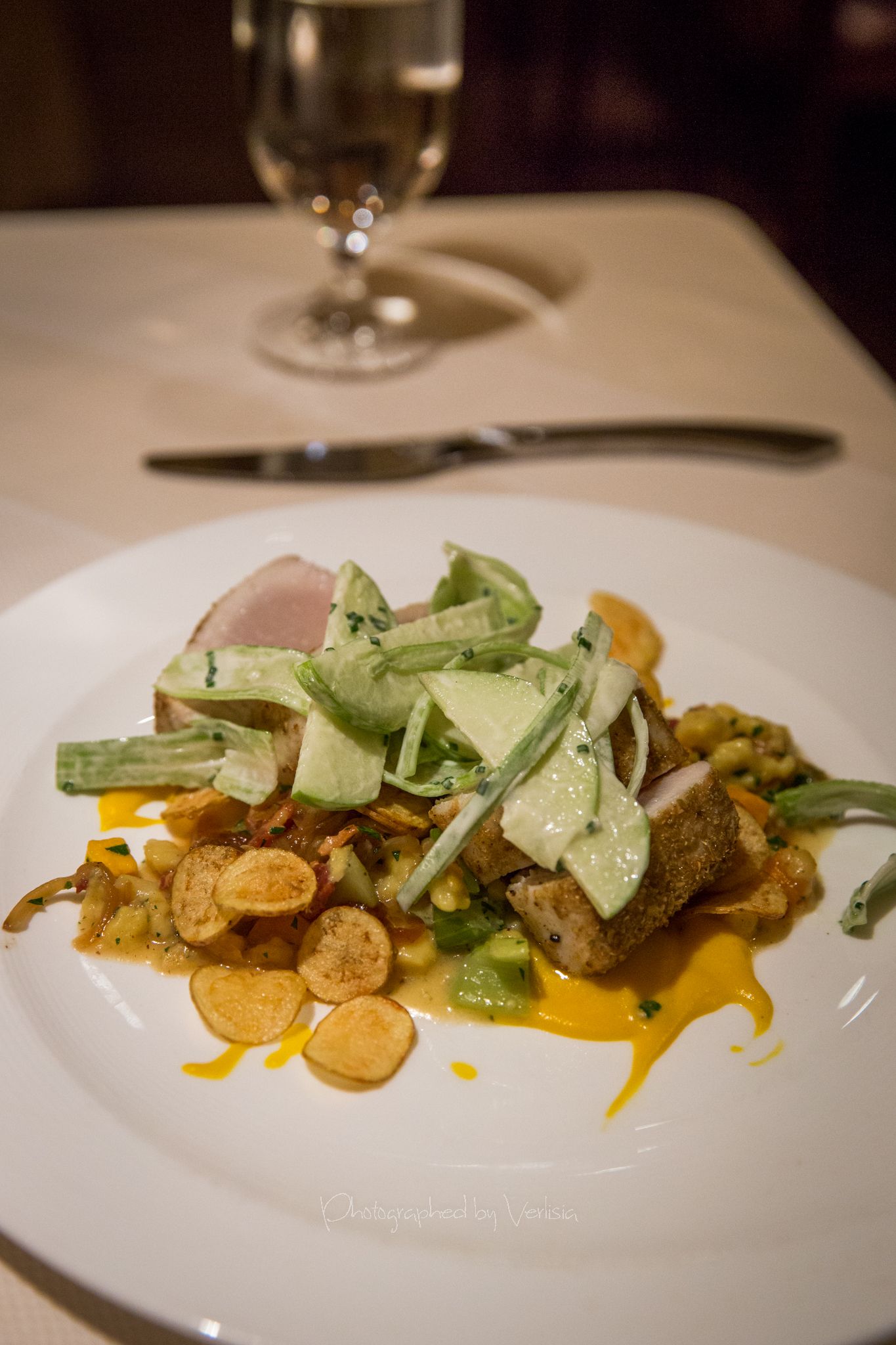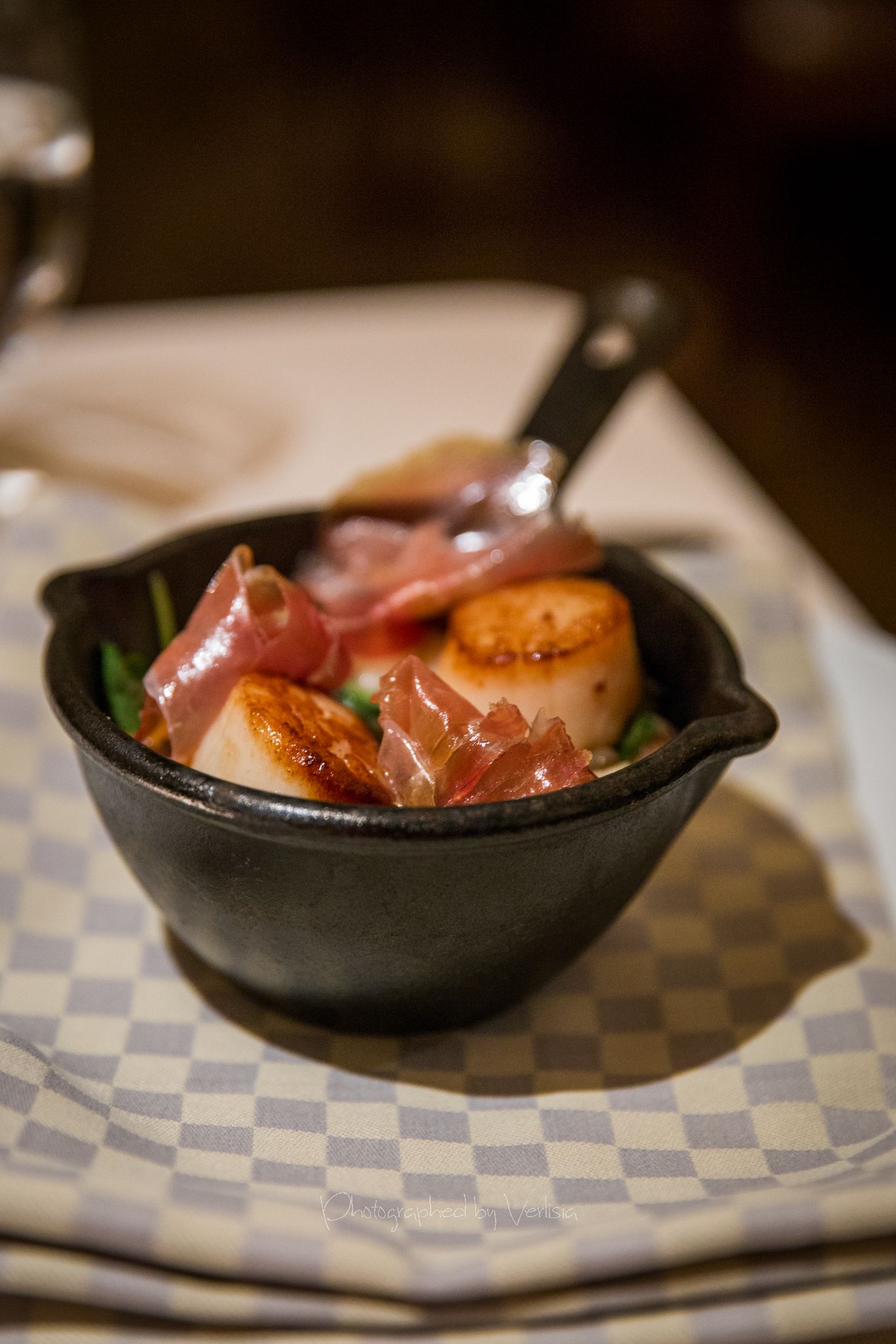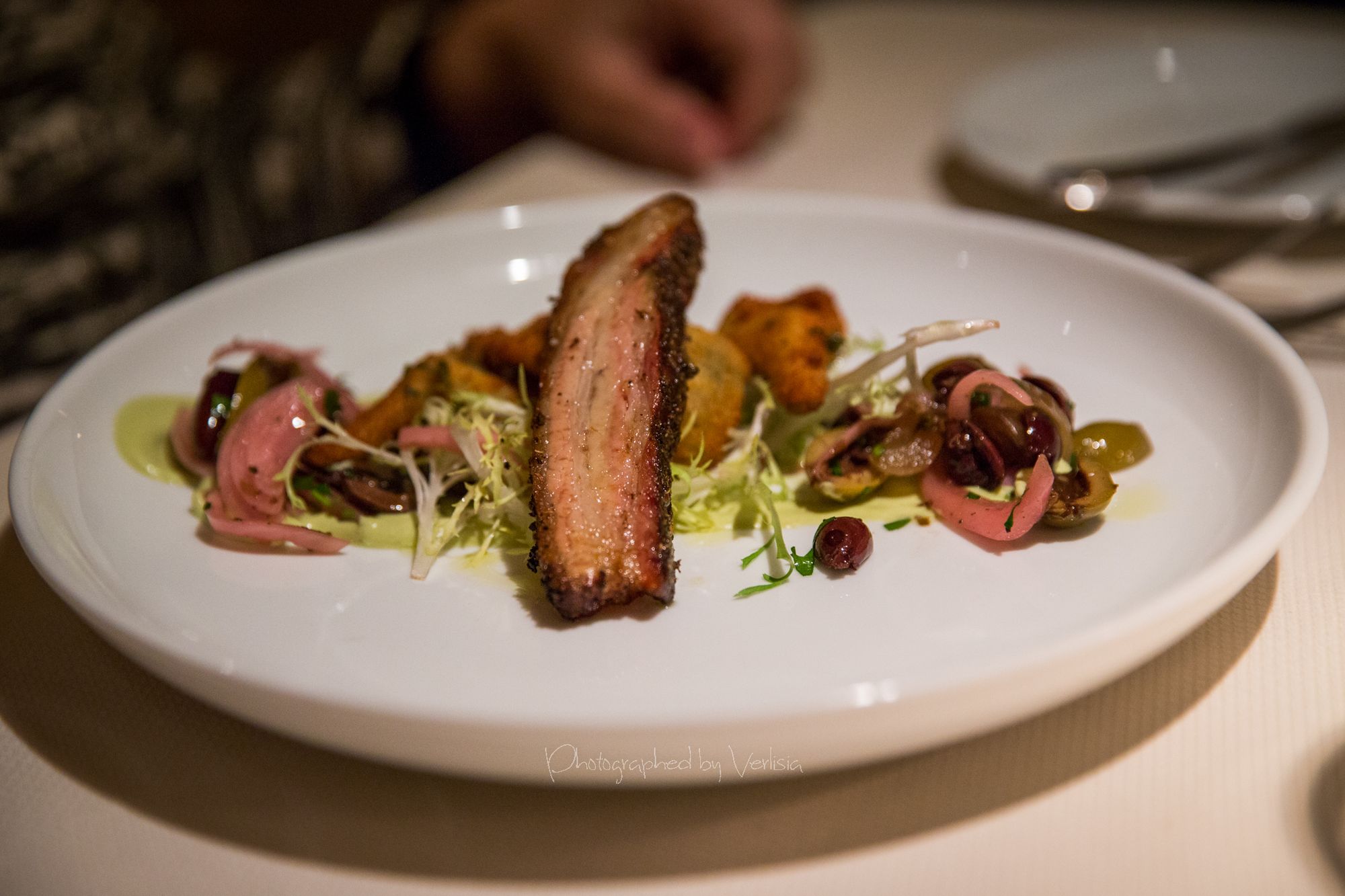 Bread, Wine, Pan Seared Hokkaido Scallops (Cranberry bean & lentil sew, serrano ham, white wine seamed clams)Brick Oven Coleman Farm Pork Belly (Coastal farms artichokes, poblano creme fraiche, spiced olives), Roasted Mushroom Soup (White cheddar potato puff, cracked pepper cream cheese, bacon crisp)Pan Roasted Arctic Char (Savoy cabbage, fingerling potatoes, trout roe & almond 'chimichurri'), Spice Crusted Ono Seared Rare (Butternut squash spaetzle, heirloom apple 'slaw', bacon and onion marmalade)Angus NY Steak (Fern ridge farms potatoes, flowering broccoli, garlic cream fondue)Chocolate (Warm dual chocolate cake, pot de creme, huckleberry perfume, creamsicle ice cream), White Pearls (Warm tapioca pudding, local persimmons, pineapple, guava sorbet), Praline (Citrus crepe, arkansas black apples, praline butter, ice cream a la mode)
