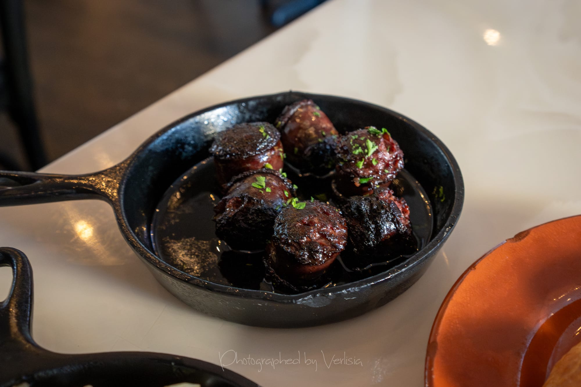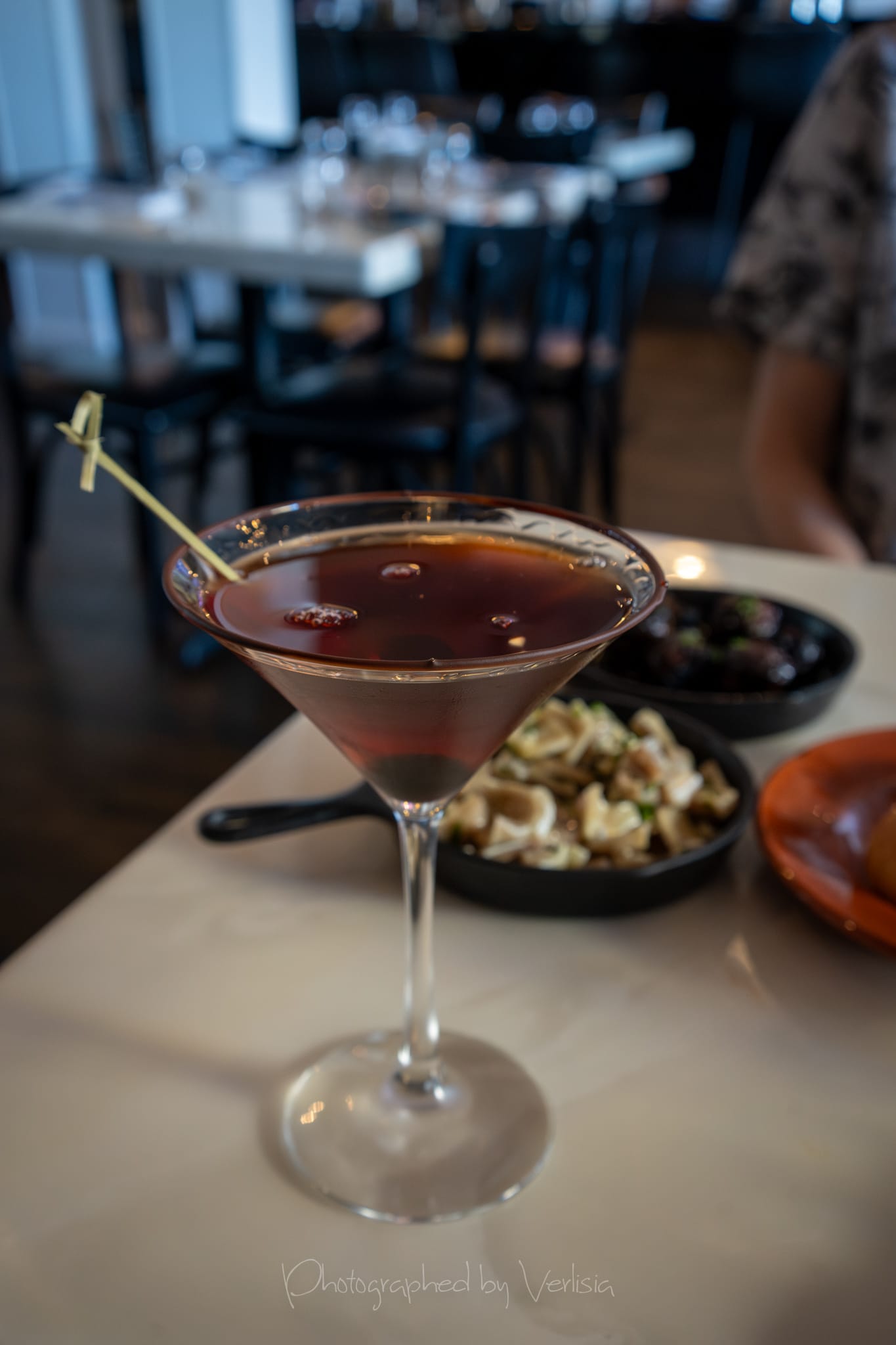 Cocktail - Lisboeta (Templeton 6 Yrs Old Rye Whiskey, Sweet Red Vermouth, Bitters and Ginja 9 Liqueur), Cheese Bread, Pig’s Ear Salad