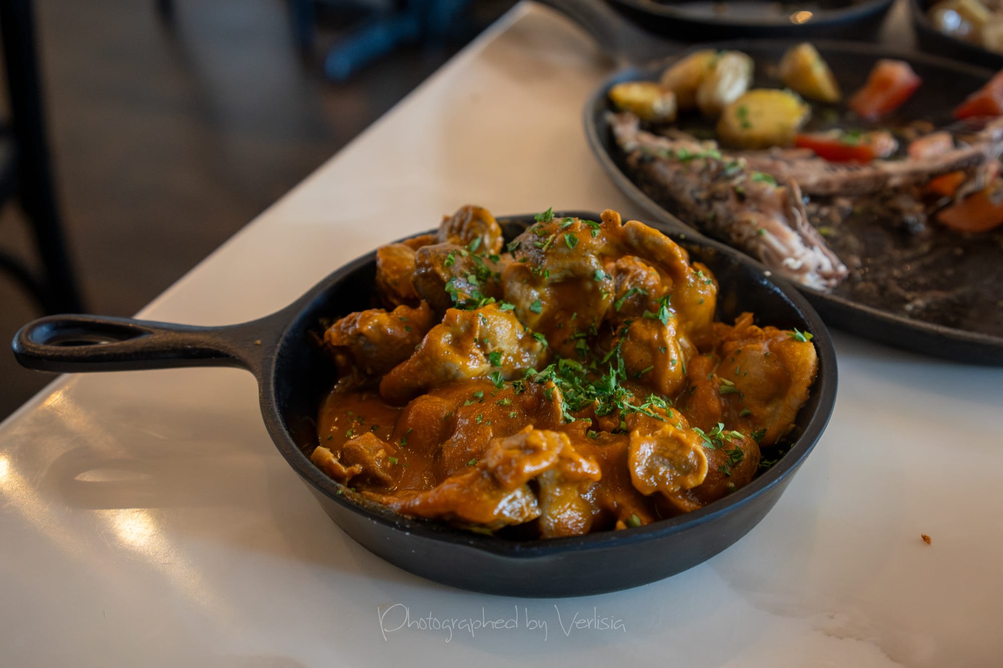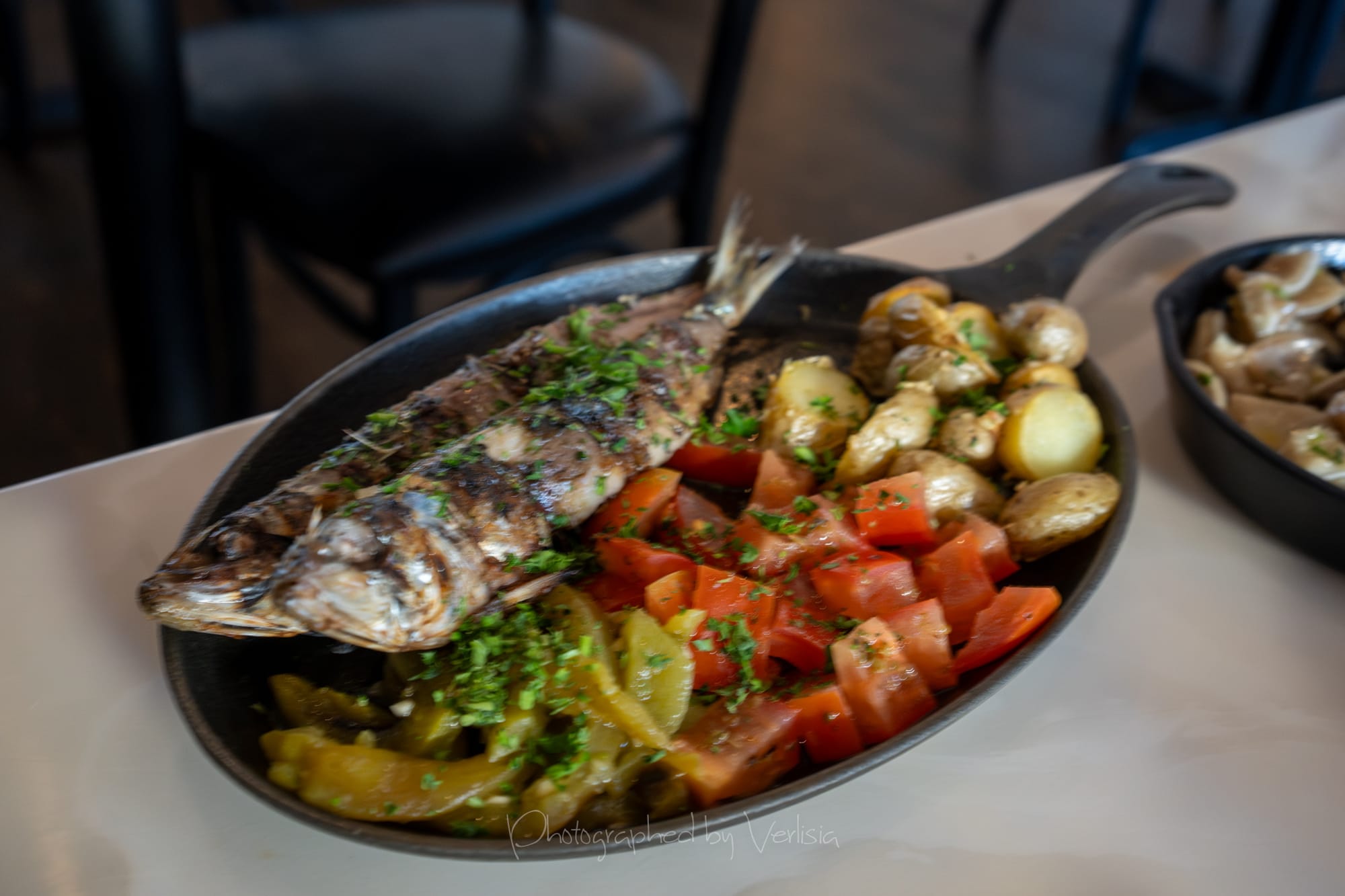 Blood Sausage, Whole Fish (Branzino) with Legumes, Chicken Mini Pie