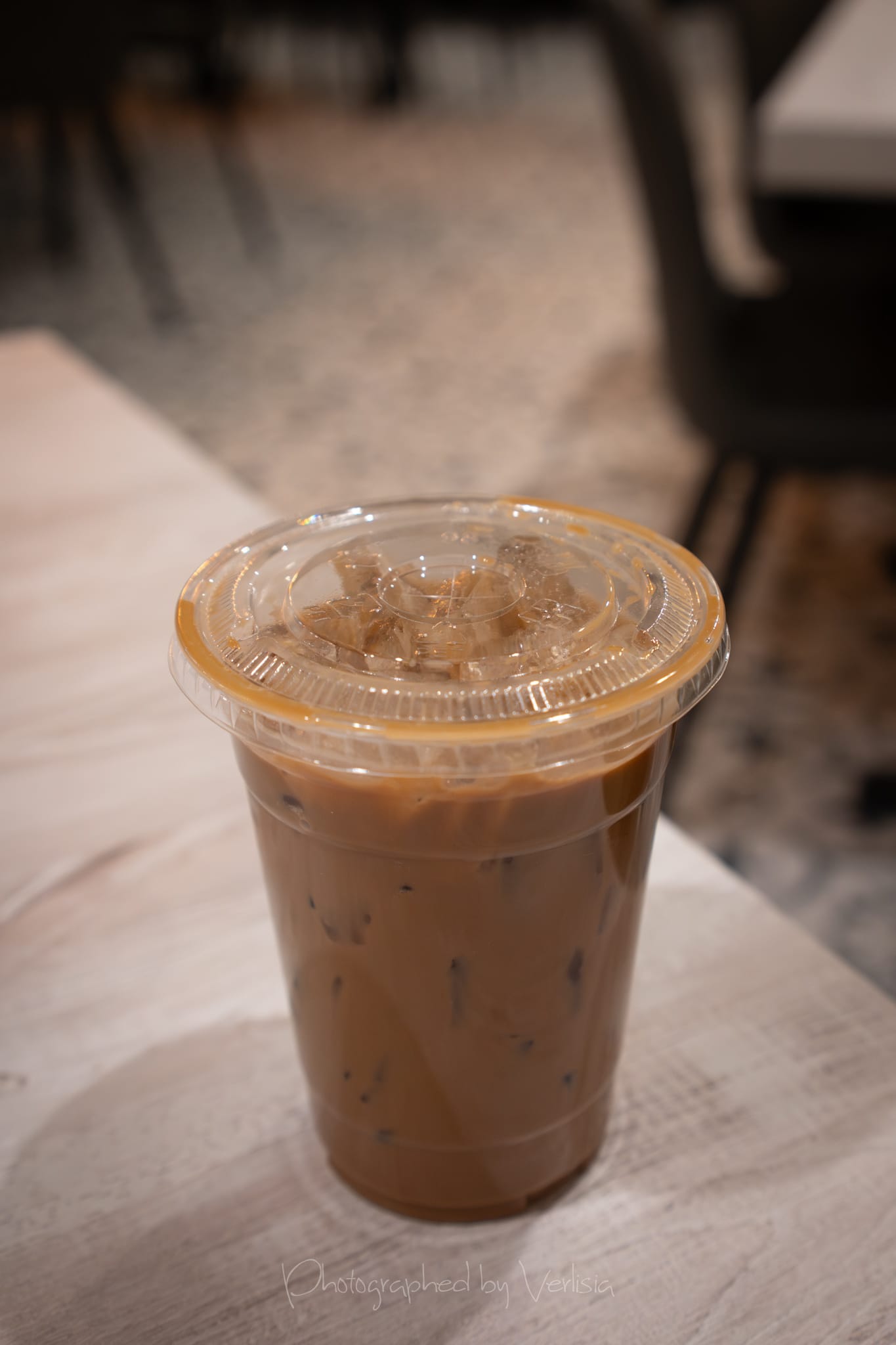 Vietnamese Milk Coffee – Cà Phê Sữa Đá, Woven Vermicelli Sheet with Egg Roll, Shrimp Patty, Grilled Pork – Bánh Chả Tôm, Chả Giò, Nem Nướng (Vermicelli sheet topped with egg rolls, shrimp patties, and grilled pork, served with vegetables and dipping sauce.)