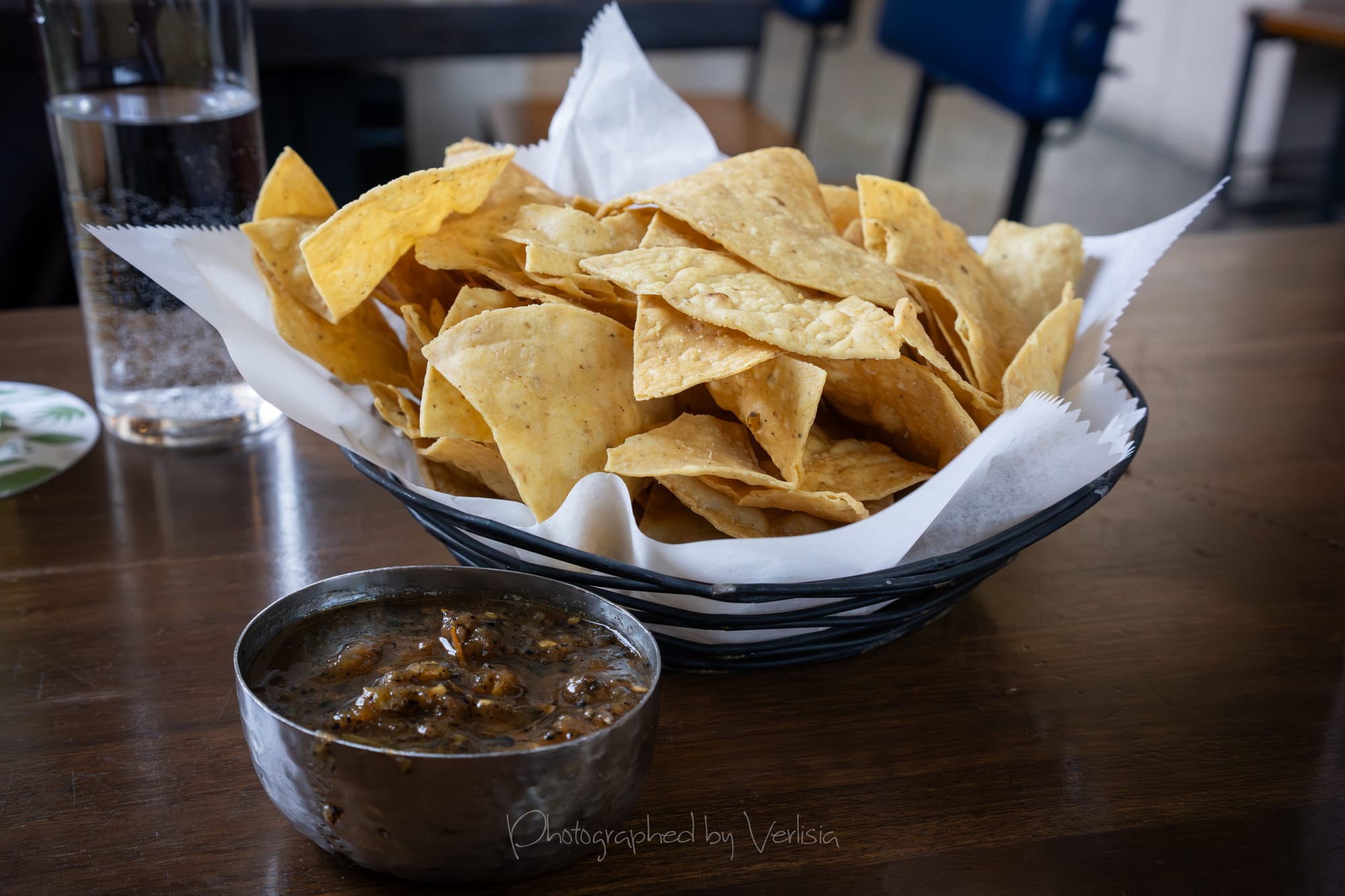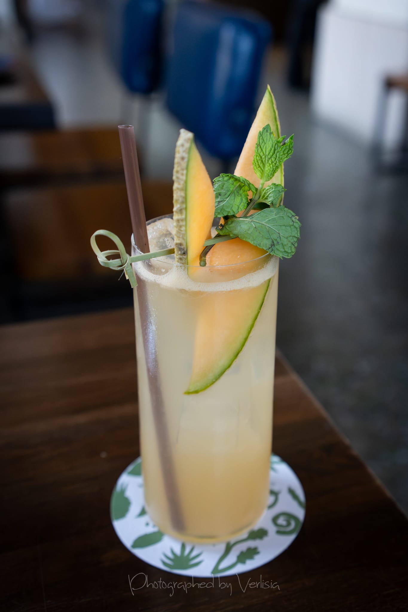 Cocktail - Cantaloupe Mojito (Ed Hamilton aged white rum, Probitas white blended rum, cantaloupe, lime, mint, club soda); Chips and Salsa