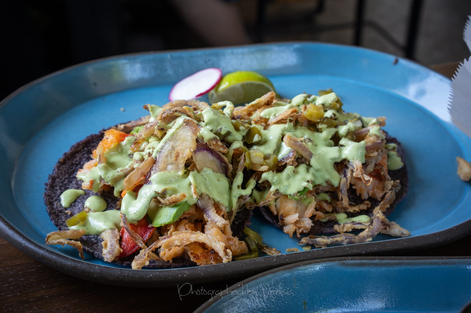 Tacos - Short Rib Quesabirria (short rib, Jalisco salsa, radish, guacamole), Lobster (Maine lobster, jalapeƱo pico, black bean sauce, avocado, crispy fried onions)