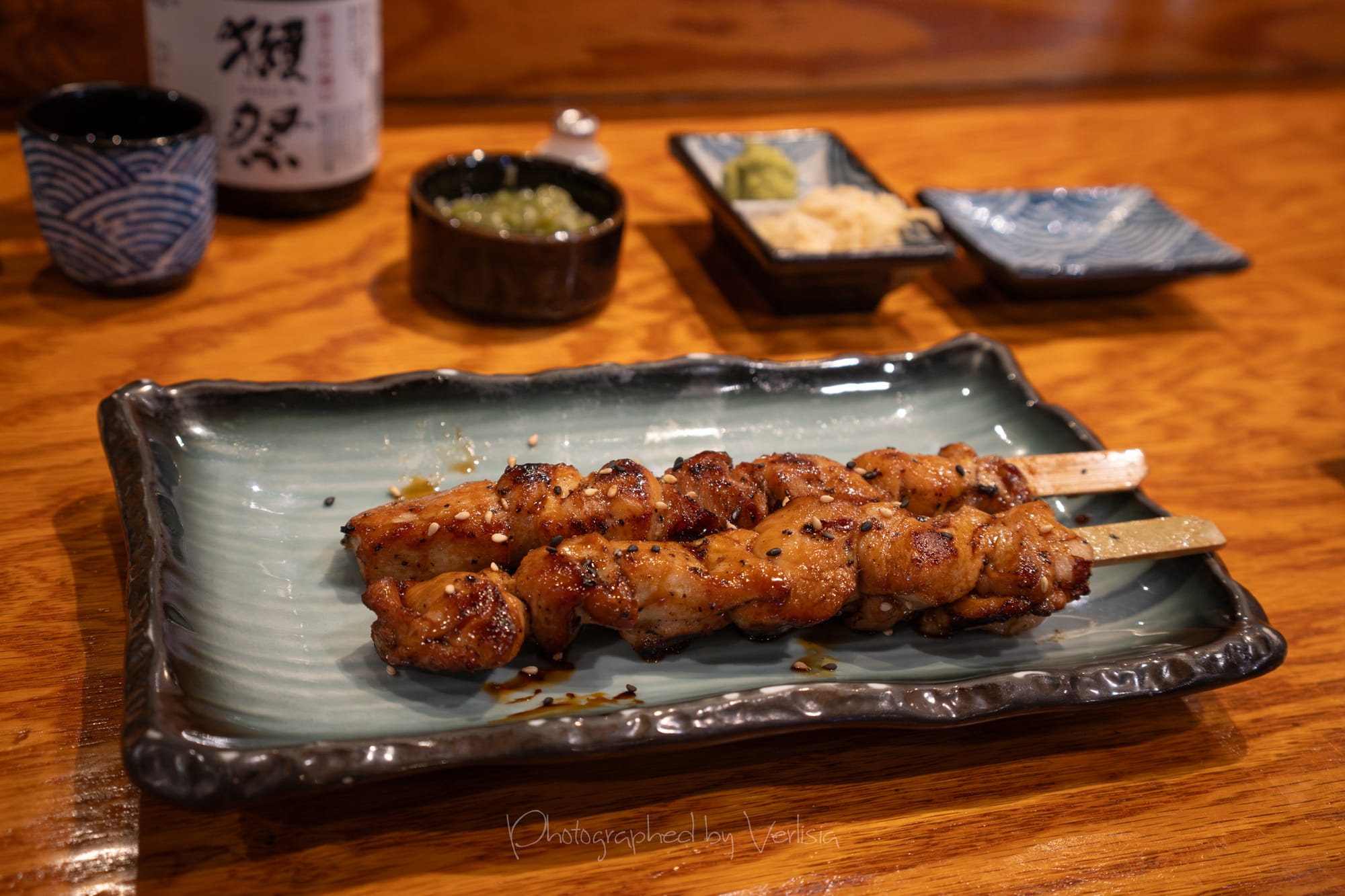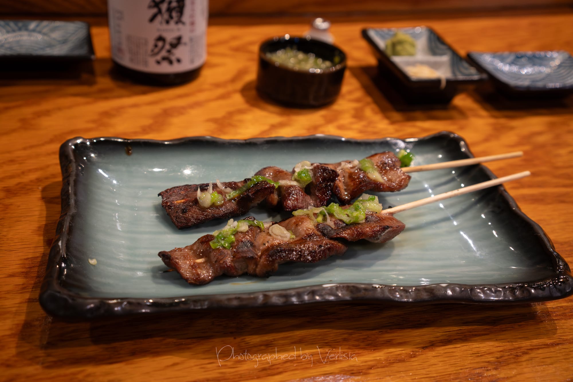 Dassi 45 Sake, Mi (Chicken Thigh) Yakitori, Gyutan (Beef Tongue) Yakitori