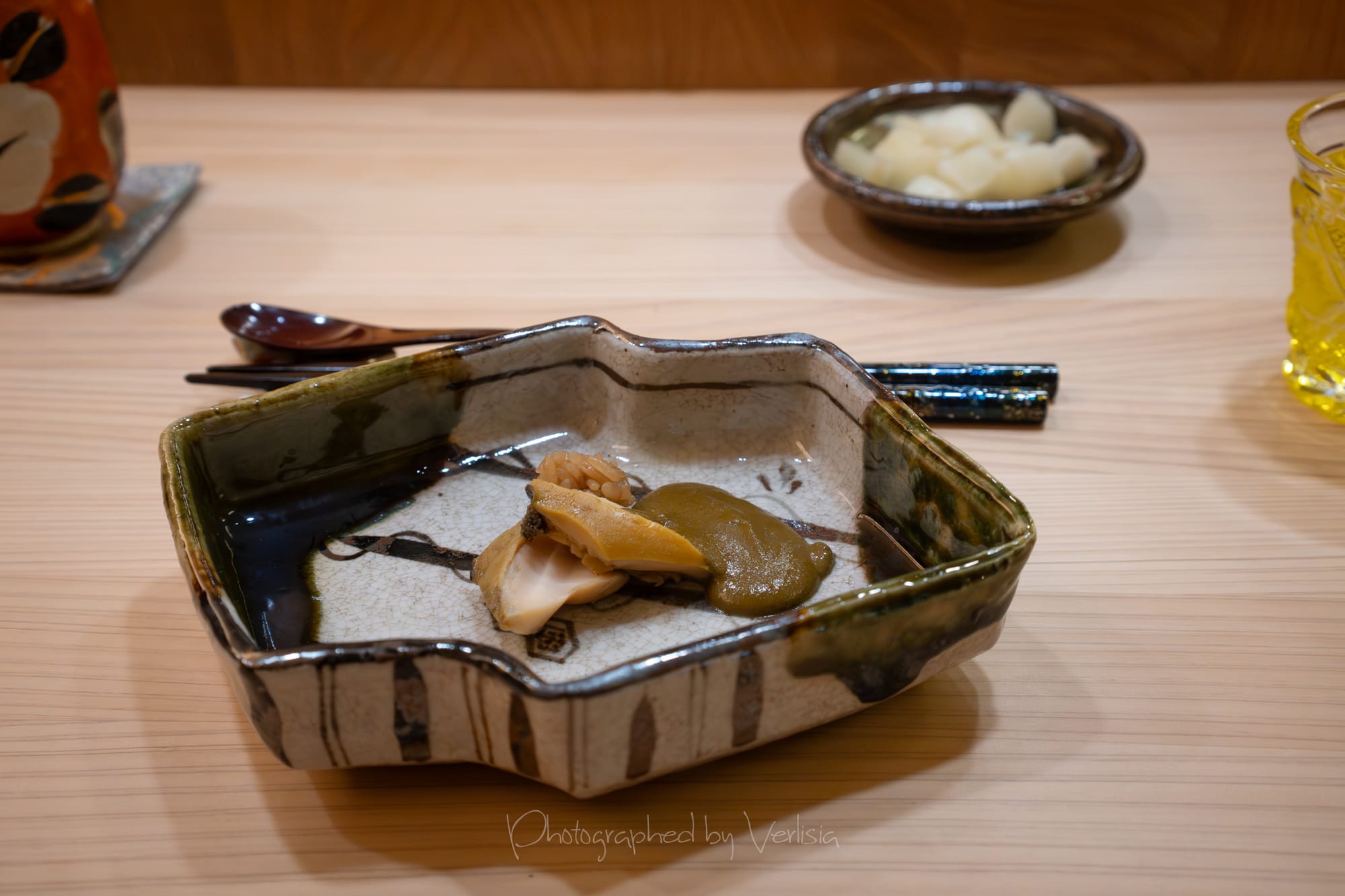 Sake Pairing - Muni "Second to None" Junmai Daiginjo; Abalone in Liver Sauce; Snow Crab Chawamushi with Truffle