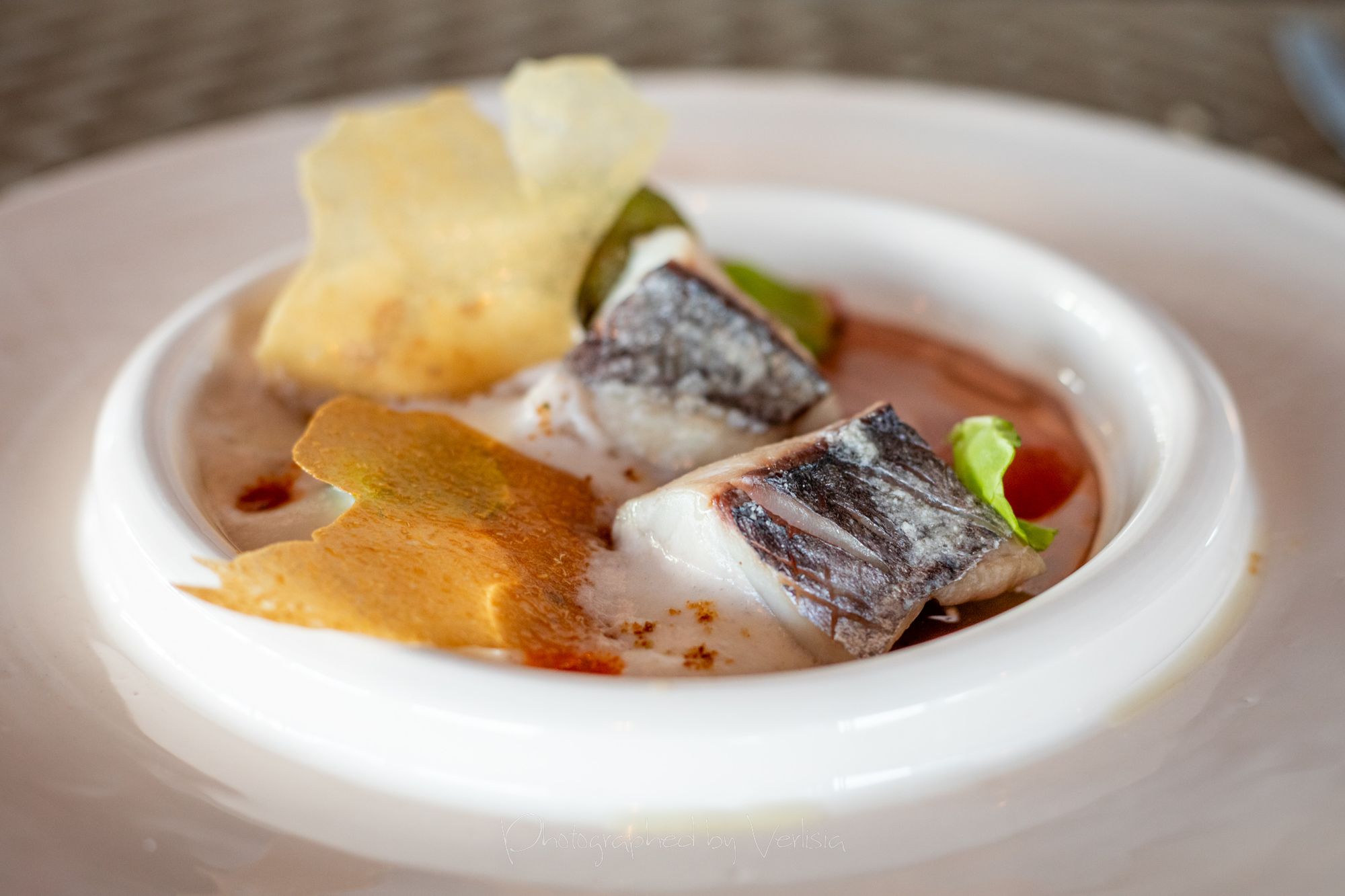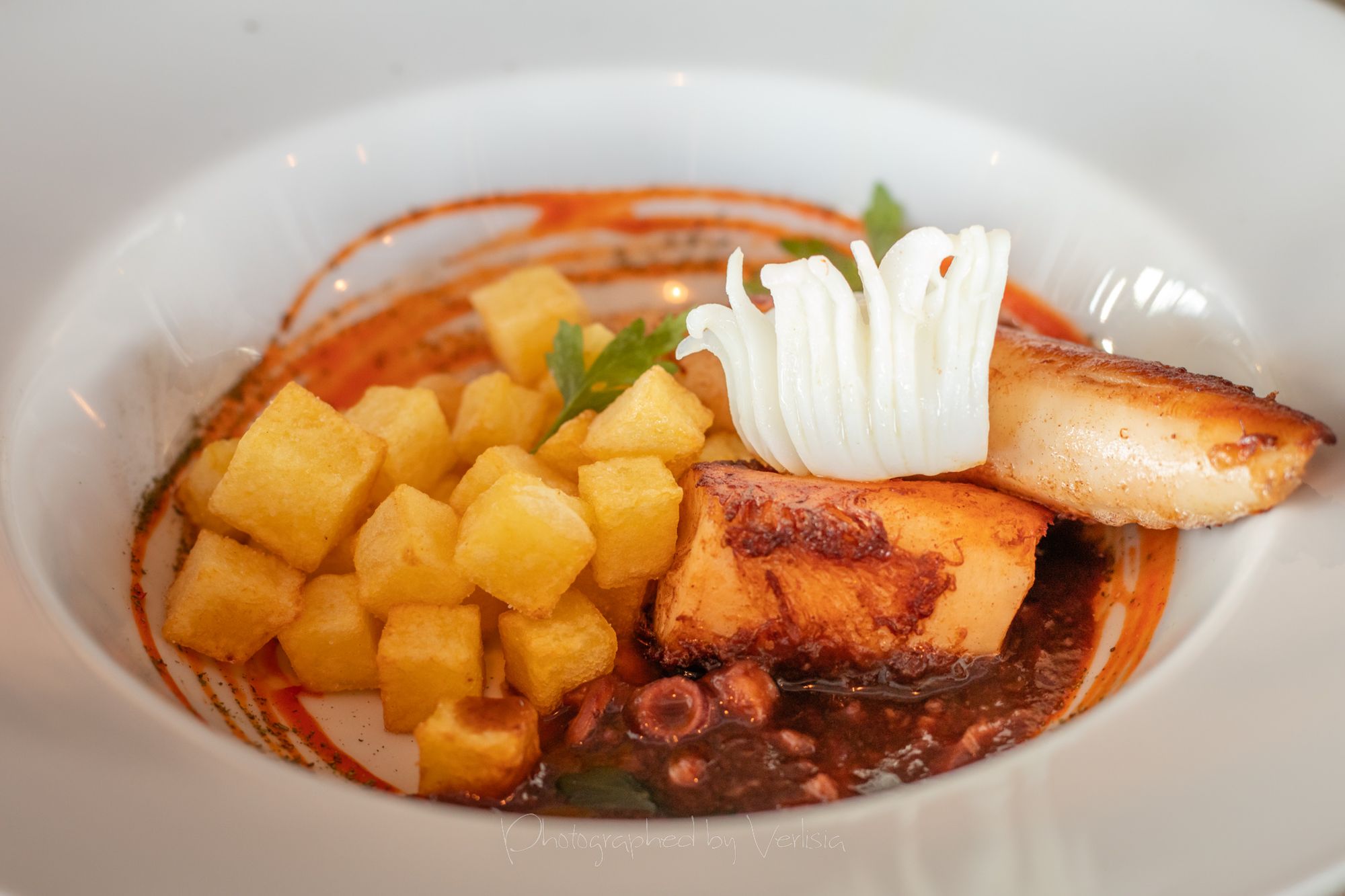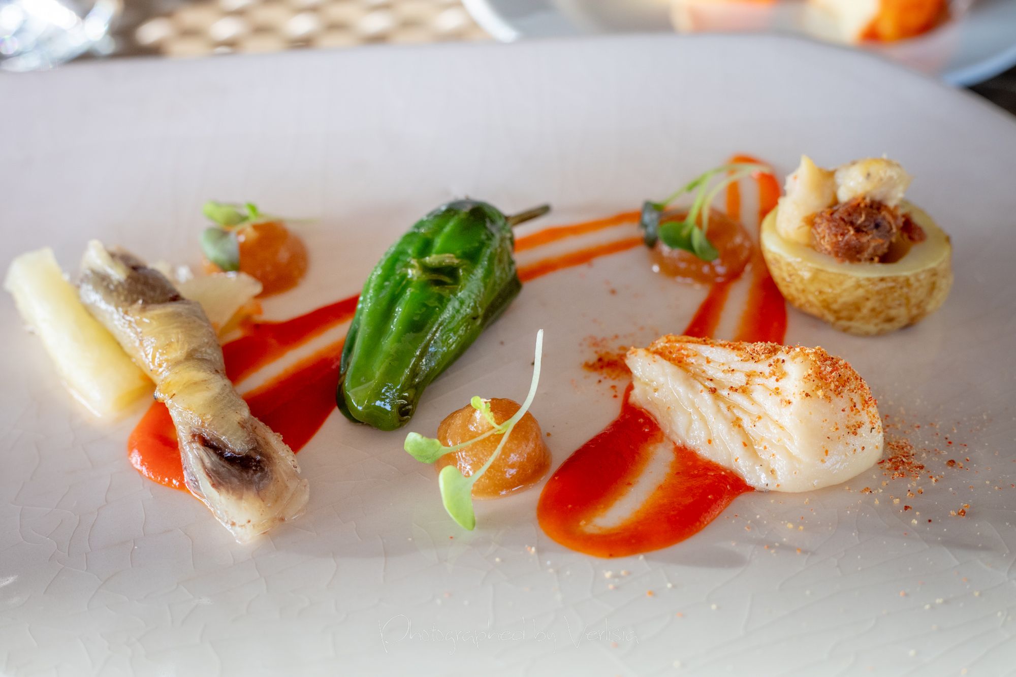 Butter, WineAmuse, Pepper and Black Pudding with Picked Pineapple (Smoked Goat Cheese and Crackling), Smoked Swordfish with Sea Snail and Golden SeaMicaelense Octopus and Squid (Local Red Pepper and Parsley with Red Wine), Mackerel with Yam and Galega Olive BonbonConfit Beef Chop with Purple Garlic and Beetroot, Bullseye Fish with Squid and Barley SandGuava with Passion Fruit and Tamarillo, Local Yuzu Lemon Mousse with Coconut Cake and Safflower Meringue