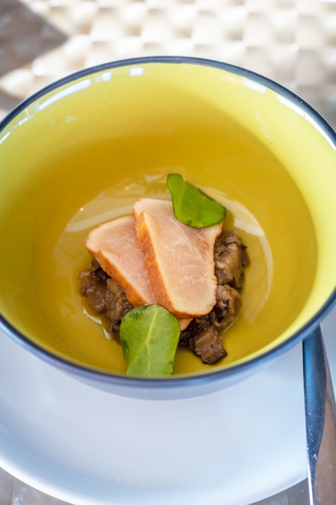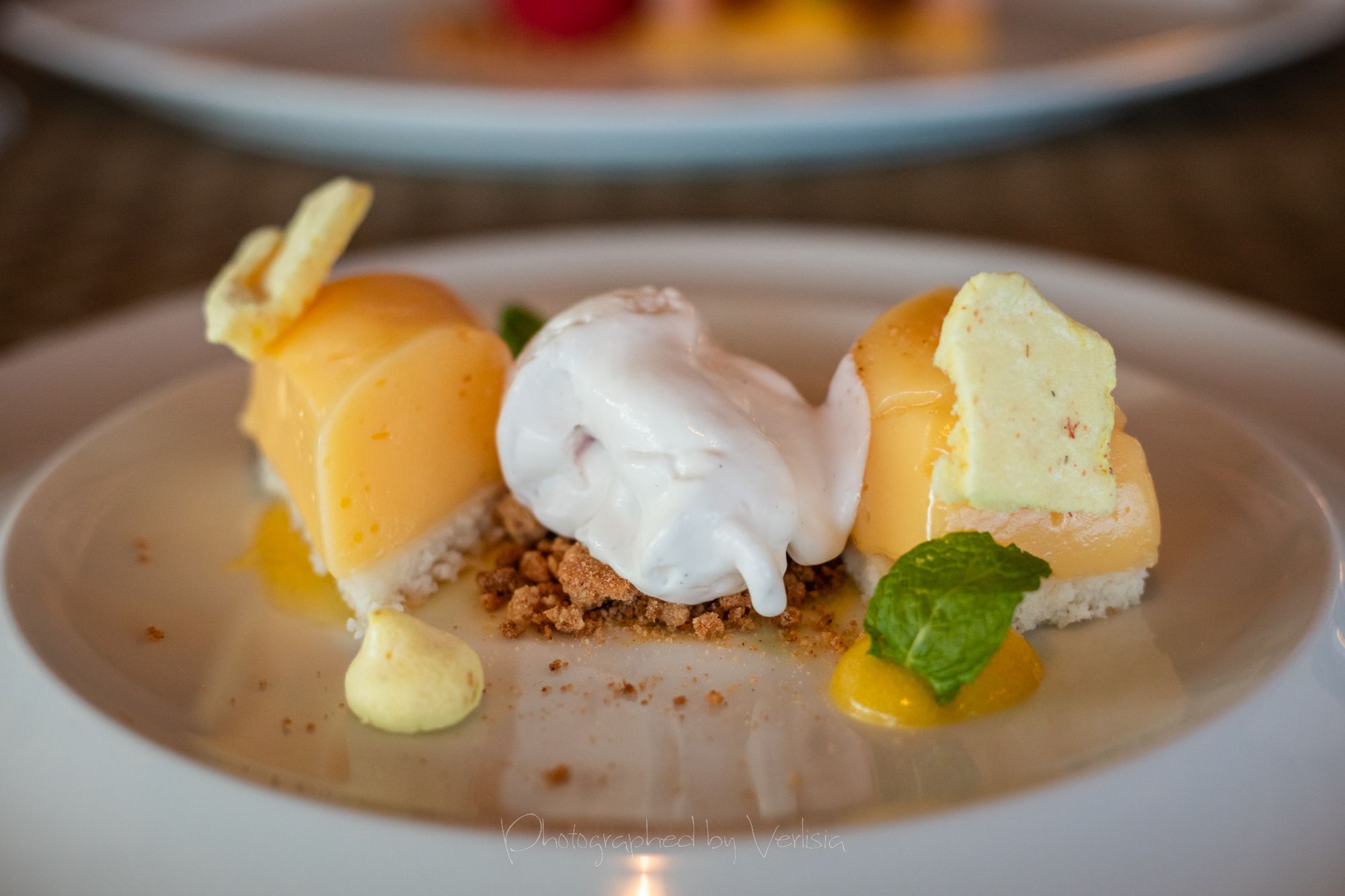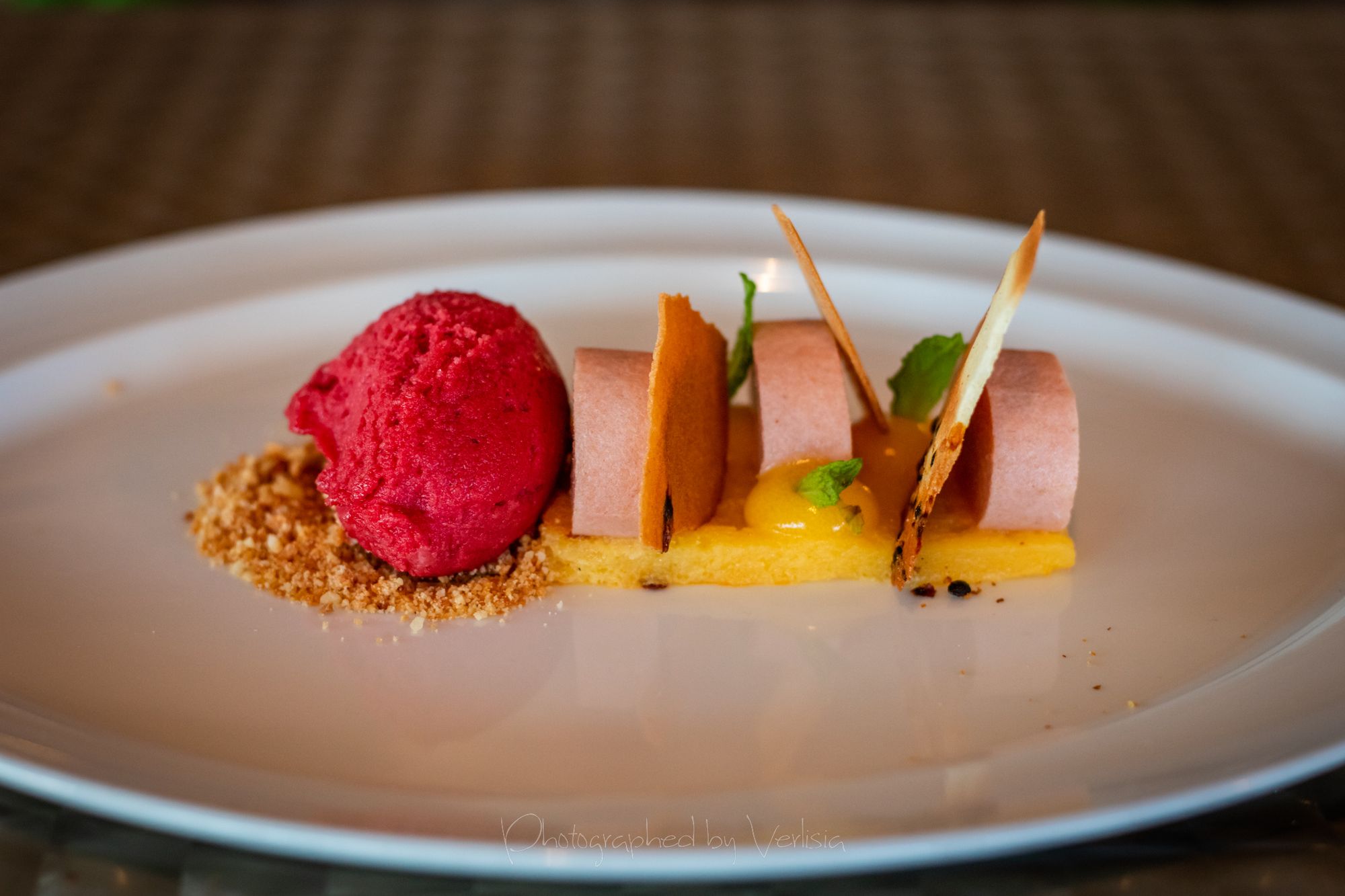 Butter, WineAmuse, Pepper and Black Pudding with Picked Pineapple (Smoked Goat Cheese and Crackling), Smoked Swordfish with Sea Snail and Golden SeaMicaelense Octopus and Squid (Local Red Pepper and Parsley with Red Wine), Mackerel with Yam and Galega Olive BonbonConfit Beef Chop with Purple Garlic and Beetroot, Bullseye Fish with Squid and Barley SandGuava with Passion Fruit and Tamarillo, Local Yuzu Lemon Mousse with Coconut Cake and Safflower Meringue