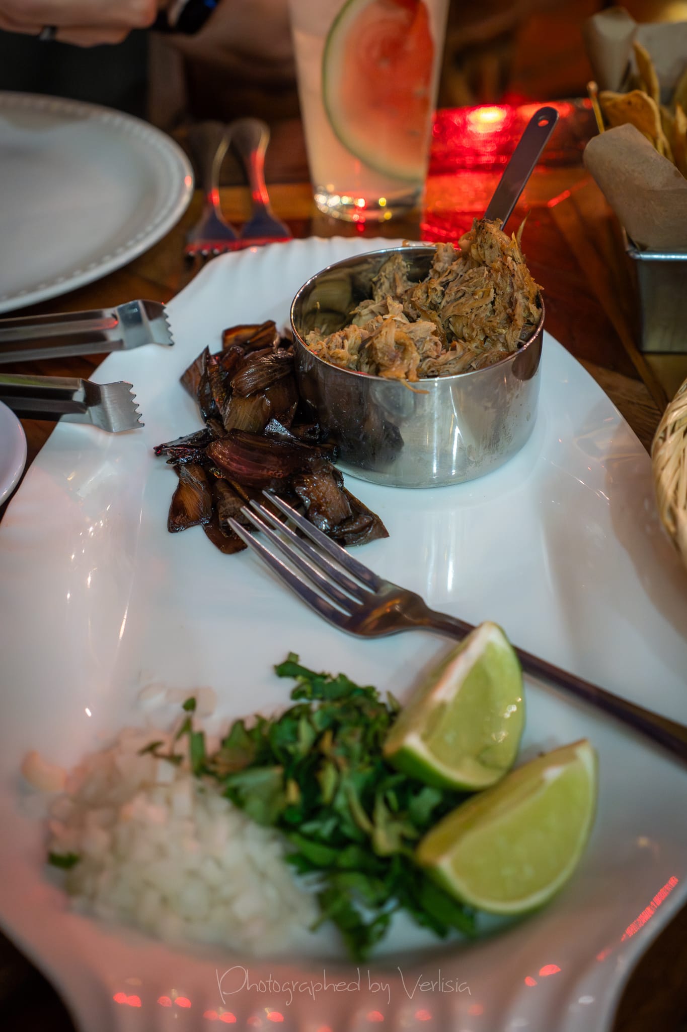Marlin Sopes (Handmade sopes topped with special marlin stew, served over a nospiced red sauce mirror with a slight touch of cream); Duck Carnitas (Duck baked and fried in its own fat served with freshly made tortilla)