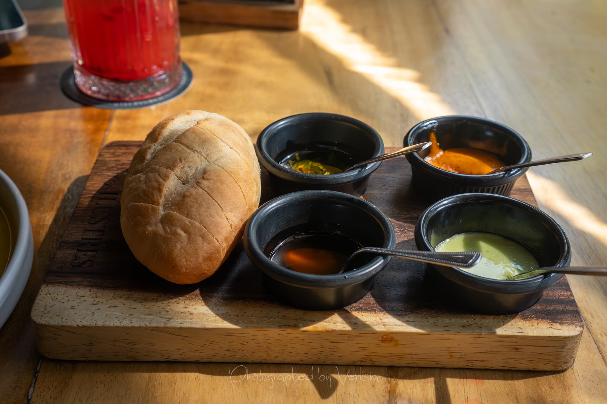 Cocktail - Old Father Mexicano (Whisky prieto, macajillo); Mocktail - Limonada de Fruto Rojos (Jugo de limon y mix de frutos rogos); Bread and Salsa